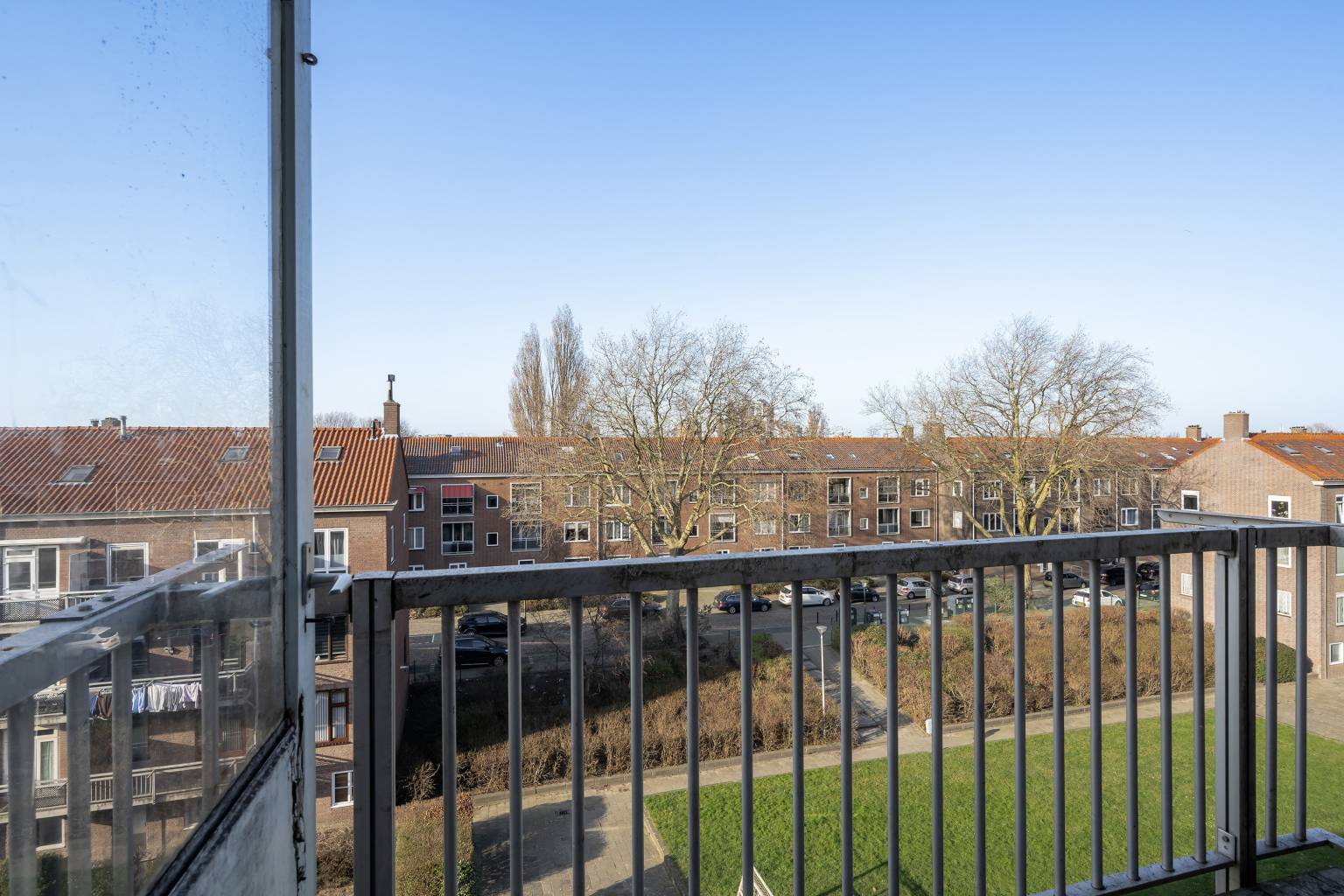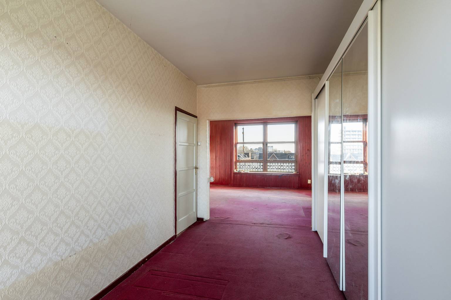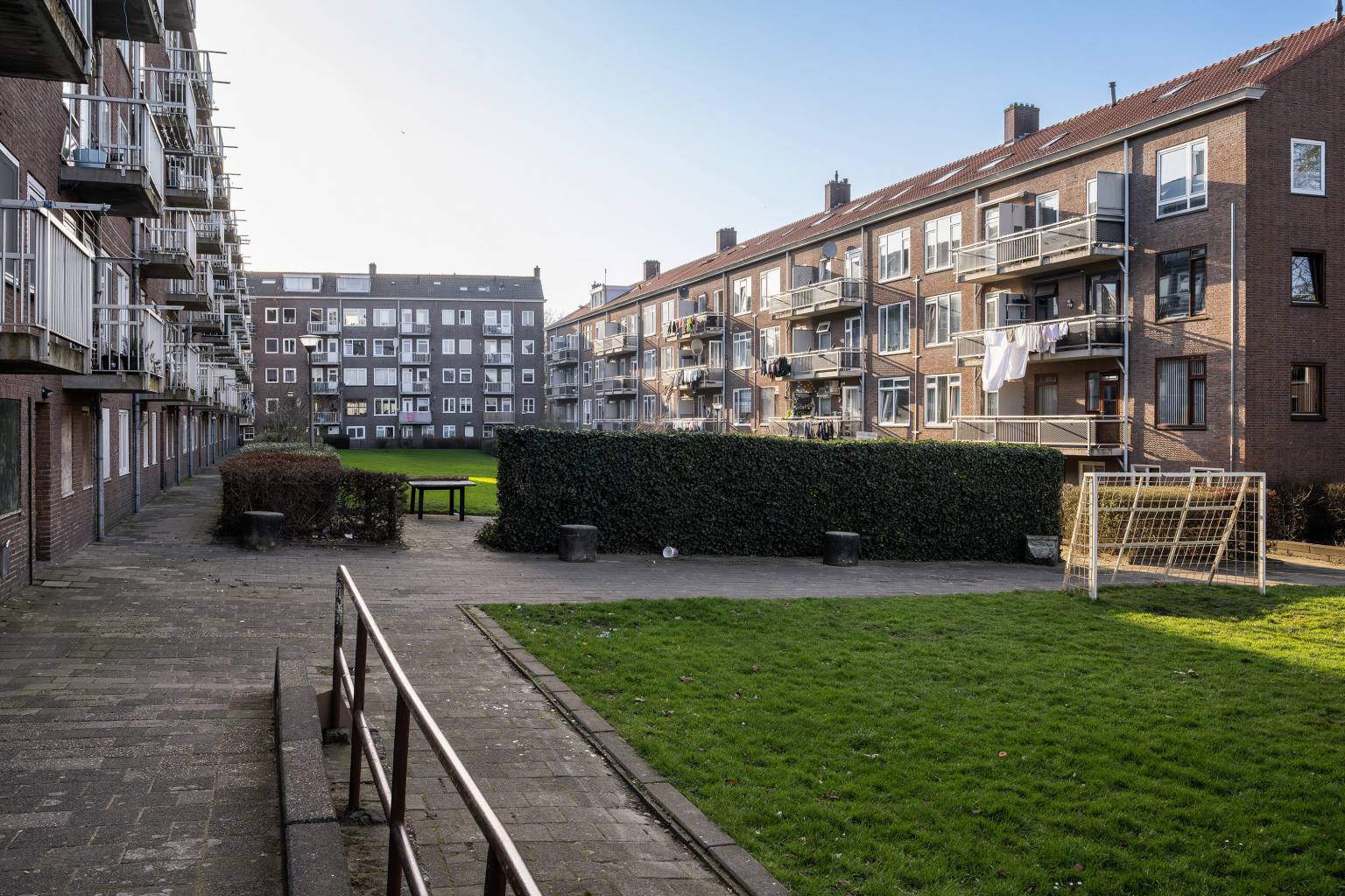 Op een levendige plek in Vlaardingen, recht tegenover het metrostation en met een supermarkt letterlijk in de straat, ligt dit appartement op de bovenste woonlaag van een karakteristiek gebouw uit 1950. Hier woon je met alle dagelijkse voorzieningen binnen handbereik en met een uitstekende verbinding naar Rotterdam en omliggende steden. Het appartement biedt een levendig uitzicht aan de voorzijde en een rustiger zicht over de wijk aan de achterzijde, waar groen en speeltoestellen het straatbeeld bepalen. Dankzij de ligging op de bovenste verdieping, met daarboven nog een extra woonlaag in de nok van het gebouw (gedoogd door de VvE), ontstaat er een woning met verrassend veel ruimte en mogelijkheden. Via de centraal afgesloten entree met bellentableau en brievenbussen is het appartement bereikbaar met de trap. Achter de voordeur kom je binnen in de hal met houten vloer, waar zich een vaste kast bevindt en van waaruit vrijwel alle vertrekken toegankelijk zijn. De woonkamer strekt zich uit van de voor- tot de achterzijde van het appartement en beschikt over een schouw voor een moederhaard. De ruimte staat in open verbinding met de eetkamer en biedt de mogelijkheid om naar wens een extra slaapkamer te creëren. Zowel de woonkamer als de eetkamer geven toegang tot het overdekte balkon aan de voorzijde, waar je uitkijkt over de levendige omgeving. De keuken is voorzien van een recht keukenblok met bovenkasten en geeft toegang tot de grotendeels betegelde badkamer met ruime inloopdouche. Vanuit de badkamer bereik je het balkon aan de achterzijde, waar je juist geniet van een rustiger uitzicht over de wijk en het aangrenzende groen. Op de woonverdieping bevindt zich daarnaast nog een extra kamer met vaste kast en de trap naar de bovenste verdieping. In de nok van het gebouw ligt een extra verdieping die is verdeeld in twee ruimtes, beide voorzien van een dakraam, elektra en verlichting. Deze verdieping biedt volop mogelijkheden voor bijvoorbeeld extra kamers, hobbyruimte of werkplek. De woning staat leeg en behoeft de nodige aandacht, maar biedt juist daardoor een mooie kans om het geheel volledig naar eigen smaak en inzicht vorm te geven.