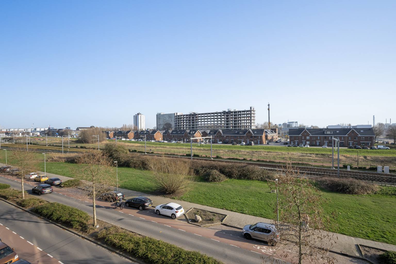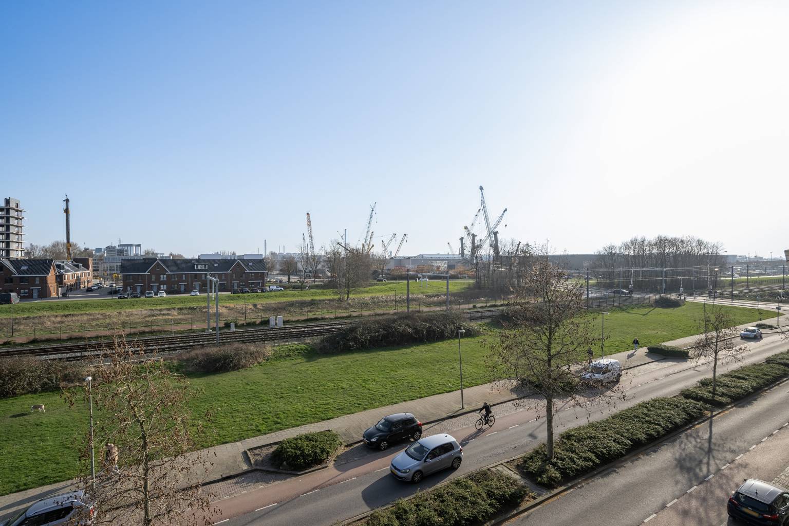 - Aan rustige weg, in woonwijk, vrij uitzicht
