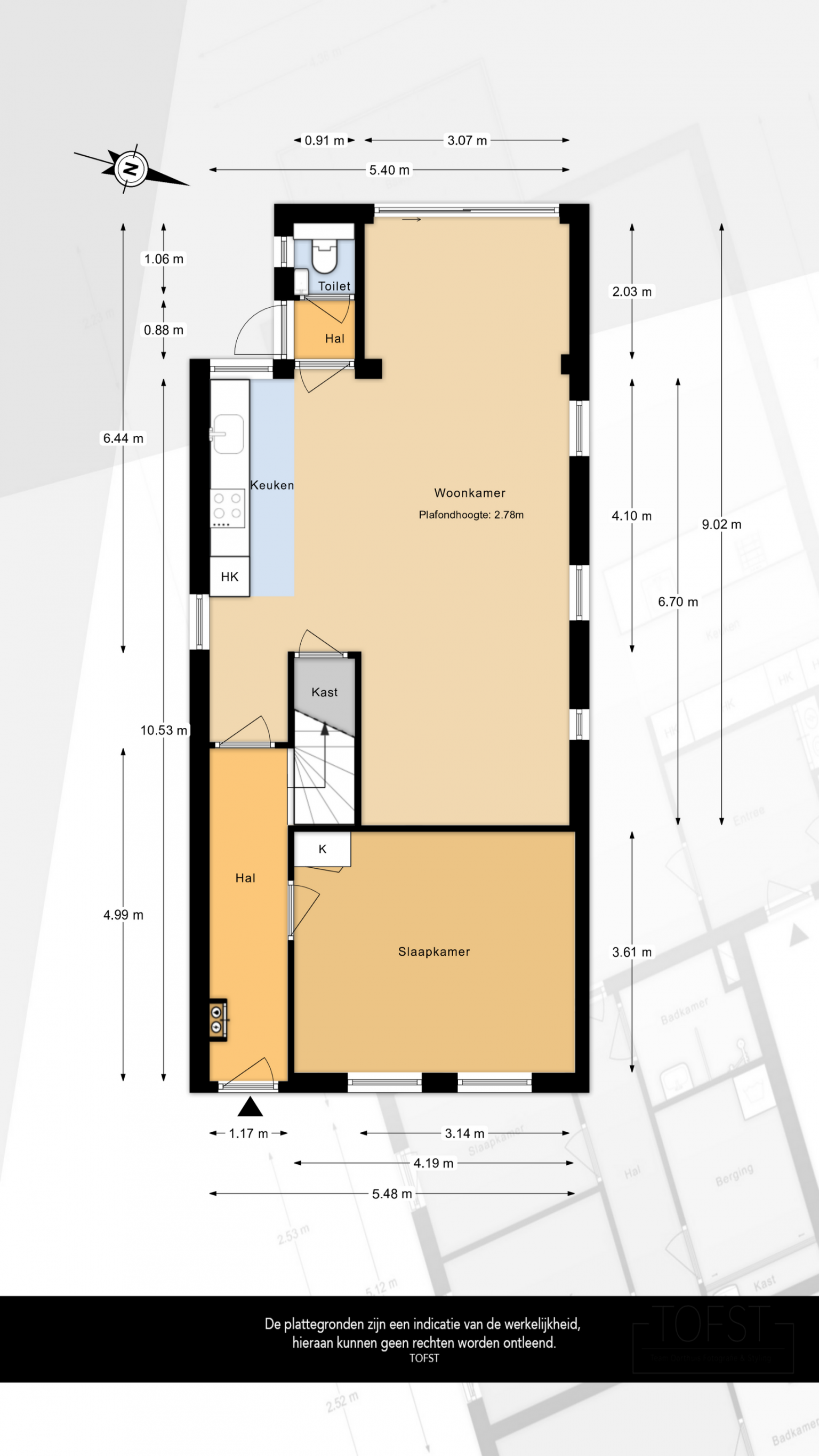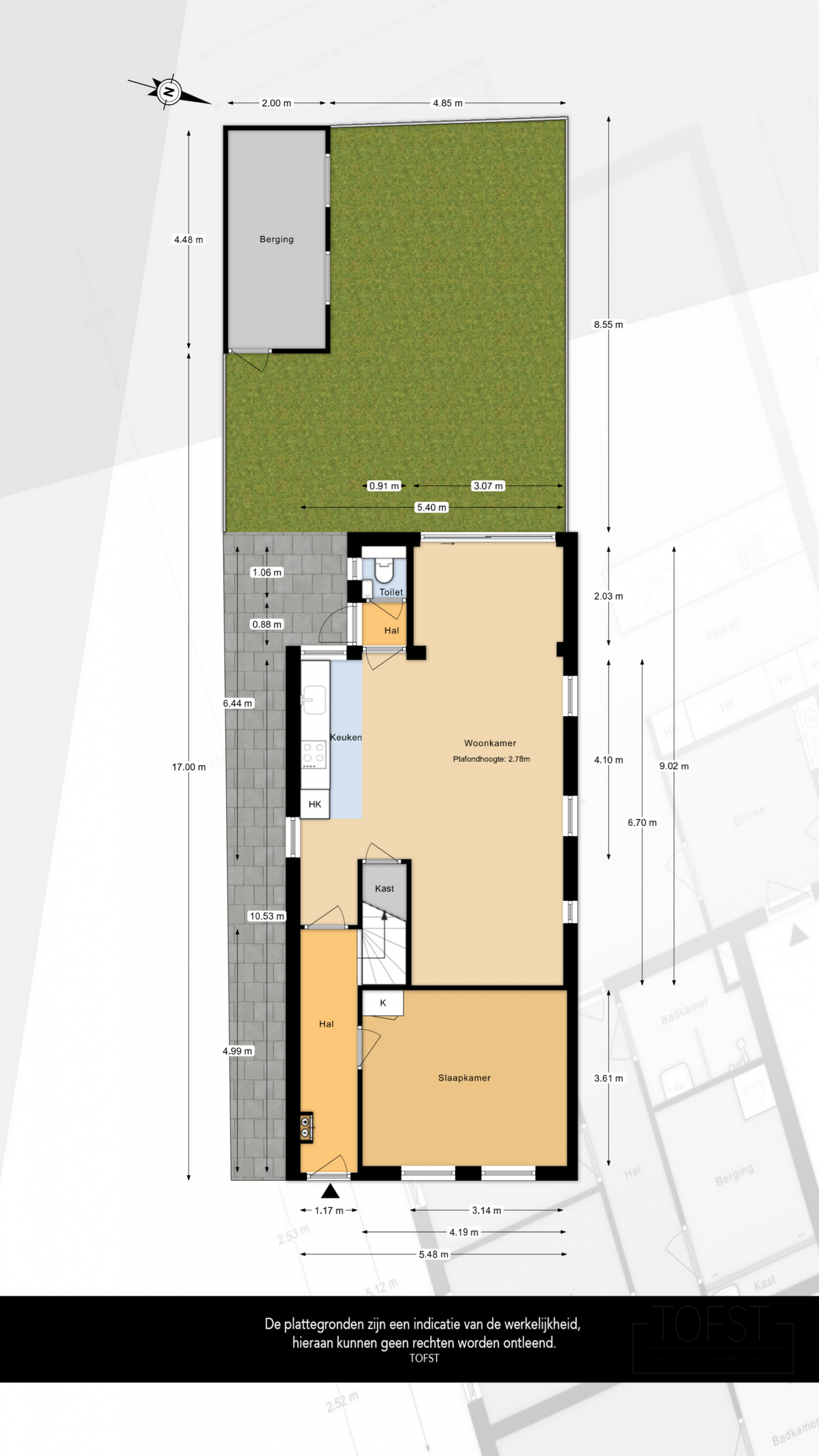 - 46 m² (8,55m Diep / 5,40m Breed)