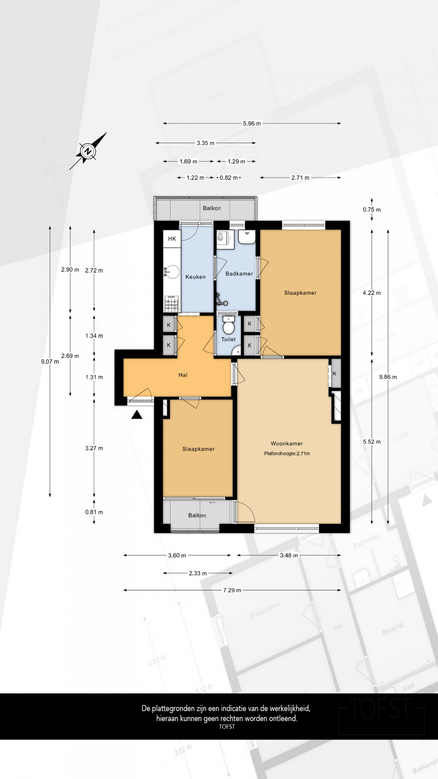 De Meetinstructie is gebaseerd op de NEN2580. De Meetinstructie is bedoeld om een meer eenduidige manier van meten toe te passen voor het geven van een indicatie van de gebruiksoppervlakte. De Meetinstructie sluit verschillen in meetuitkomsten niet volledig uit, door bijvoorbeeld interpretatieverschillen, afrondingen of beperkingen bij het uitvoeren van de meting. Indien de exacte maten voor een koper van cruciaal belang zijn, adviseren wij deze zelf na te meten. De (kandidaat)koper(s) zullen, indien gewenst, daartoe in de gelegenheid gesteld worden op een passend moment teneinde teleurstellingen en schade te voorkomen.