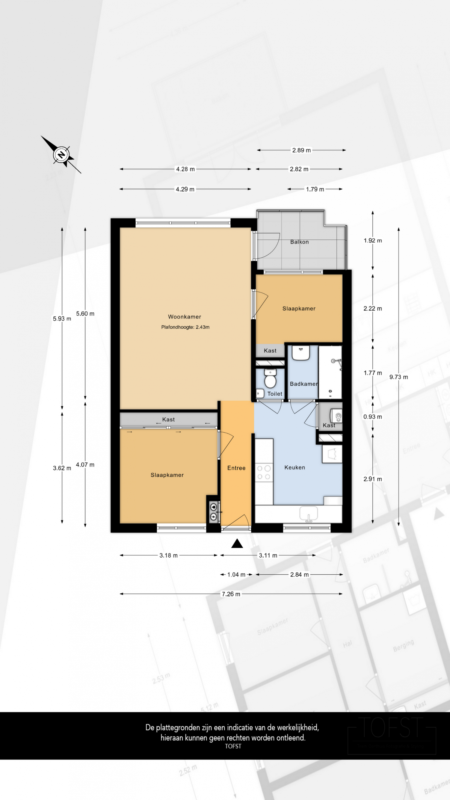 De Meetinstructie is gebaseerd op de NEN2580. De Meetinstructie is bedoeld om een meer eenduidige manier van meten toe te passen voor het geven van een indicatie van de gebruiksoppervlakte. De Meetinstructie sluit verschillen in meetuitkomsten niet volledig uit, door bijvoorbeeld interpretatieverschillen, afrondingen of beperkingen bij het uitvoeren van de meting. Indien de exacte maten voor een koper van cruciaal belang zijn, adviseren wij deze zelf na te meten. De (kandidaat)koper(s) zullen, indien gewenst, daartoe in de gelegenheid gesteld worden op een passend moment teneinde teleurstellingen en schade te voorkomen.