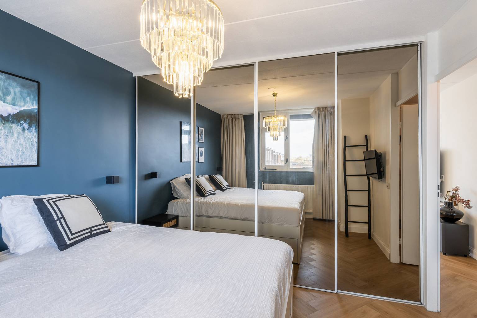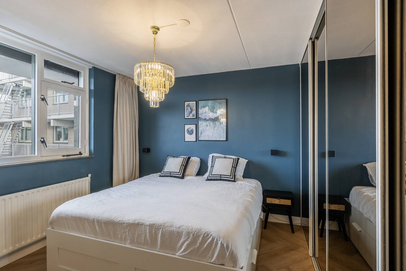 De eerste slaapkamer is gelegen aan de galerijzijde en beschikt over een vaste kast met schuifdeuren.