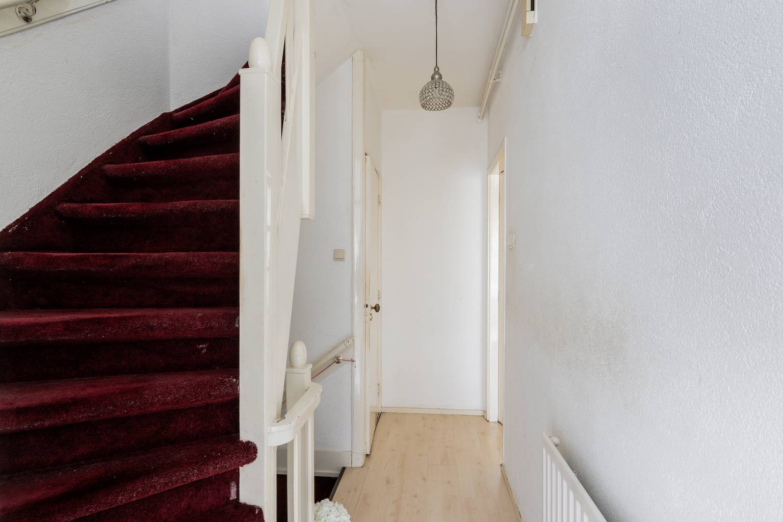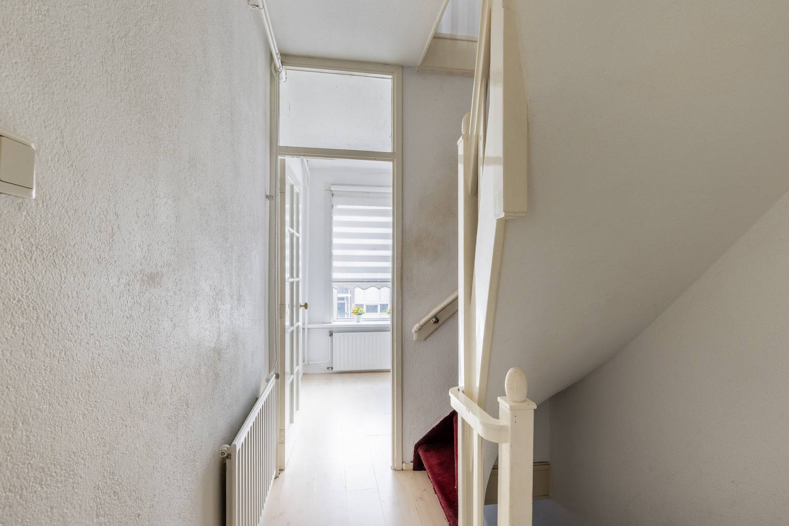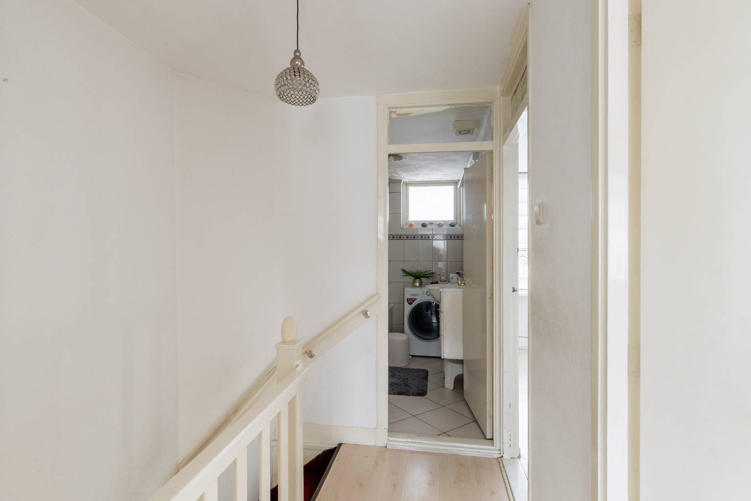 De overloop op deze verdieping biedt toegang tot nog drie slaapkamers en de badkamer. Hier zijn alle wanden voorzien van pleisterwerk en ligt er een laminaatvloer (met uitzondering van de badkamer).