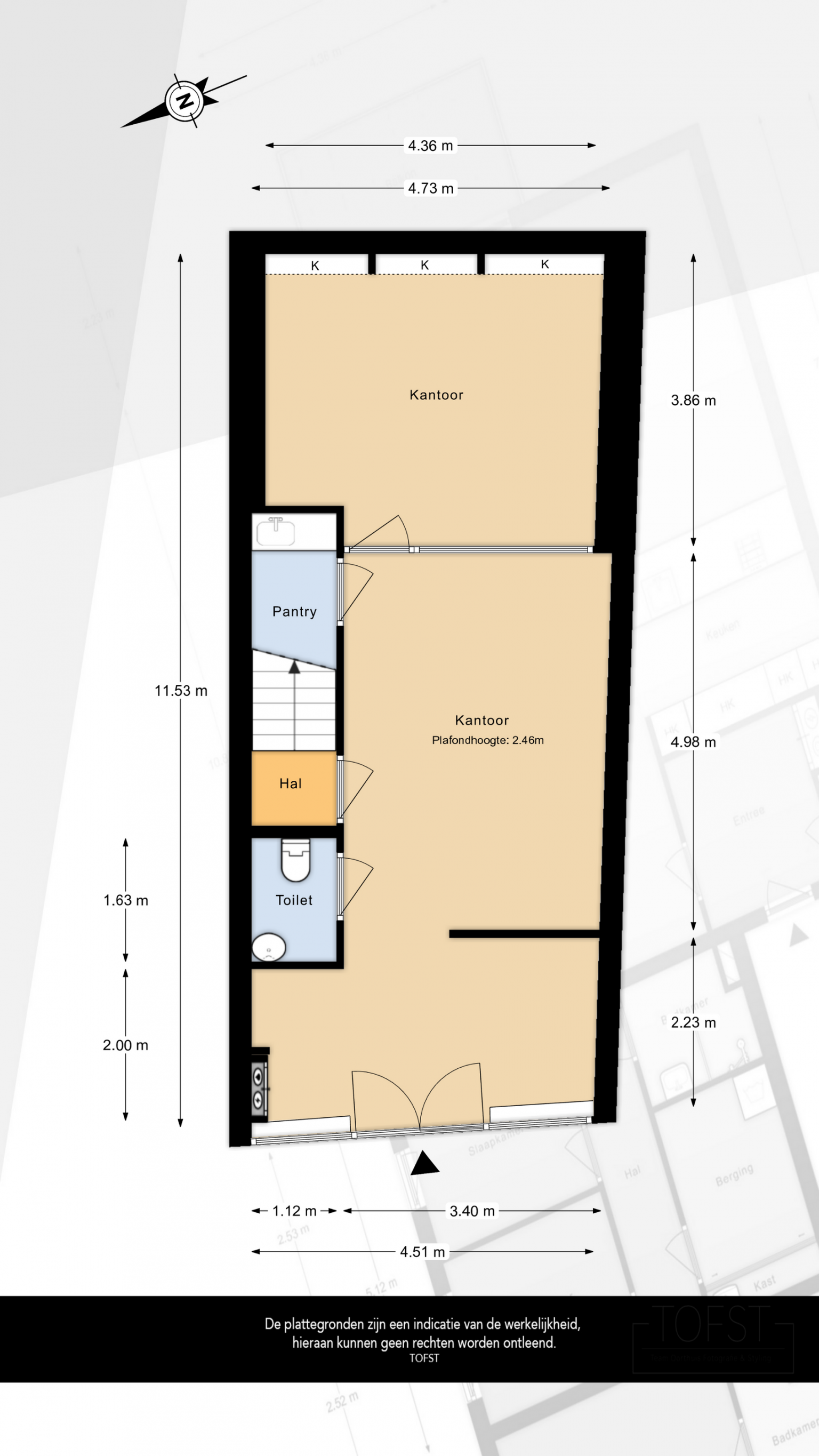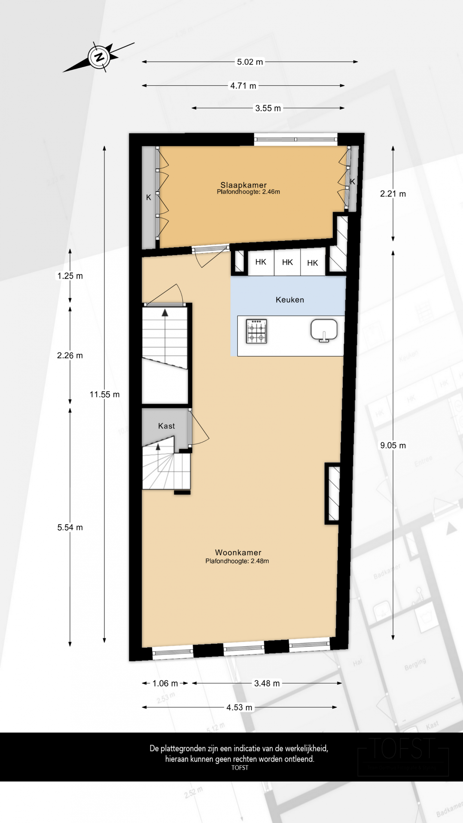 De Meetinstructie is gebaseerd op de NEN2580. De Meetinstructie is bedoeld om een meer eenduidige manier van meten toe te passen voor het geven van een indicatie van de gebruiksoppervlakte. De Meetinstructie sluit verschillen in meetuitkomsten niet volledig uit, door bijvoorbeeld interpretatieverschillen, afrondingen of beperkingen bij het uitvoeren van de meting. Indien de exacte maten voor een koper van cruciaal belang zijn, adviseren wij deze zelf na te meten. De (kandidaat)koper(s) zullen, indien gewenst, daartoe in de gelegenheid gesteld worden op een passend moment teneinde teleurstellingen en schade te voorkomen.