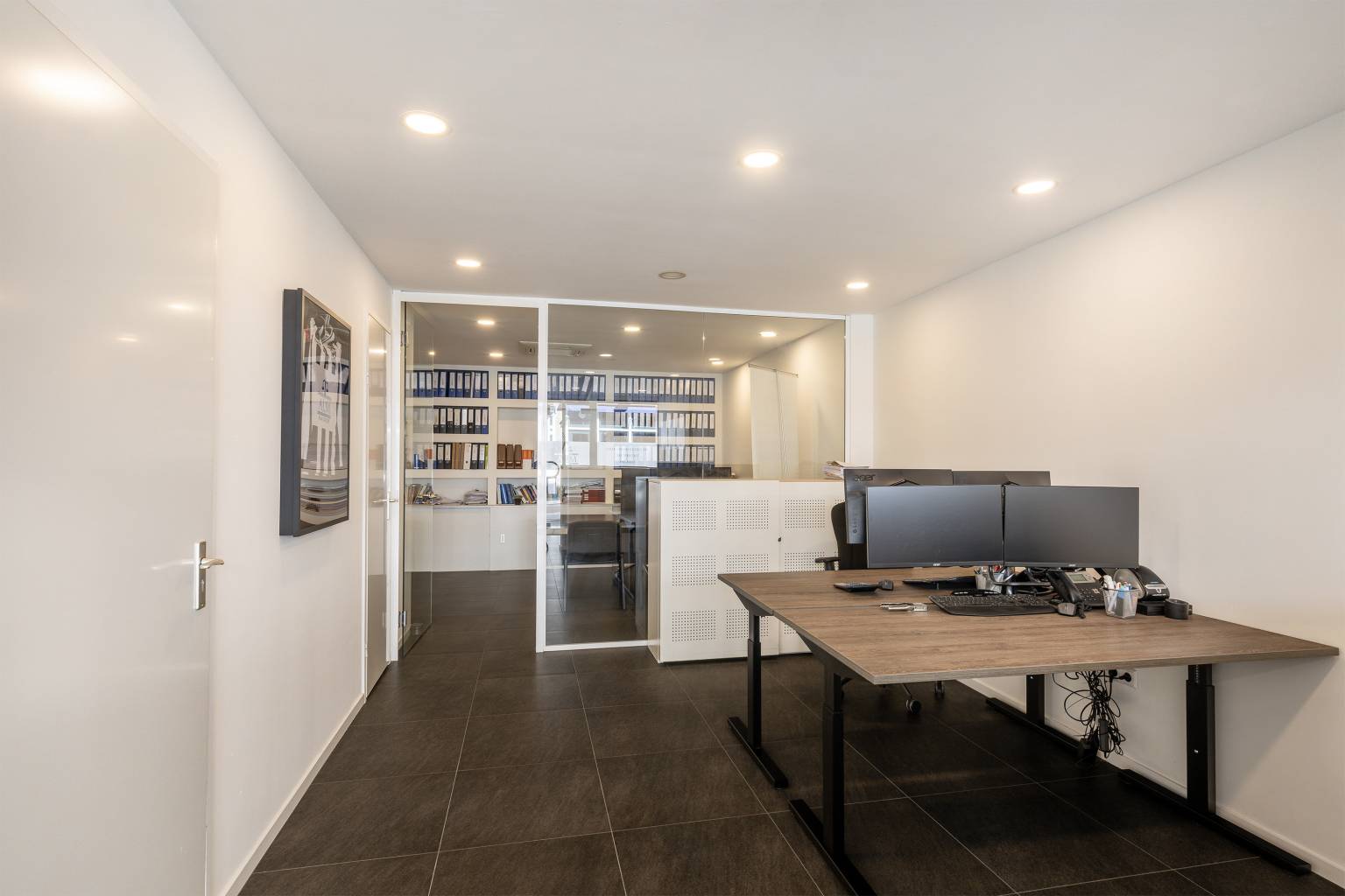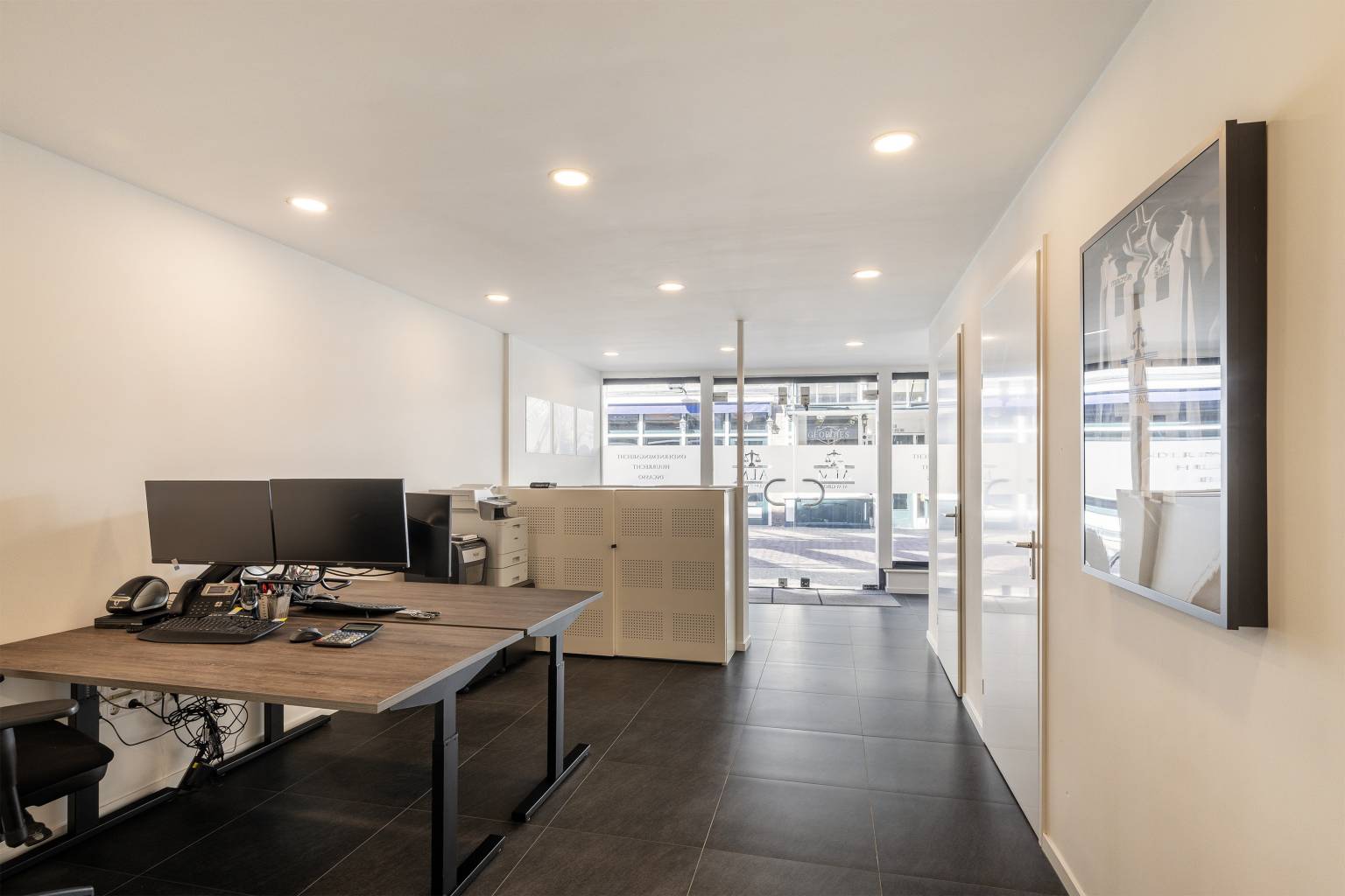 Op de begane grond vind je een representatieve en keurig afgewerkte bedrijfsruimte met een uitnodigende glazen pui, ideaal voor een kantoor of praktijk aan huis. De indeling met een ontvangstruimte, werkplekken en een aparte kantoorkamer zorgt voor een professionele uitstraling, terwijl de pantry, het toilet en de airconditioning het geheel compleet maken. Dankzij de nette afwerking met gestuukte wanden, inbouwspots en een tegelvloer is het een instapklare plek om direct aan de slag te gaan. De woonverdiepingen daarboven bieden verrassend veel ruimte en comfort. De eerste verdieping vormt het hart van het wonen met een moderne open keuken met kookeiland en een lichte woonkamer aan de voorzijde met uitzicht over de straat. De combinatie van hoge ramen, een sfeervolle haardwand en een strakke afwerking geeft het geheel een warme en eigentijdse uitstraling. Op de tweede verdieping vind je meerdere (slaap)kamers en een extra zitruimte die flexibel in te richten is, ideaal voor bijvoorbeeld een werkplek, hobbyruimte of logeerkamer. De royale hoofdslaapkamer met airconditioning en vaste kasten, de complete badkamer en de vele bergruimtes maken het wooncomfort hier meer dan compleet. Met kenmerken zoals deels kunststof kozijnen met dubbel glas, energielabel B, een cv-installatie en volop vaste kasten is dit een pand dat niet alleen charme heeft, maar ook praktisch en comfortabel is in het dagelijks gebruik. Een unieke combinatie van wonen en werken op een levendige locatie, waar mogelijkheden en sfeer hand in hand gaan.