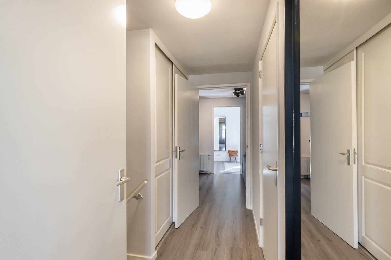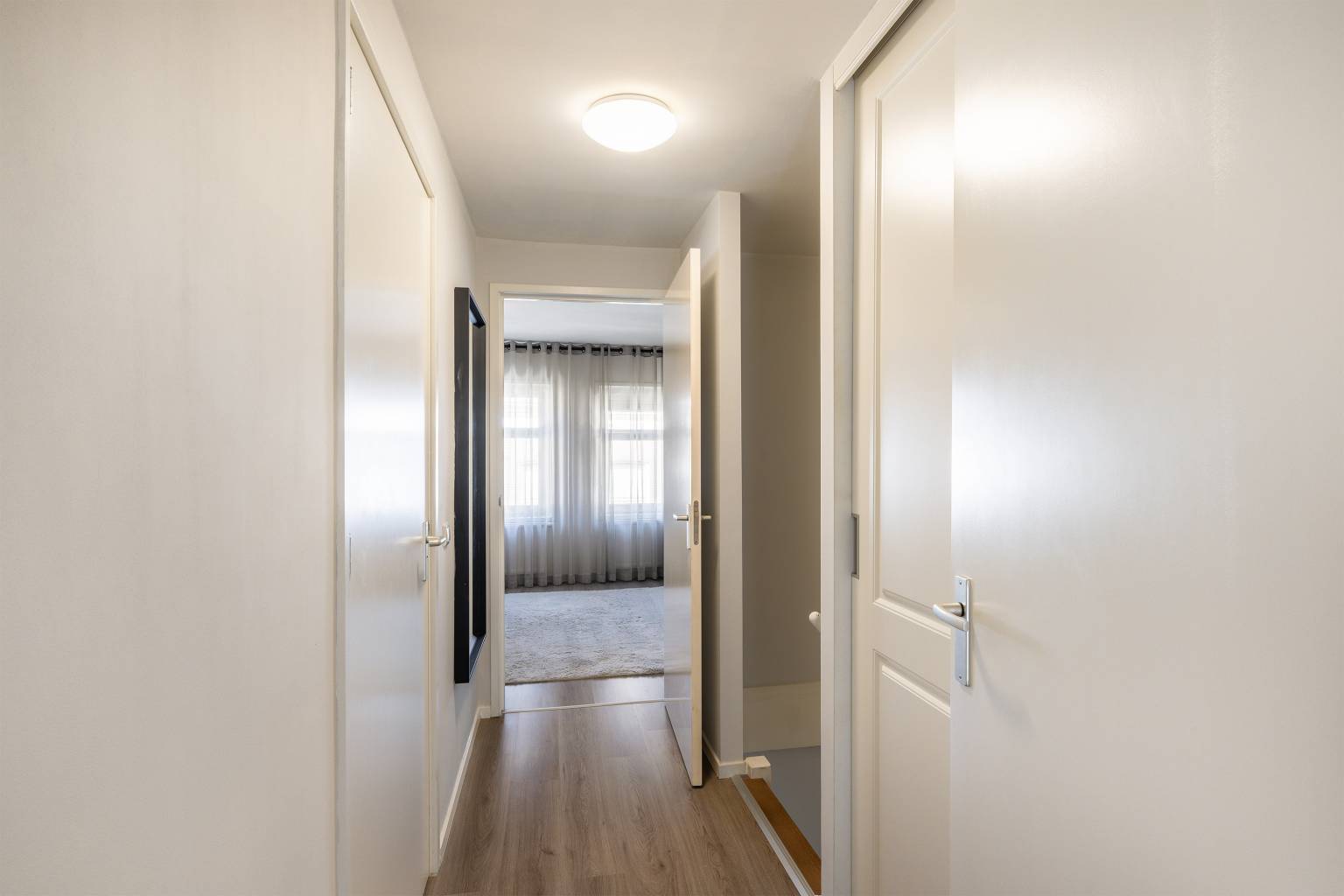De overloop op deze verdieping beschikt over een vaste kast met daarin de wasmachine aansluiting. Daarnaast is er toegang tot de tweede slaapkamer, een zitkamer, die in verbinding staat met de derde slaapkamer en de badkamer. Op deze verdieping zijn alle wanden en plafonds gestuukt en ligt er een laminaatvloer.