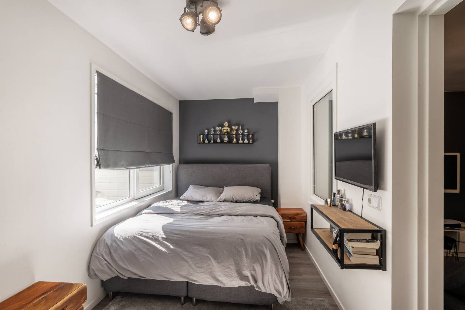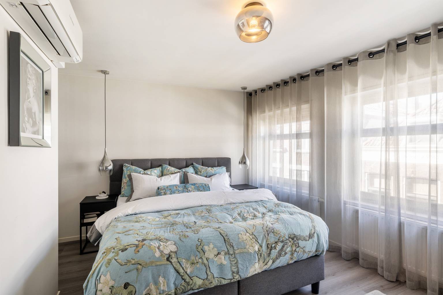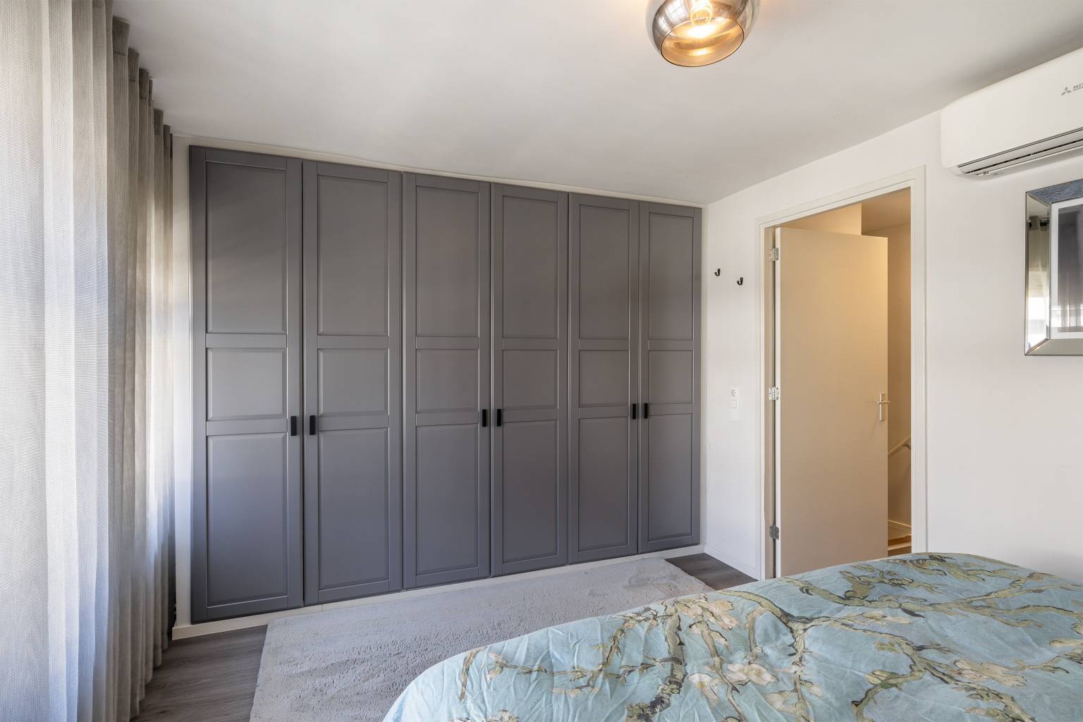 De slaapkamer aan de voorzijde is een ruime kamer en een grote vaste kastenwanden en een extra kastenwand in de nis met een open gedeelte. Tevens is deze kamer voorzien van airconditioning.