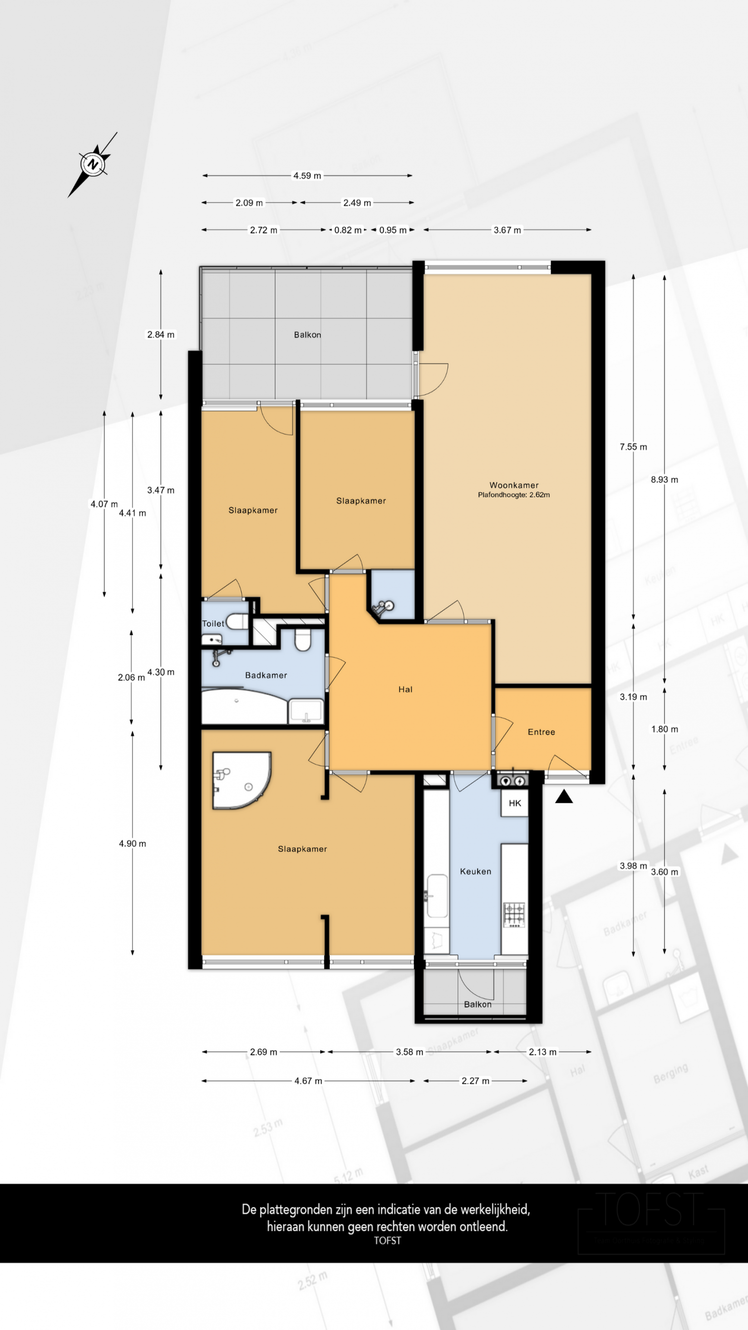 De Meetinstructie is gebaseerd op de NEN2580. De Meetinstructie is bedoeld om een meer eenduidige manier van meten toe te passen voor het geven van een indicatie van de gebruiksoppervlakte. De Meetinstructie sluit verschillen in meetuitkomsten niet volledig uit, door bijvoorbeeld interpretatieverschillen, afrondingen of beperkingen bij het uitvoeren van de meting. Indien de exacte maten voor een koper van cruciaal belang zijn, adviseren wij deze zelf na te meten. De (kandidaat)koper(s) zullen, indien gewenst, daartoe in de gelegenheid gesteld worden op een passend moment teneinde teleurstellingen en schade te voorkomen.