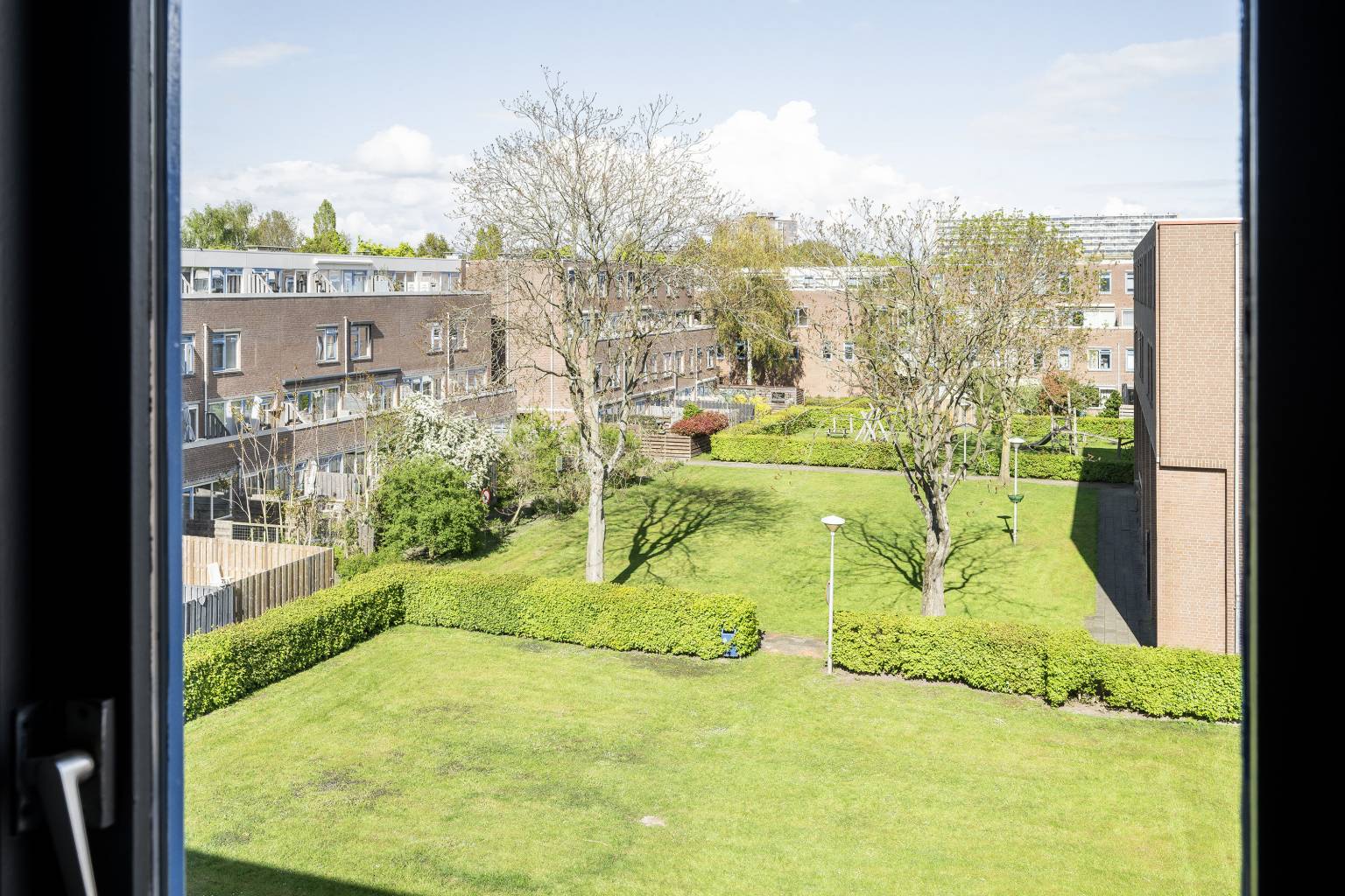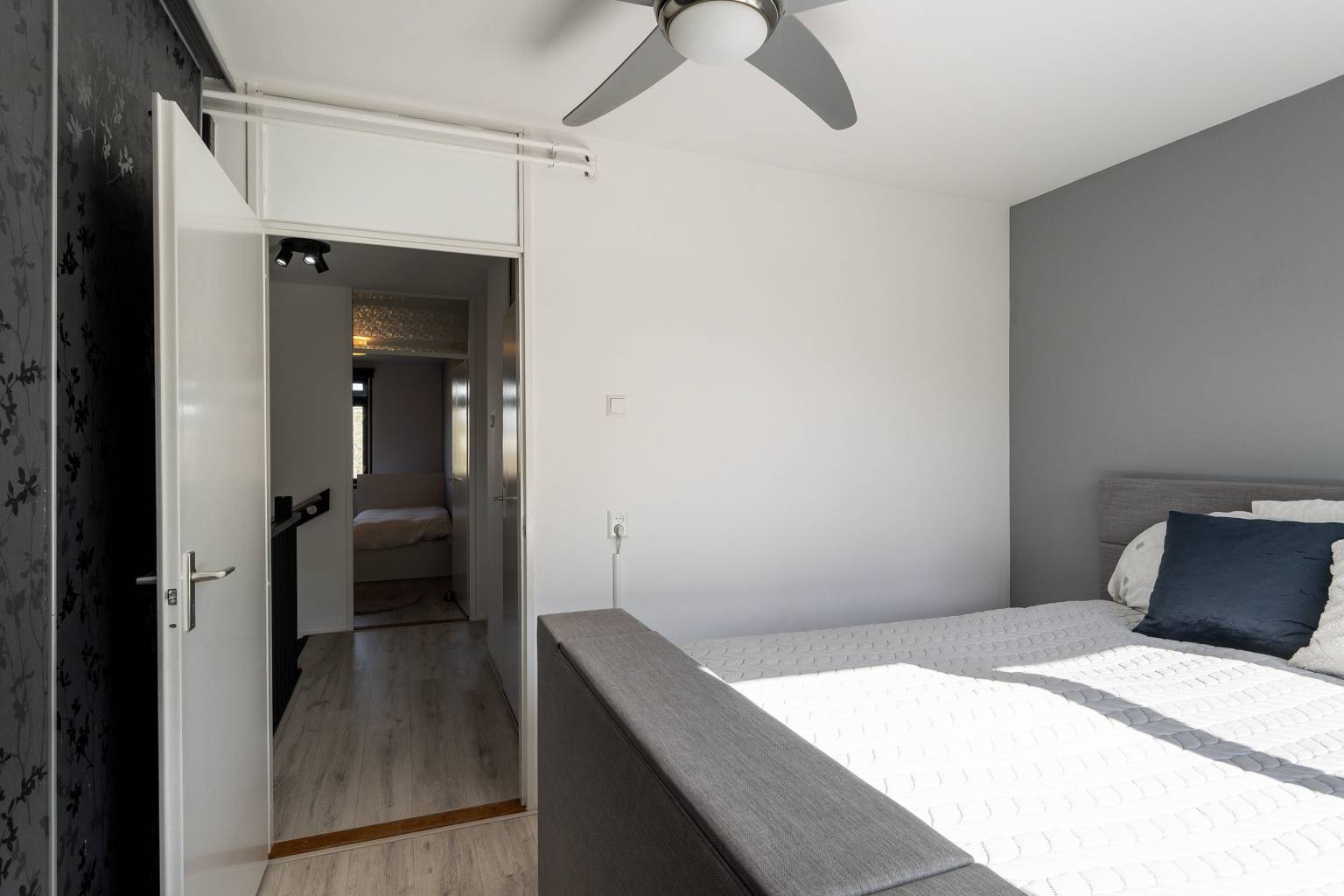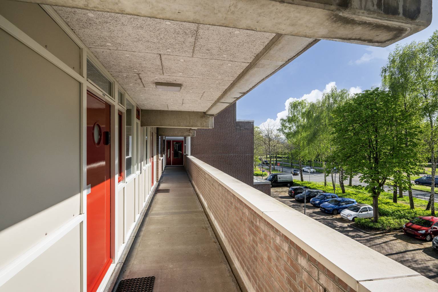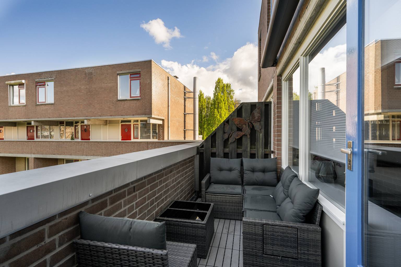 Wonen met ruimte, licht en een fijn uitzicht. Deze verrassende maisonnette op de bovenste lagen van het complex heeft het allemaal! Via de open entree en de overdekte galerij bereik je de woning, waar je binnenkomt in een nette hal met modern toilet en een doorlopende laminaatvloer die direct een verzorgde indruk geeft. De lichte woonkamer aan de achterzijde is een heerlijke plek om te ontspannen, met voldoende ruimte voor een gezellige zithoek en een eethoek, én een deur naar het balkon. Hier geniet je van een rustig uitzicht over de binnentuin, terwijl het elektrische zonnescherm en de beschutte ligging zorgen voor extra comfort en privacy. Aan de voorzijde vind je de open keuken in L-opstelling, compleet met een extra keukenblok en diverse inbouwapparatuur. Op de verdieping zet de nette afwerking zich voort met een overloop die toegang biedt tot drie slaapkamers en de badkamer. De hoofdslaapkamer aan de voorzijde beschikt over een ruime kast en elektrische rolluiken, terwijl de twee slaapkamers aan de achterzijde eveneens prettig van formaat zijn en voorzien zijn van rolluiken. De badkamer is volledig betegeld en ingericht met een inloopdouche, tweede toilet en een dubbel wastafelmeubel, afgewerkt met inbouwspots. Ook praktisch is de vaste kast met wasmachineaansluiting. De woning is goed onderhouden, voorzien van dubbele beglazing, een vernieuwde keuken en toilet (2025) en beschikt over een externe berging met elektra. De ligging maakt het plaatje compleet. In een groene, rustige woonomgeving met alle dagelijkse voorzieningen binnen handbereik, zoals winkels, scholen en openbaar vervoer. Daarnaast zijn er volop recreatiemogelijkheden in de buurt en ben je zo onderweg richting uitvalswegen. Een fijne plek waar comfortabel wonen en een prettige omgeving perfect samenkomen.