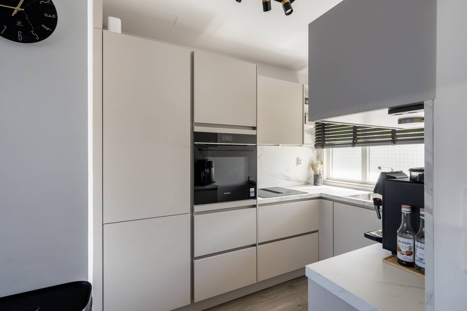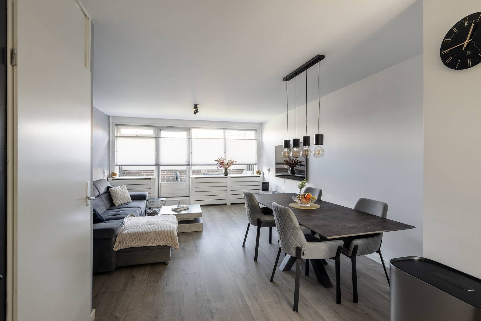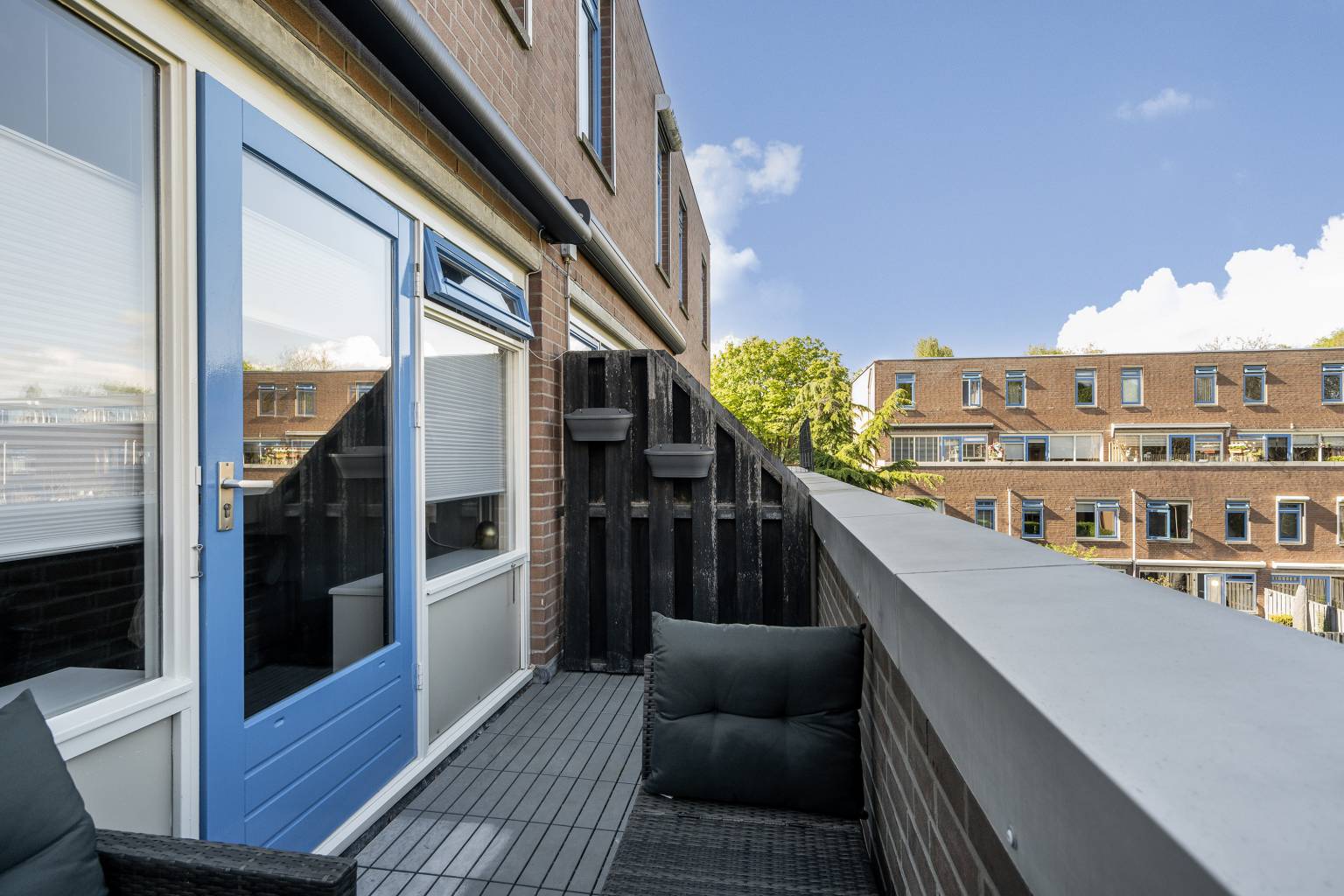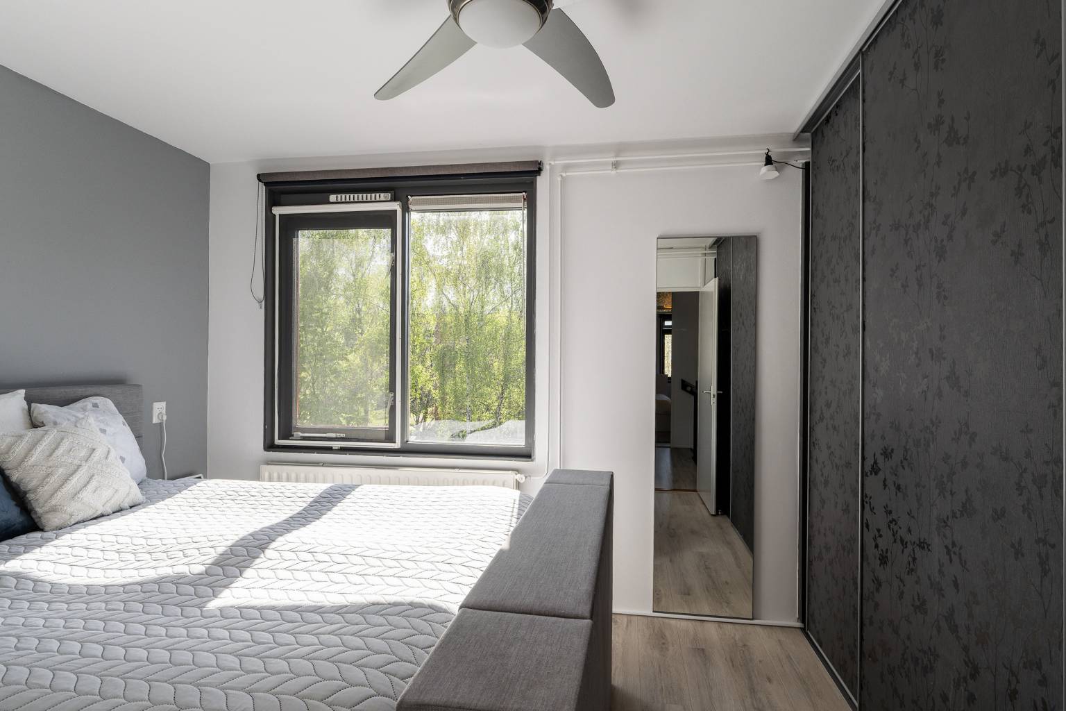 Wonen met ruimte, licht en een fijn uitzicht. Deze verrassende maisonnette op de bovenste lagen van het complex heeft het allemaal! Via de open entree en de overdekte galerij bereik je de woning, waar je binnenkomt in een nette hal met modern toilet en een doorlopende laminaatvloer die direct een verzorgde indruk geeft. De lichte woonkamer aan de achterzijde is een heerlijke plek om te ontspannen, met voldoende ruimte voor een gezellige zithoek en een eethoek, én een deur naar het balkon. Hier geniet je van een rustig uitzicht over de binnentuin, terwijl het elektrische zonnescherm en de beschutte ligging zorgen voor extra comfort en privacy. Aan de voorzijde vind je de open keuken in L-opstelling, compleet met een extra keukenblok en diverse inbouwapparatuur. Op de verdieping zet de nette afwerking zich voort met een overloop die toegang biedt tot drie slaapkamers en de badkamer. De hoofdslaapkamer aan de voorzijde beschikt over een ruime kast en elektrische rolluiken, terwijl de twee slaapkamers aan de achterzijde eveneens prettig van formaat zijn en voorzien zijn van rolluiken. De badkamer is volledig betegeld en ingericht met een inloopdouche, tweede toilet en een dubbel wastafelmeubel, afgewerkt met inbouwspots. Ook praktisch is de vaste kast met wasmachineaansluiting. De woning is goed onderhouden, voorzien van dubbele beglazing, een vernieuwde keuken en toilet (2025) en beschikt over een externe berging met elektra. De ligging maakt het plaatje compleet. In een groene, rustige woonomgeving met alle dagelijkse voorzieningen binnen handbereik, zoals winkels, scholen en openbaar vervoer. Daarnaast zijn er volop recreatiemogelijkheden in de buurt en ben je zo onderweg richting uitvalswegen. Een fijne plek waar comfortabel wonen en een prettige omgeving perfect samenkomen.