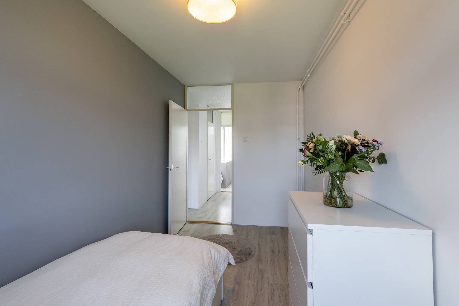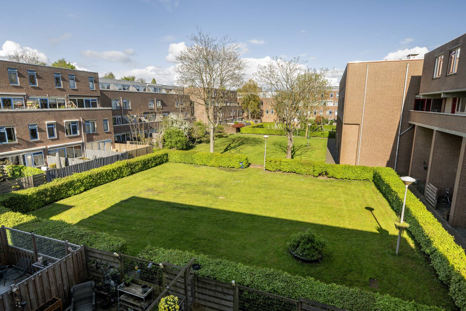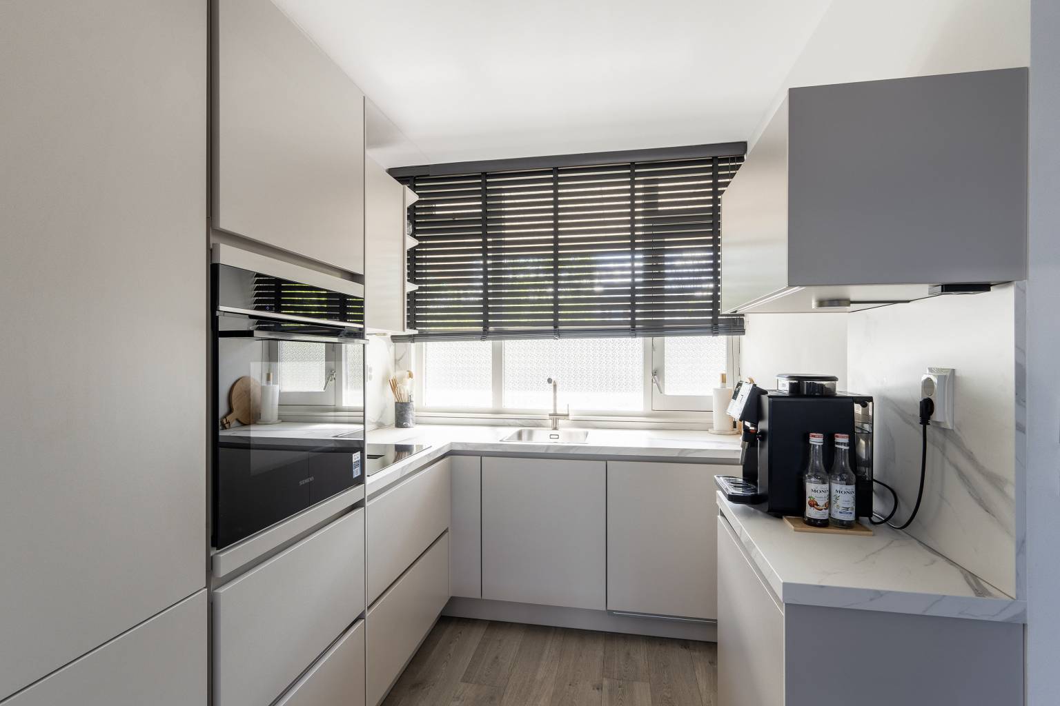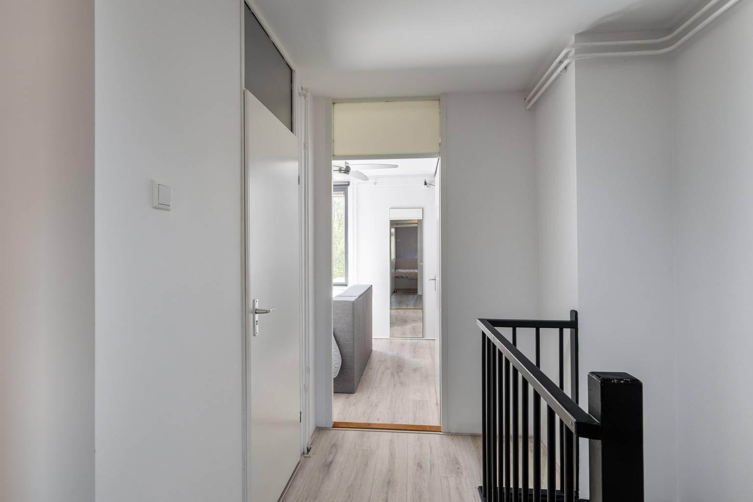 Wonen met ruimte, licht en een fijn uitzicht. Deze verrassende maisonnette op de bovenste lagen van het complex heeft het allemaal! Via de open entree en de overdekte galerij bereik je de woning, waar je binnenkomt in een nette hal met modern toilet en een doorlopende laminaatvloer die direct een verzorgde indruk geeft. De lichte woonkamer aan de achterzijde is een heerlijke plek om te ontspannen, met voldoende ruimte voor een gezellige zithoek en een eethoek, én een deur naar het balkon. Hier geniet je van een rustig uitzicht over de binnentuin, terwijl het elektrische zonnescherm en de beschutte ligging zorgen voor extra comfort en privacy. Aan de voorzijde vind je de open keuken in L-opstelling, compleet met een extra keukenblok en diverse inbouwapparatuur. Op de verdieping zet de nette afwerking zich voort met een overloop die toegang biedt tot drie slaapkamers en de badkamer. De hoofdslaapkamer aan de voorzijde beschikt over een ruime kast en elektrische rolluiken, terwijl de twee slaapkamers aan de achterzijde eveneens prettig van formaat zijn en voorzien zijn van rolluiken. De badkamer is volledig betegeld en ingericht met een inloopdouche, tweede toilet en een dubbel wastafelmeubel, afgewerkt met inbouwspots. Ook praktisch is de vaste kast met wasmachineaansluiting. De woning is goed onderhouden, voorzien van dubbele beglazing, een vernieuwde keuken en toilet (2025) en beschikt over een externe berging met elektra. De ligging maakt het plaatje compleet. In een groene, rustige woonomgeving met alle dagelijkse voorzieningen binnen handbereik, zoals winkels, scholen en openbaar vervoer. Daarnaast zijn er volop recreatiemogelijkheden in de buurt en ben je zo onderweg richting uitvalswegen. Een fijne plek waar comfortabel wonen en een prettige omgeving perfect samenkomen.