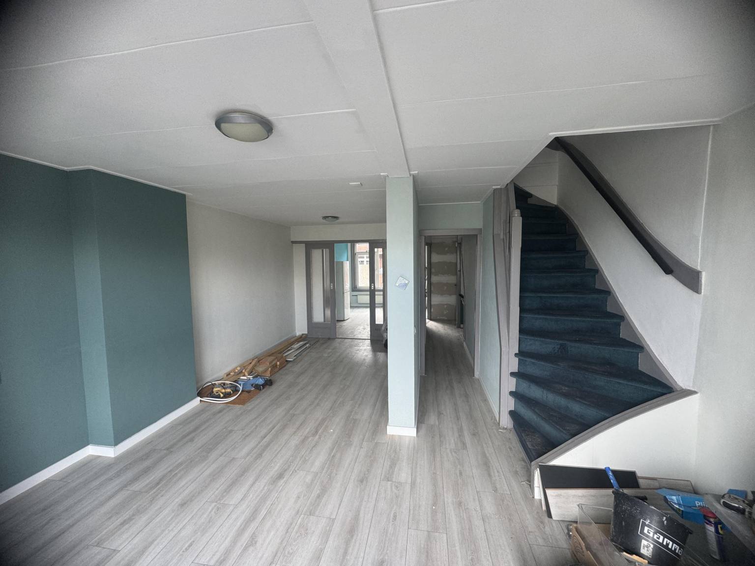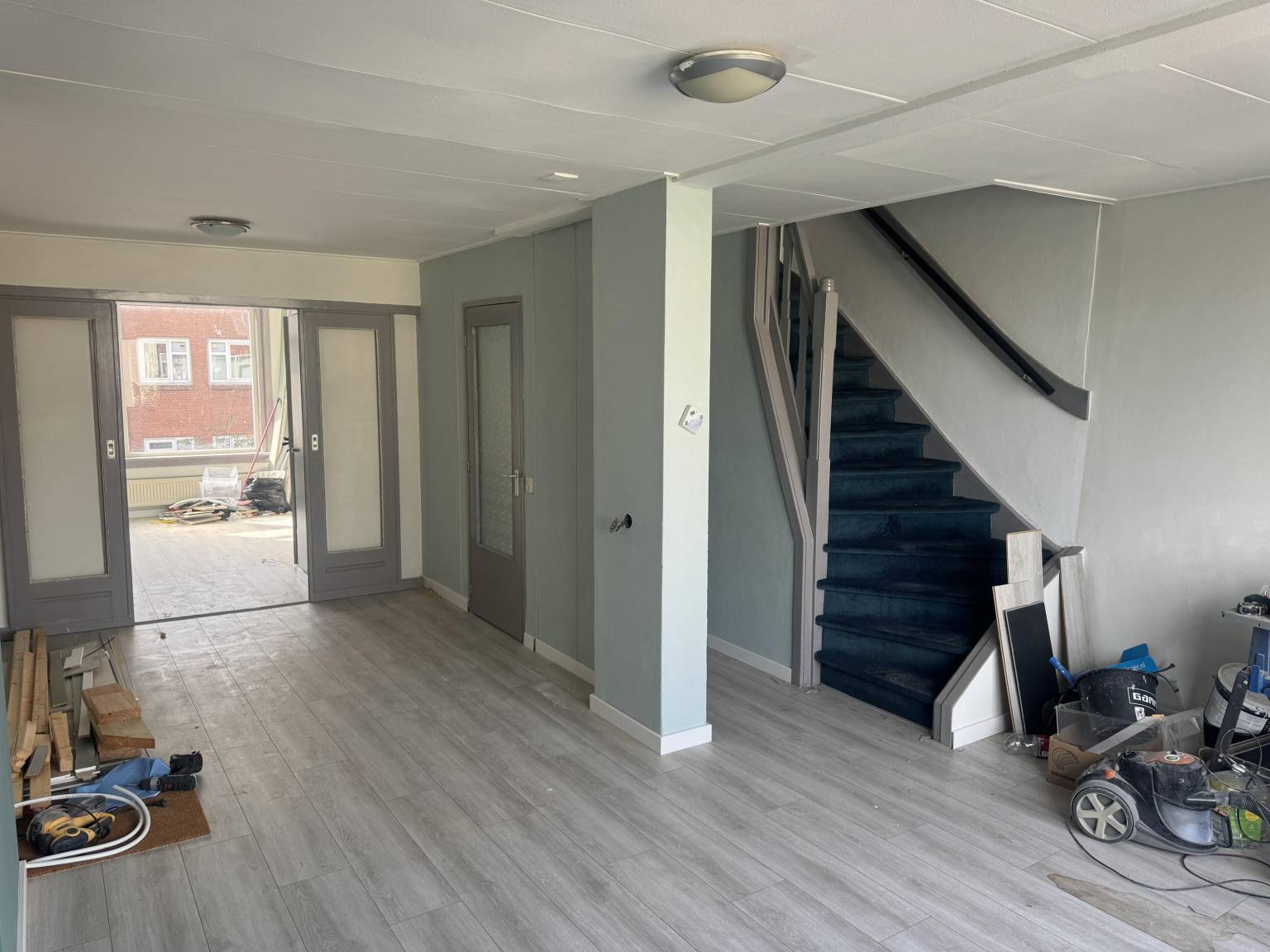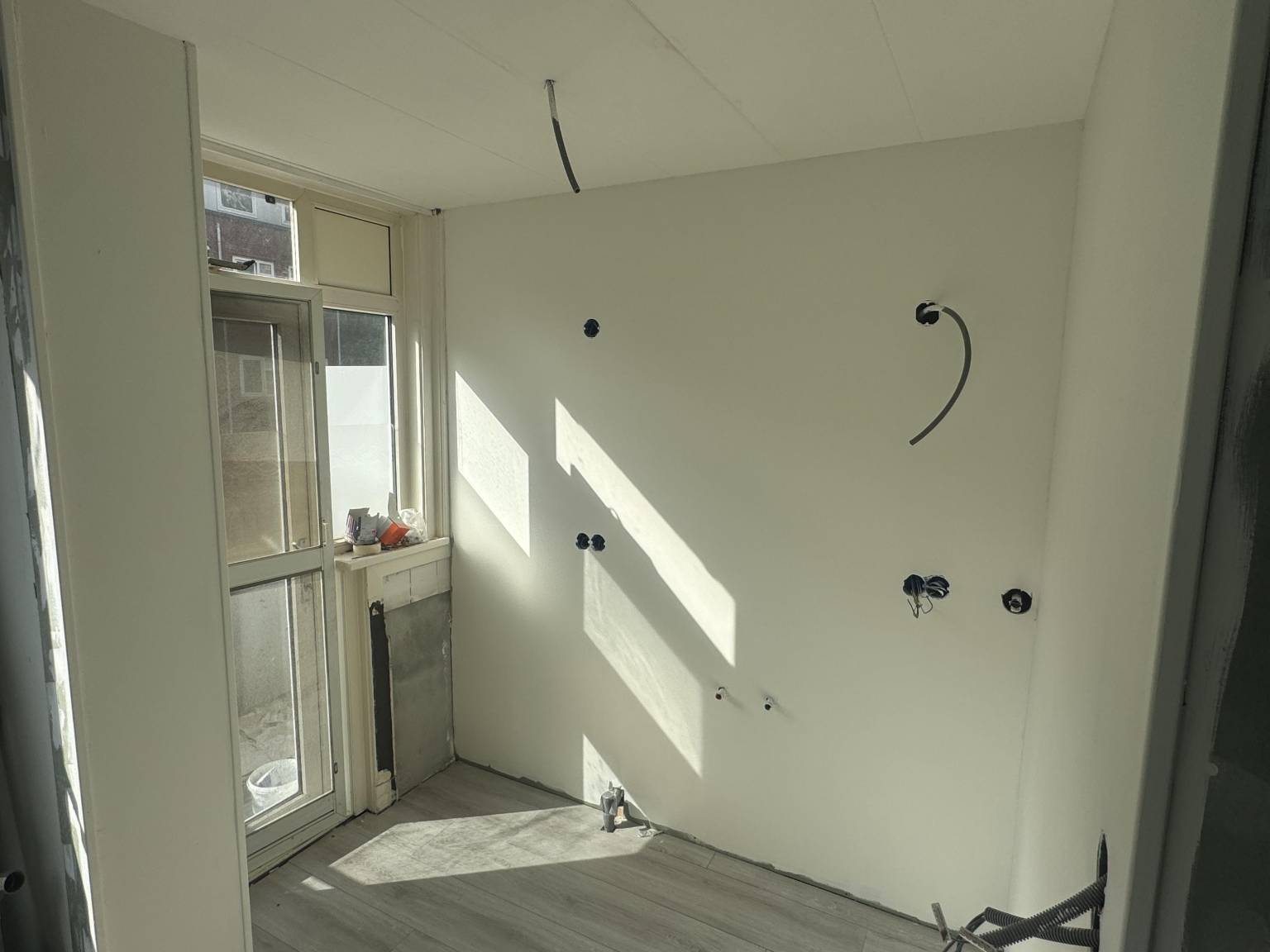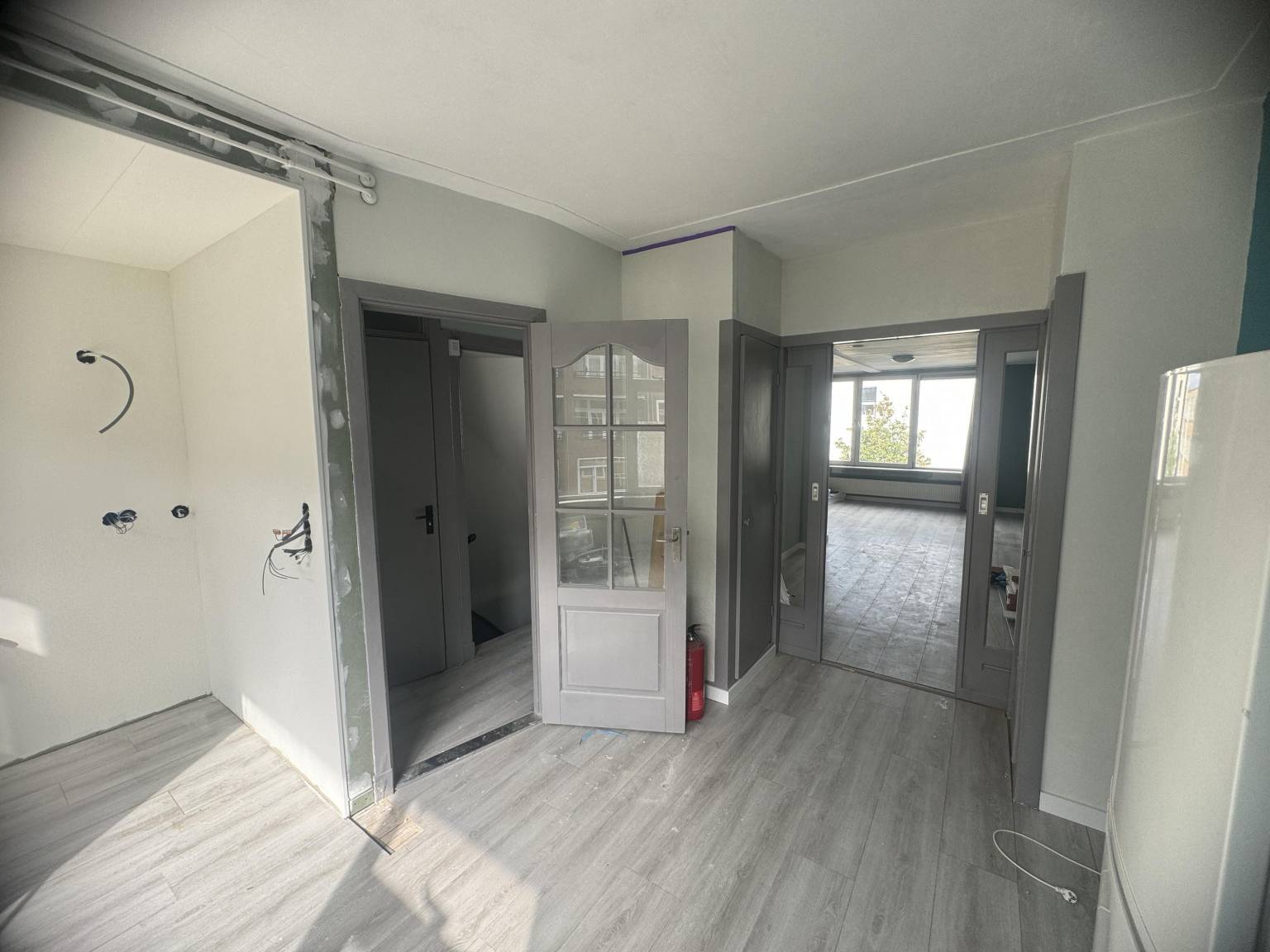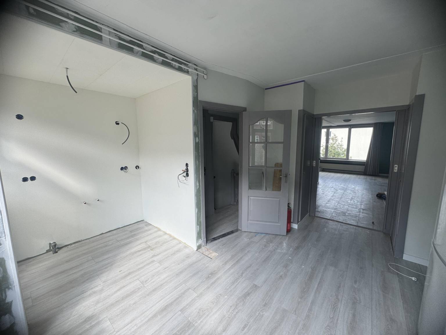 In de hal bevindt zich een apart toilet. De open keuken, die je helemaal naar eigen smaak kunt inrichten, biedt een blanco canvas voor jouw droomkeuken. Met de ruimte en flexibiliteit kun je hier alle kanten op.