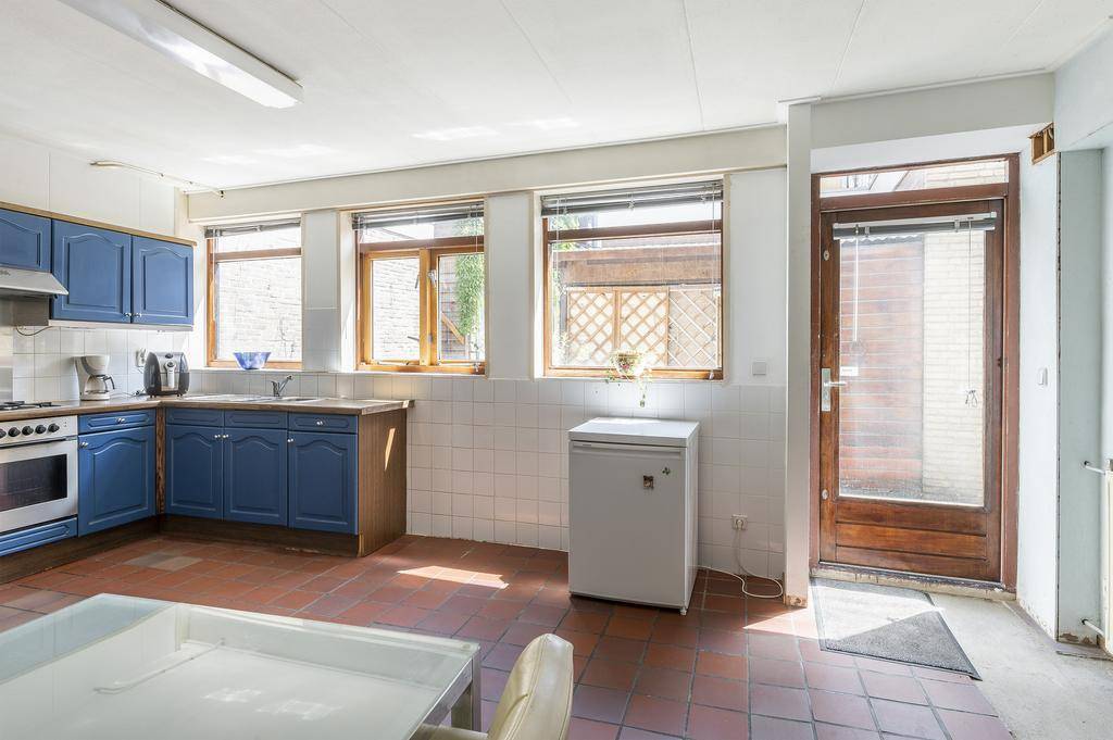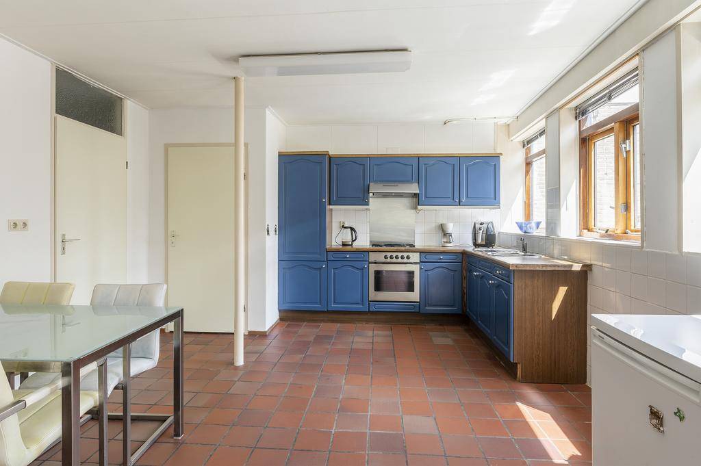 De entree geeft toegang tot de woonkeuken. De open keuken is in hoekopstelling en is uitgerust met een oven, gaskookplaat en afzuigkap. Het is mogelijk om deze ruimte als grote woonkeuken in te richten. Momenteel is er een aparte toiletruimte met fonteintje aanwezig maar met wat aanpassingen zou hier voldoende ruimte ontstaan om een zit en eetgedeelte te realiseren.