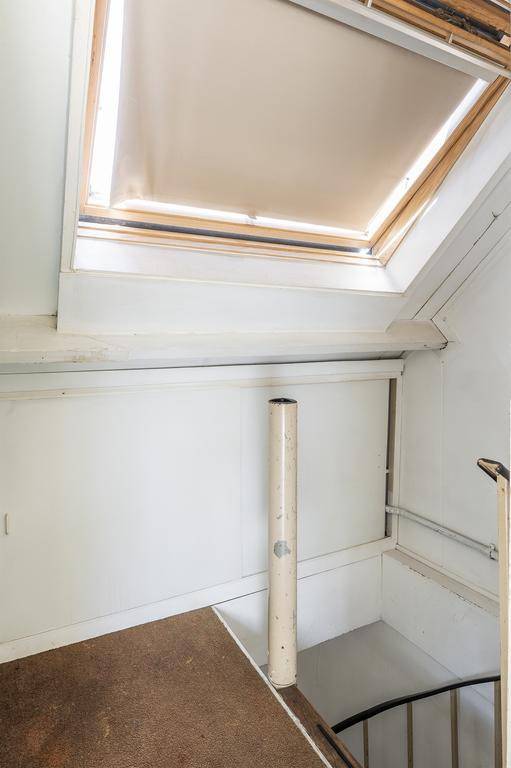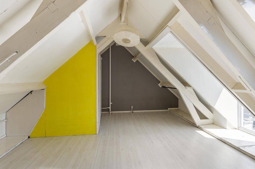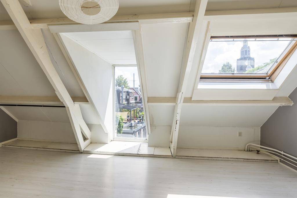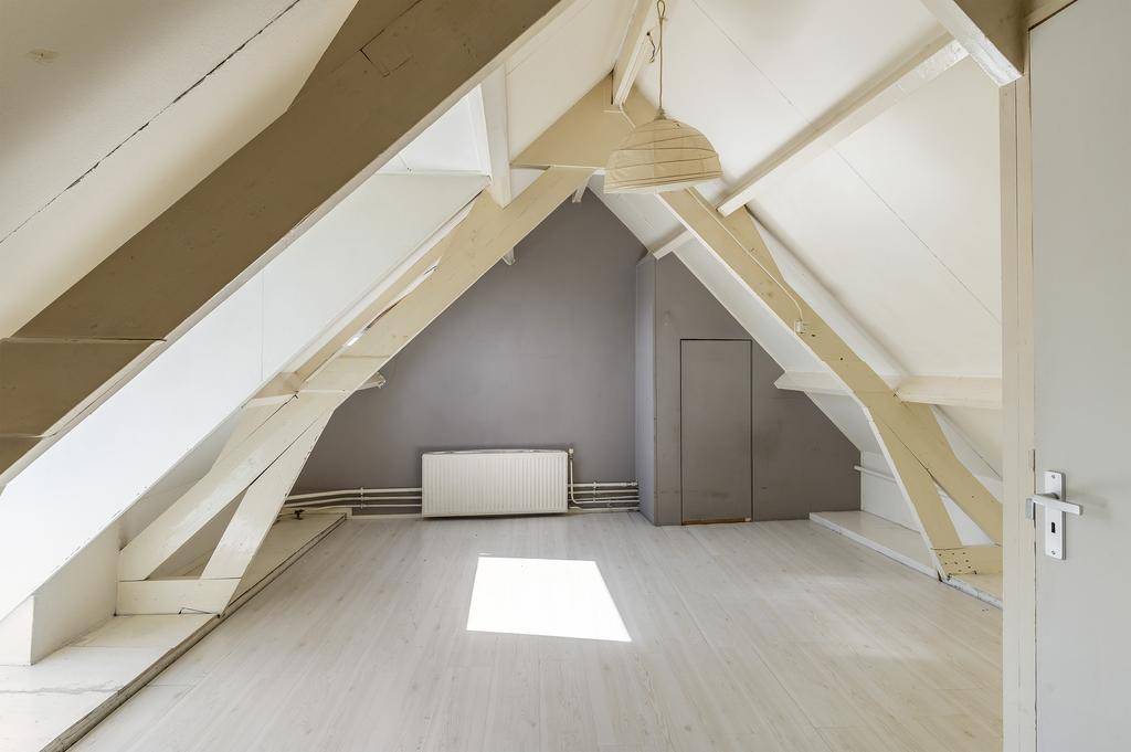 De overloop beschikt over een dakraam en een inbouwkast met de cv-opstelling. De ruime zolderkamer heeft meerdere ramen en kan als slaapkamer ingericht worden. Het is ook mogelijk om hier twee slaapkamers te realiseren.