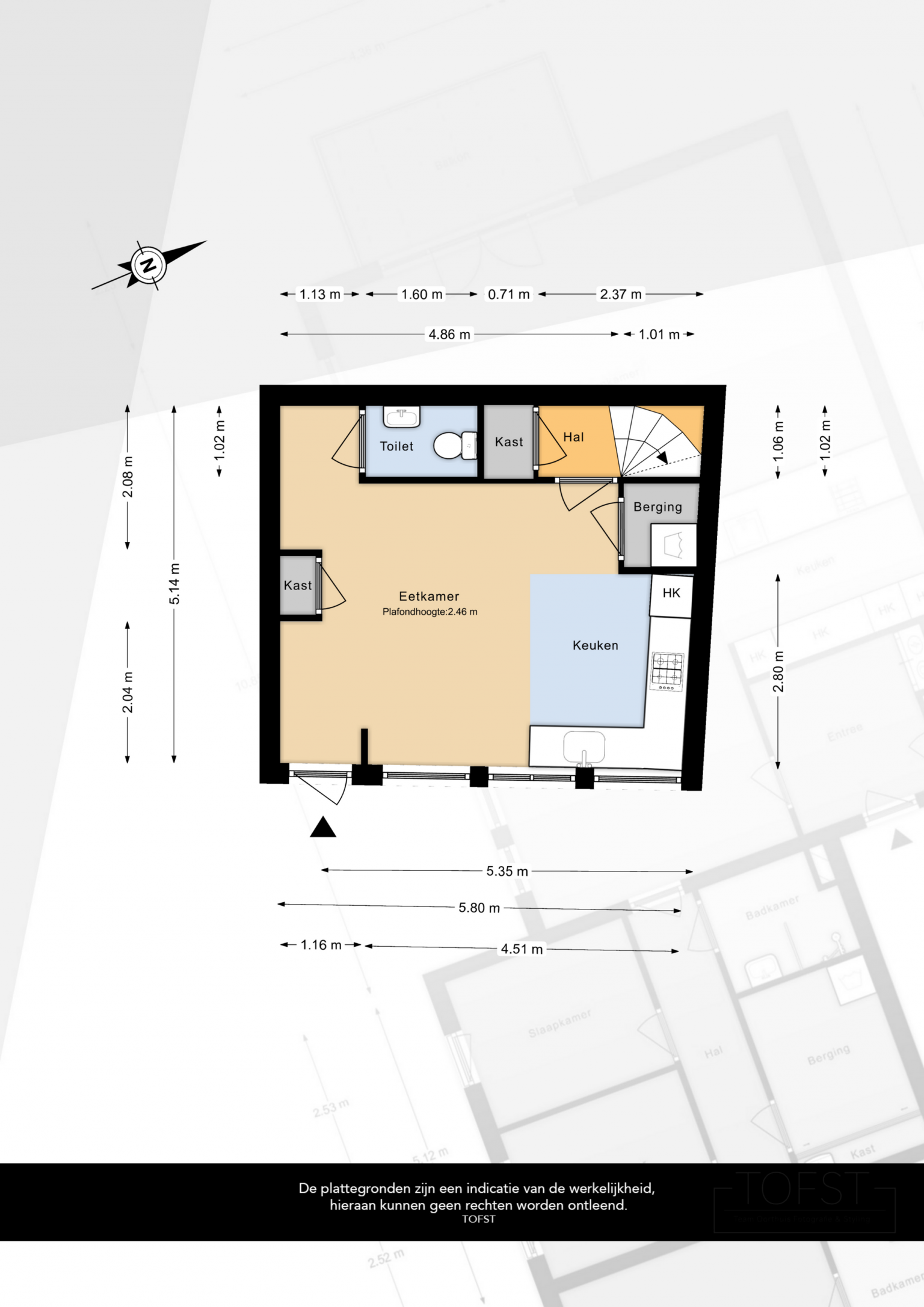 De Meetinstructie is gebaseerd op de NEN2580. De Meetinstructie is bedoeld om een meer eenduidige manier van meten toe te passen voor het geven van een indicatie van de gebruiksoppervlakte. De Meetinstructie sluit verschillen in meetuitkomsten niet volledig uit, door bijvoorbeeld interpretatieverschillen, afrondingen of beperkingen bij het uitvoeren van de meting. Indien de exacte maten voor een koper van cruciaal belang zijn, adviseren wij deze zelf na te meten. De (kandidaat)koper(s) zullen, indien gewenst, daartoe in de gelegenheid gesteld worden op een passend moment teneinde teleurstellingen en schade te voorkomen.