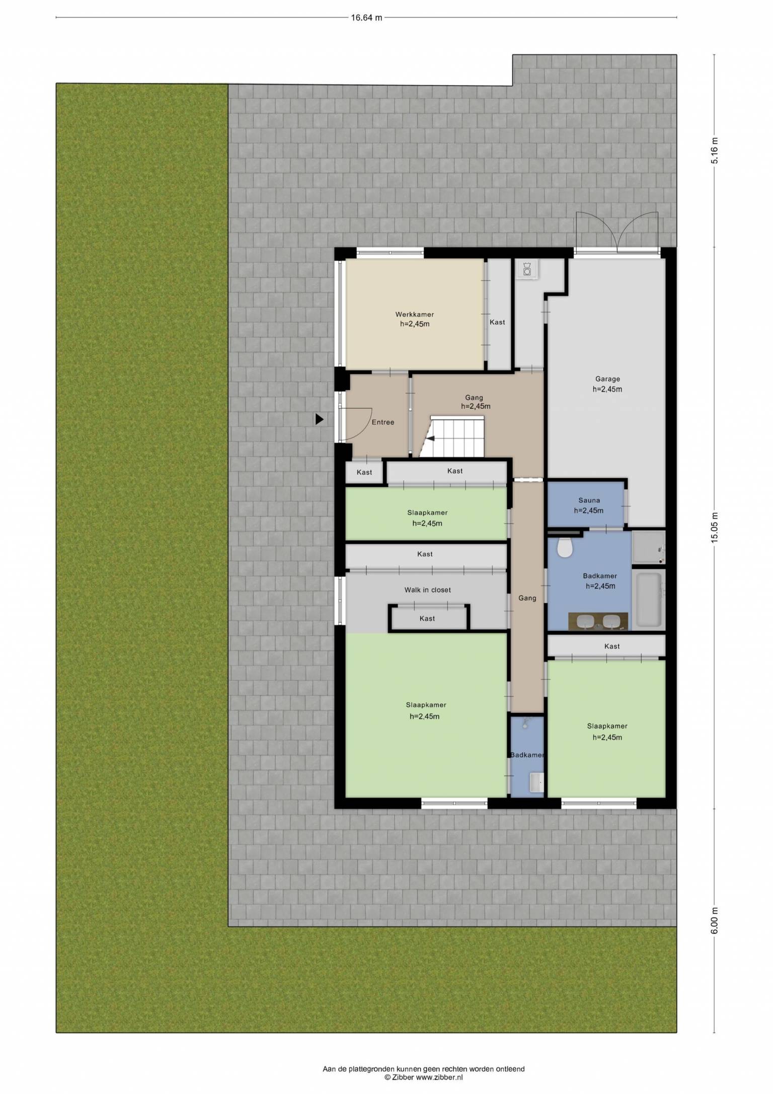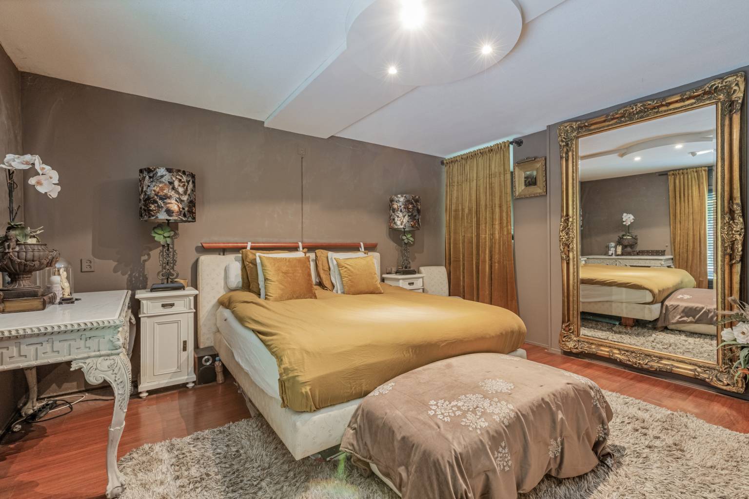 Begane grond: Ruime entree met een hal met vide richting alle vertrekken. Op deze verdieping treft u een werkkamer en vier slaapkamers aan, waarvan 1 een walk-in-closet is gemaakt, 2 badkamers, wasruimte en de berging/garage. Aan de voorzijde treft u een kamer welke nu in gebruik is als kantoor. 2 van de slaapkamers zijn gelegen aan de achterzijde van de woning met schuifpuien direct aan de achtertuin. Eén is zeer royaal en voorzien van een kleine badkamer met wastafel en douche en een Walk-in closet, waardoor u kunt genieten van een luxueus woongenot. De grote marmeren badkamer is voorzien van een ligbad, 2 wastafels met meubel, een inloopdouche en toilet.
