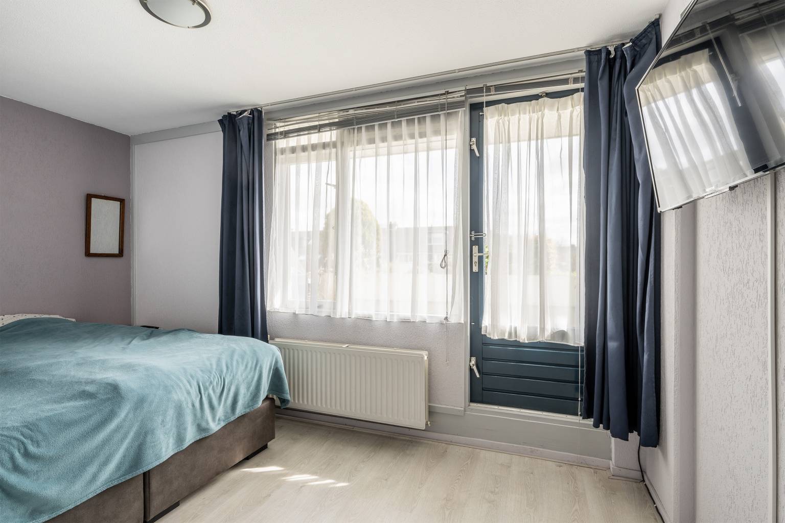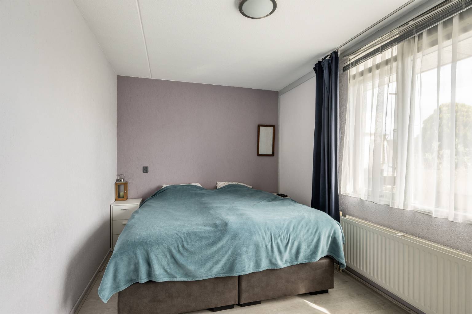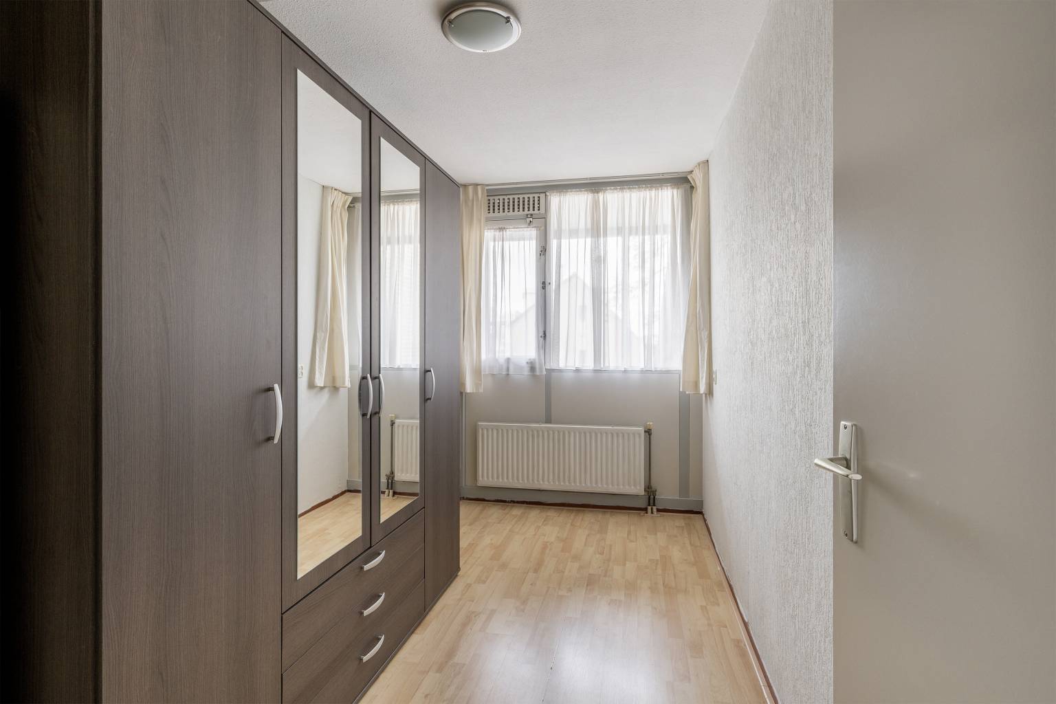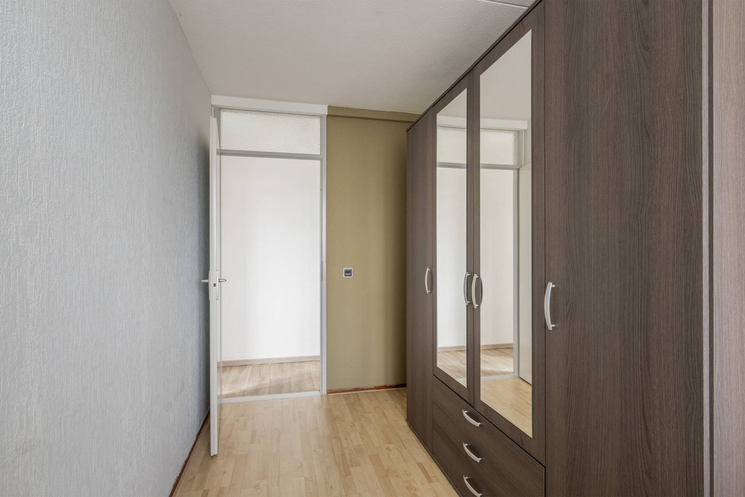 Er zijn twee slaapkamers gelegen aan de galerijzijde en bij beide is de vloer voorzien van vinyl en de wanden afgewerkt met granol. De hoofdslaapkamer is gelegen aan de voorzijde en heeft net als de andere slaapkamers vinyl op de vloer en granol aan de wanden. Daarnaast geeft deze slaapkamer, net als de woonkamer, toegang tot het terras aan de voorzijde.