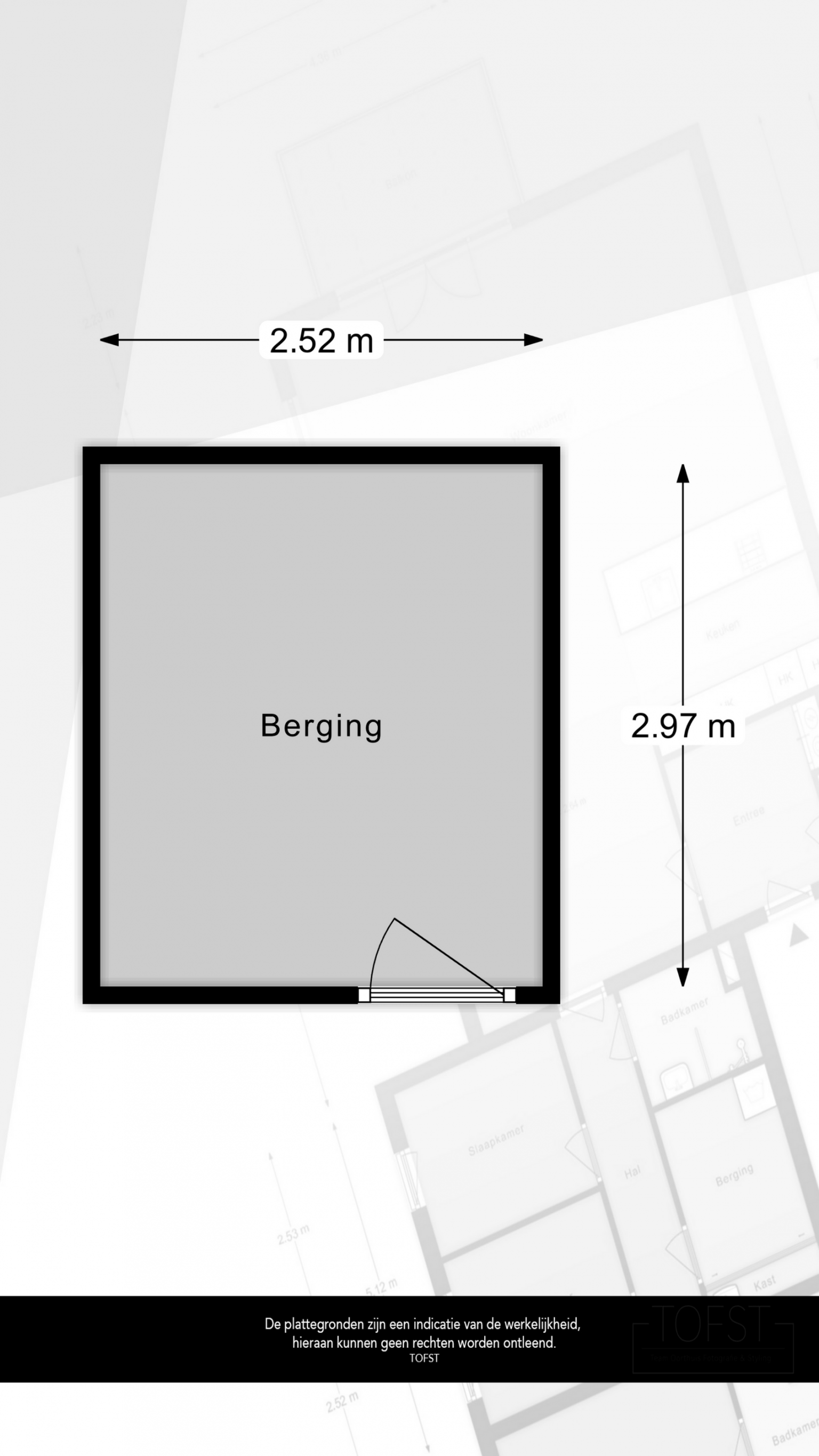 De Meetinstructie is gebaseerd op de NEN2580. De Meetinstructie is bedoeld om een meer eenduidige manier van meten toe te passen voor het geven van een indicatie van de gebruiksoppervlakte. De Meetinstructie sluit verschillen in meetuitkomsten niet volledig uit, door bijvoorbeeld interpretatieverschillen, afrondingen of beperkingen bij het uitvoeren van de meting. Indien de exacte maten voor een koper van cruciaal belang zijn, adviseren wij deze zelf na te meten. De (kandidaat)koper(s) zullen, indien gewenst, daartoe in de gelegenheid gesteld worden op een passend moment teneinde teleurstellingen en schade te voorkomen.