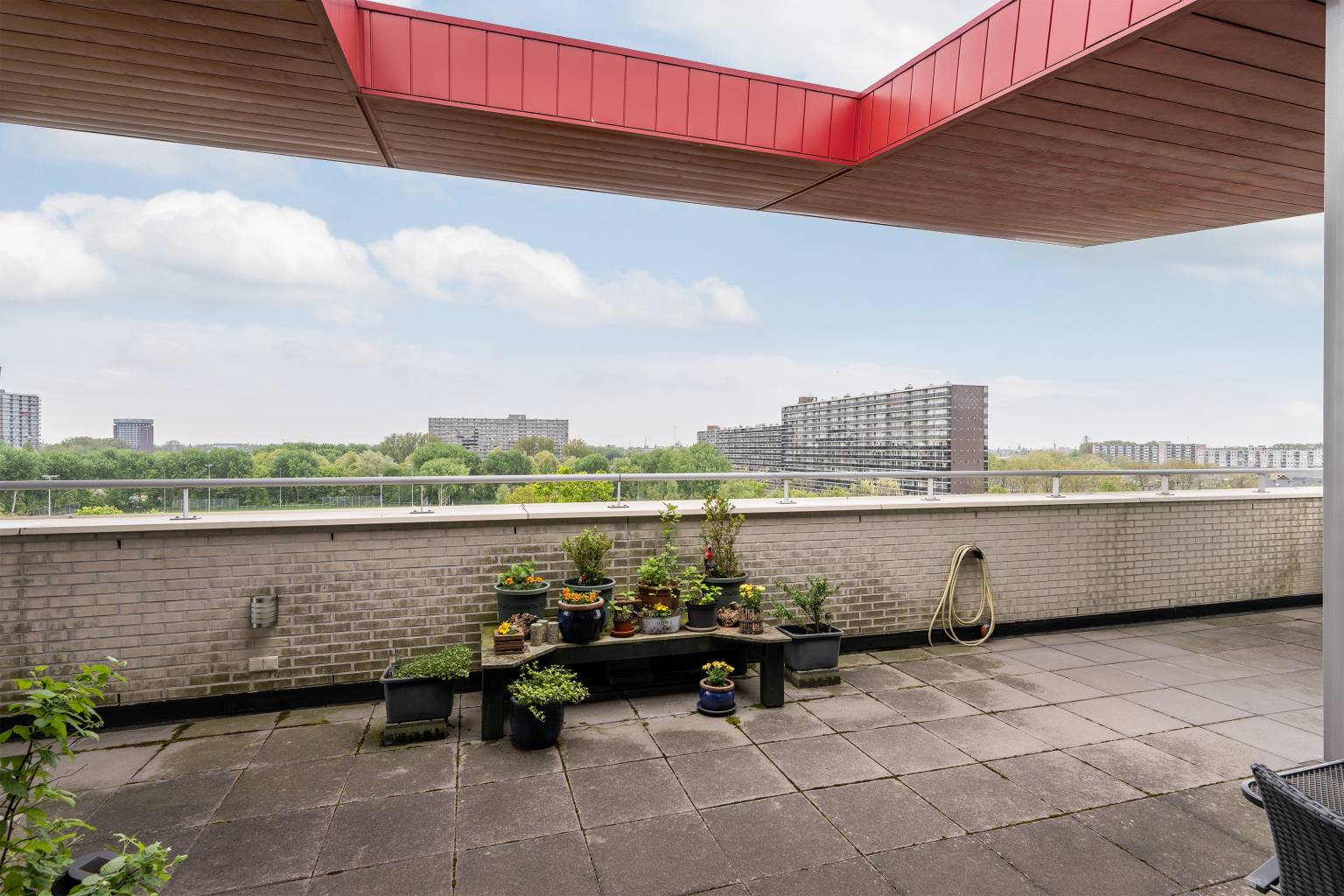 Op een fantastische plek in de geliefde wijk Sportpark Holy, omringd door groen, parken en alle dagelijkse voorzieningen, ligt dit heerlijke Penthouse. Gelegen op de bovenste verdieping van een goed onderhouden appartementencomplex biedt dit appartement niet alleen een prachtig vrij uitzicht, maar ook een groot terras rondom waar u op elk moment van de dag van de zon kunt genieten. In de directe omgeving bevindt zich winkelcentrum De Loper voor uw dagelijkse boodschappen, diverse scholen, openbaar vervoer én de uitvalswegen naar Rotterdam en Den Haag zijn binnen enkele minuten bereikbaar. Vanuit het complex loopt u direct het park in. Dit royale en lichte appartement beschikt over drie ruime slaapkamers, een moderne badkamer en een sfeervolle woonkamer met grote ramen en een schuifpui naar het terras. De parketvloer in de entree en woonkamer zorgt voor een warme uitstraling, terwijl de open keuken, compleet met alle wenselijke inbouwapparatuur, uitnodigt tot gezellige etentjes. Praktisch gemak vindt u ook terug in de inpandige berging met de wasmachineaansluiting, de eigen parkeerplaats in de afgesloten parkeergarage, de berging in de kelder en de aanwezigheid van een lift. Dankzij de kunststof kozijnen met dubbel glas, de nette afwerking met glasweefselbehang en voorzieningen zoals een Cv-ketel en WTW-systeem, woont u hier comfortabel en energiezuinig. Een instapklaar en compleet appartement op een toplocatie, waar u iedere dag met plezier thuiskomt!