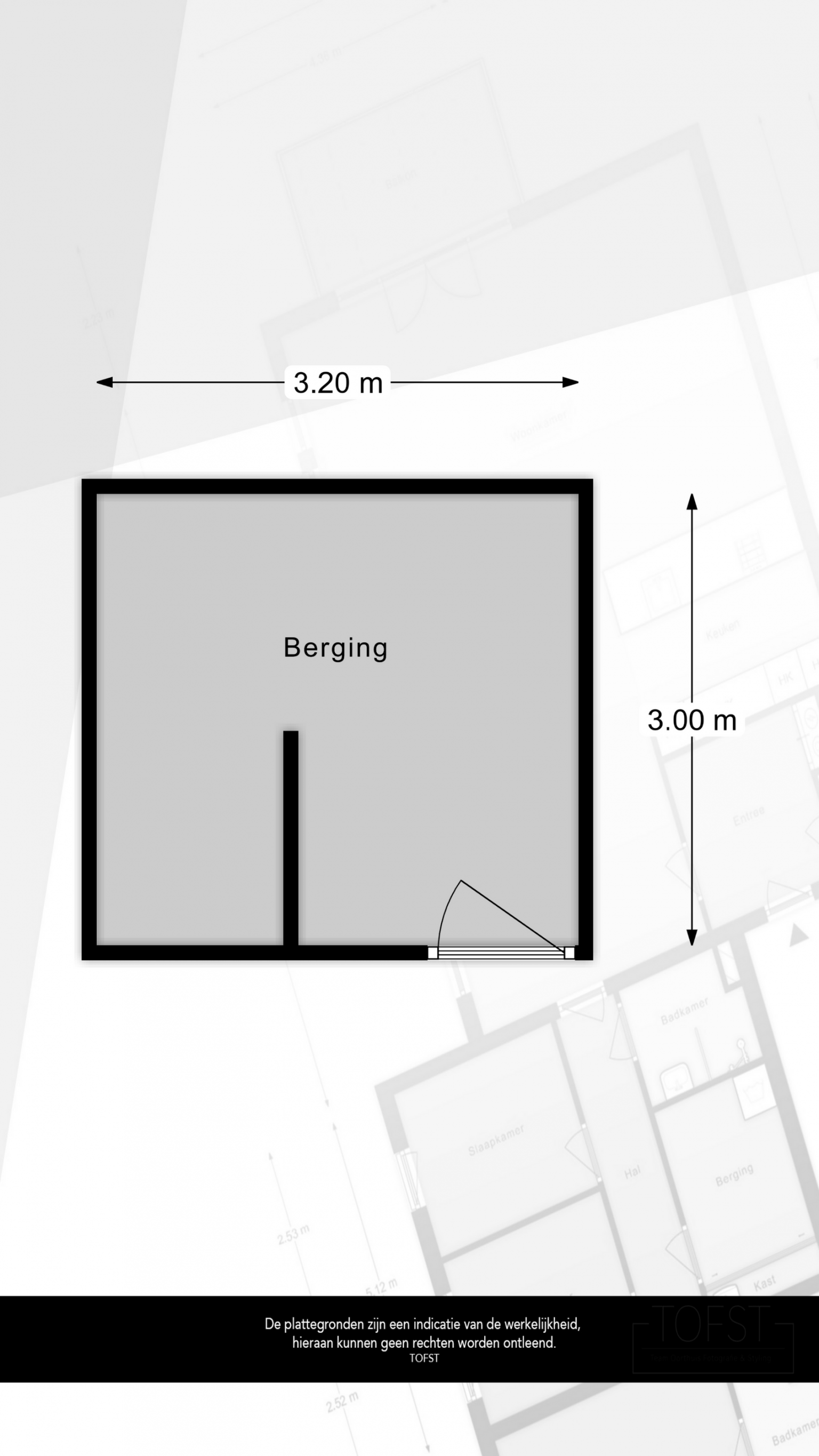 De Meetinstructie is gebaseerd op de NEN2580. De Meetinstructie is bedoeld om een meer eenduidige manier van meten toe te passen voor het geven van een indicatie van de gebruiksoppervlakte. De Meetinstructie sluit verschillen in meetuitkomsten niet volledig uit, door bijvoorbeeld interpretatieverschillen, afrondingen of beperkingen bij het uitvoeren van de meting. Indien de exacte maten voor een koper van cruciaal belang zijn, adviseren wij deze zelf na te meten. De (kandidaat)koper(s) zullen, indien gewenst, daartoe in de gelegenheid gesteld worden op een passend moment teneinde teleurstellingen en schade te voorkomen.
