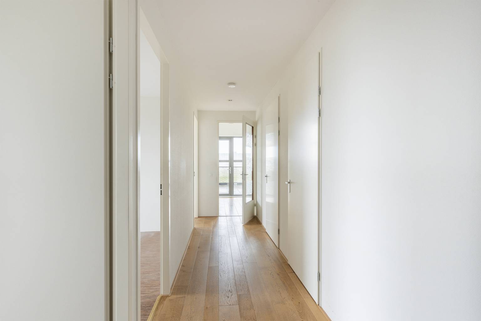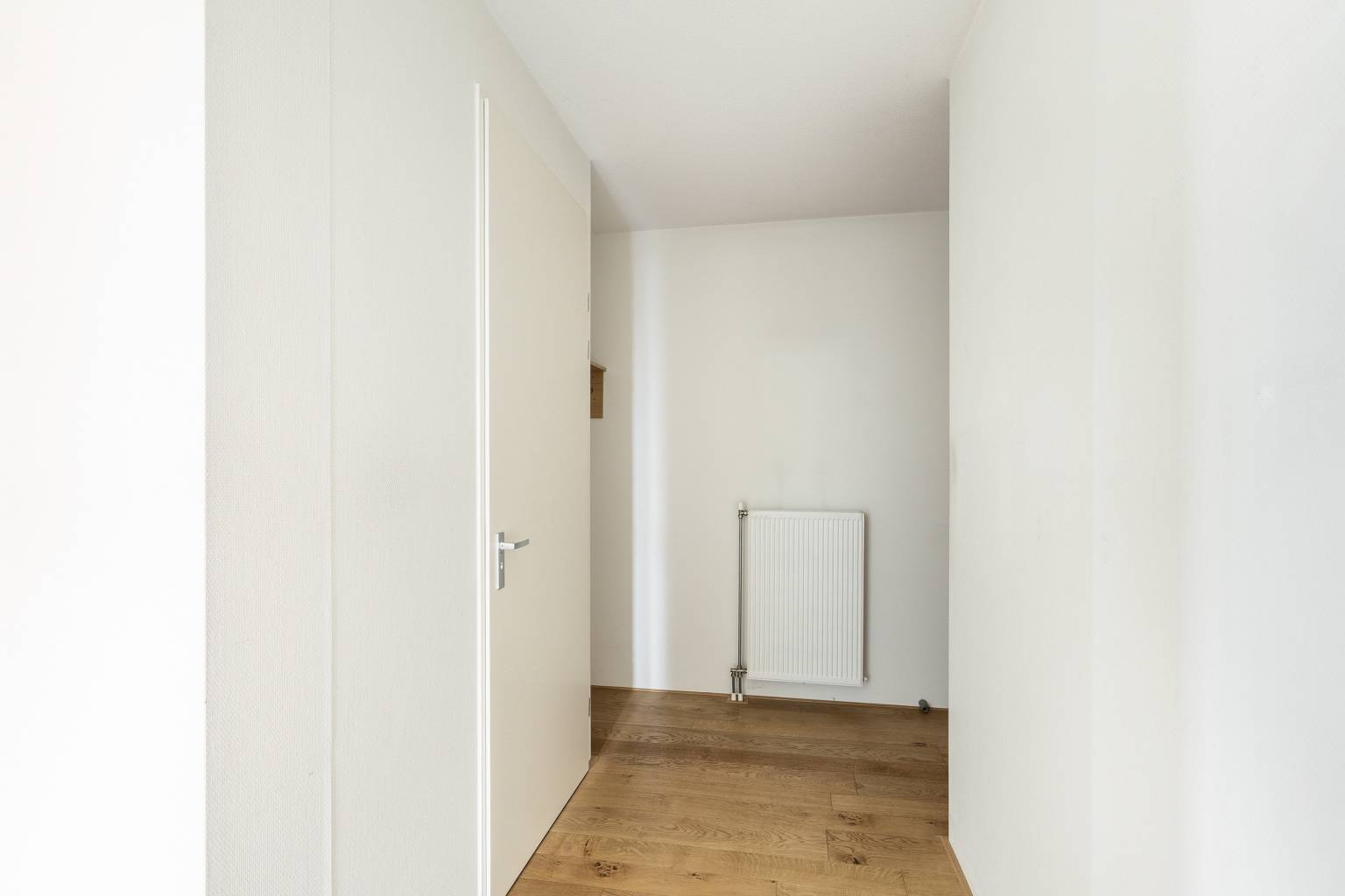 Na de voordeur is er toegang tot de entreehal. Deze is voorzien van een parketvloer die is doorgetrokken naar de woonkamer met open keuken. Vanuit de entreehal is er toegang tot drie slaapkamers, de woonkamer, de badkamer, de inpandige berging en het volledig betegelde toilet met als extra een fonteintje. De inpandige berging is voorzien van een aansluiting voor de wasmachine en hierin bevinden zich de opstelling van de Cv-ketel en de WTW.