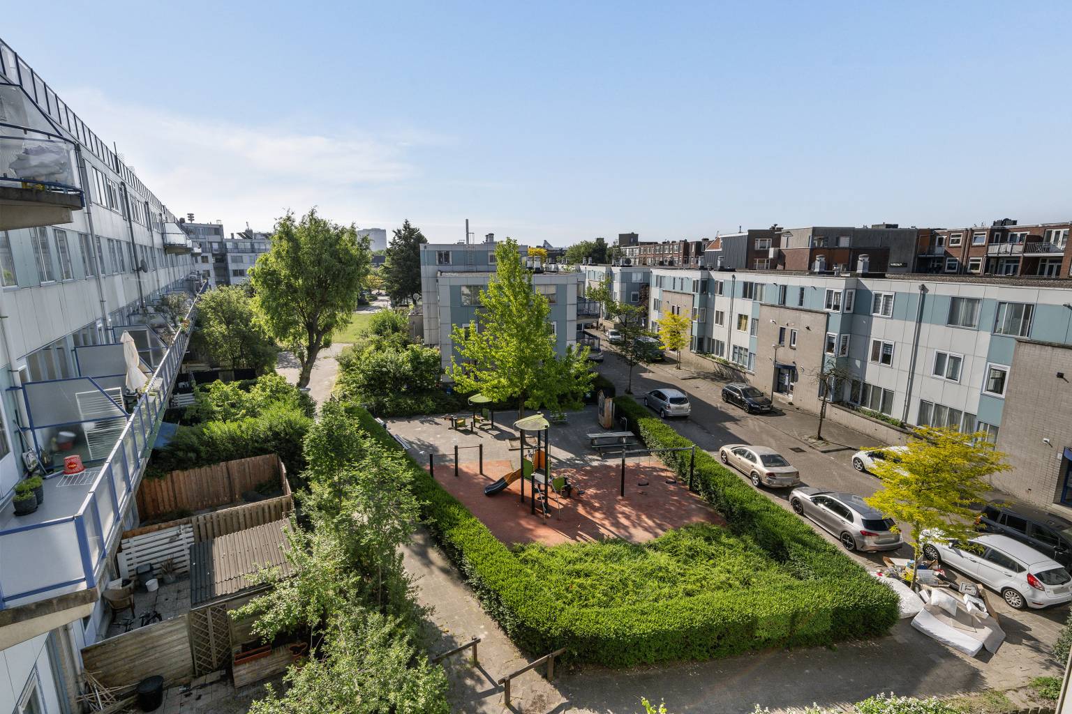 - Balkon met rustig uitzicht over de speeltuin