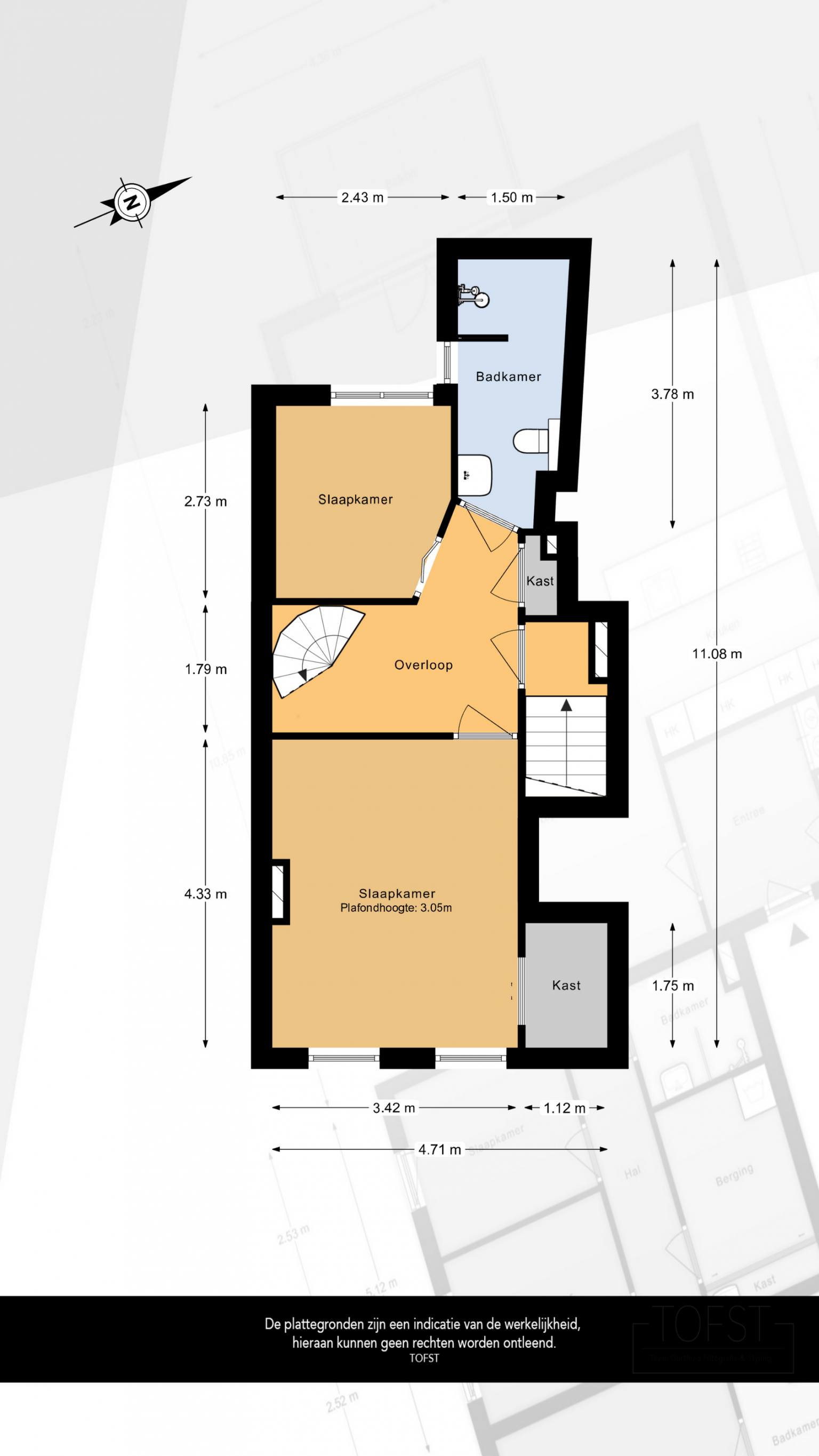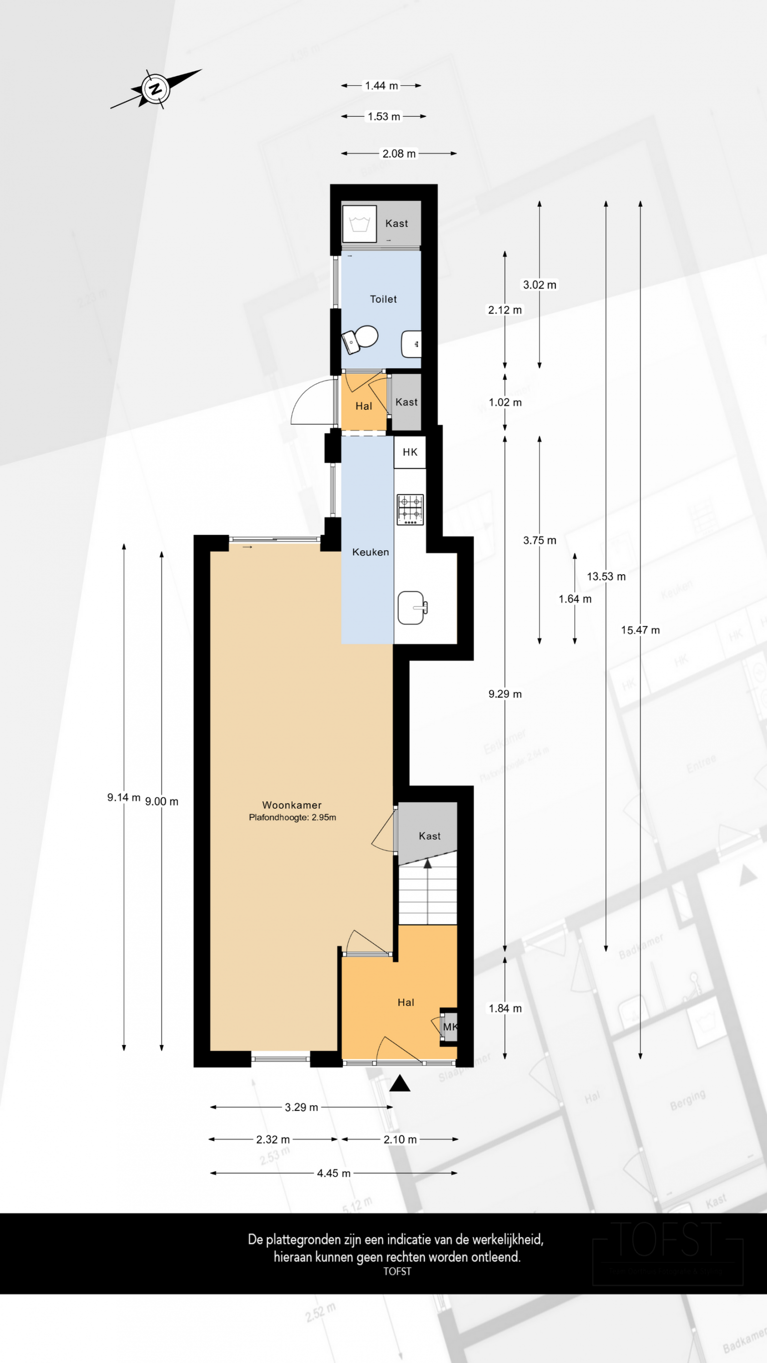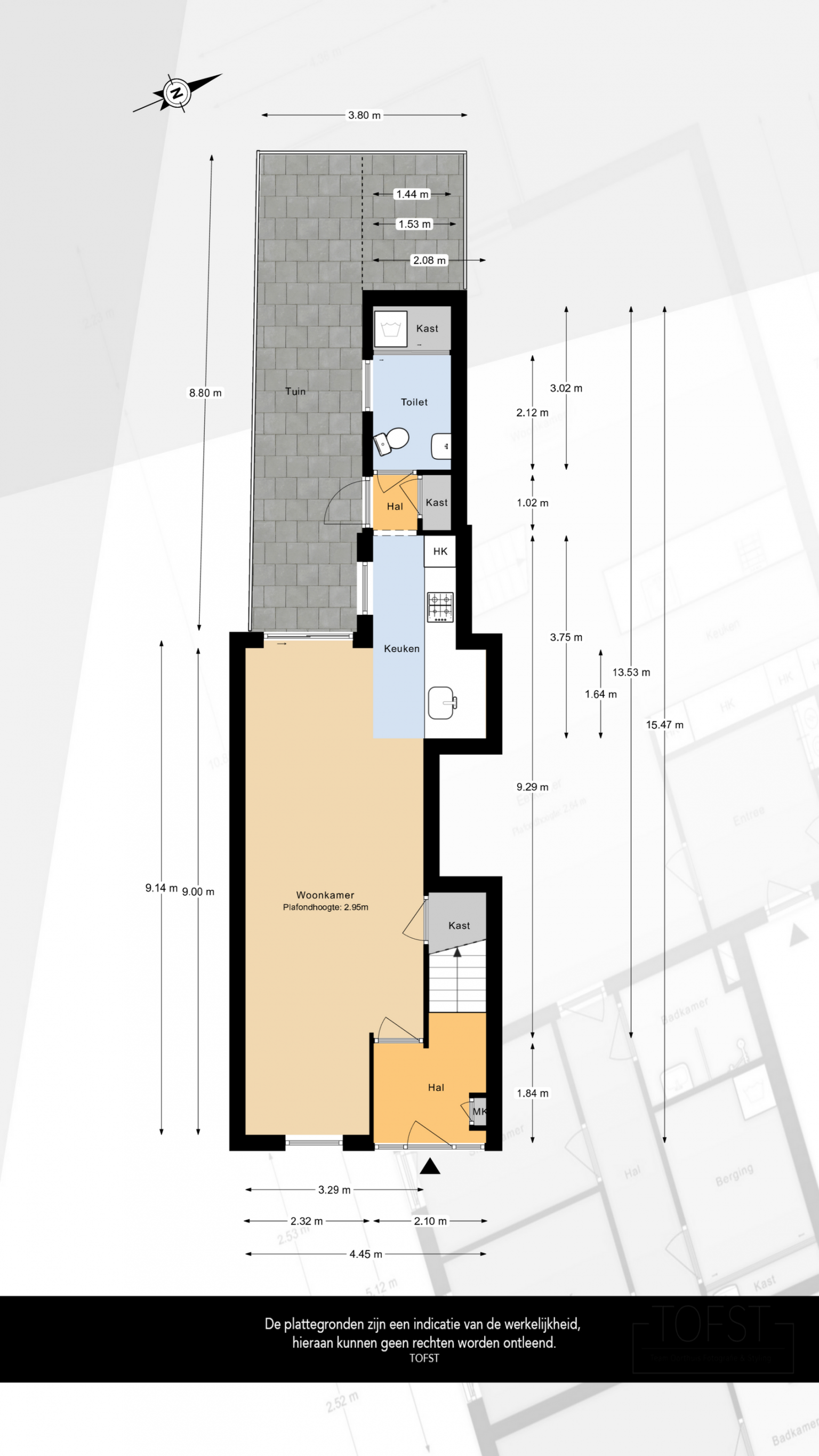 De Meetinstructie is gebaseerd op de NEN2580. De Meetinstructie is bedoeld om een meer eenduidige manier van meten toe te passen voor het geven van een indicatie van de gebruiksoppervlakte. De Meetinstructie sluit verschillen in meetuitkomsten niet volledig uit, door bijvoorbeeld interpretatieverschillen, afrondingen of beperkingen bij het uitvoeren van de meting. Indien de exacte maten voor een koper van cruciaal belang zijn, adviseren wij deze zelf na te meten. De (kandidaat)koper(s) zullen, indien gewenst, daartoe in de gelegenheid gesteld worden op een passend moment teneinde teleurstellingen en schade te voorkomen.