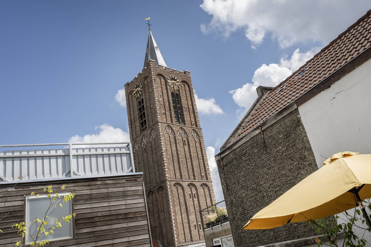 Het achtergelegen terras is een zonnige plek dat is voorzien van houten vlondertegels, stopcontacten en een waterkraantje. Hier is het heerlijk vertoeven met veel privacy en prachtig uitzicht op de de Grote- of Sint Janskerk.