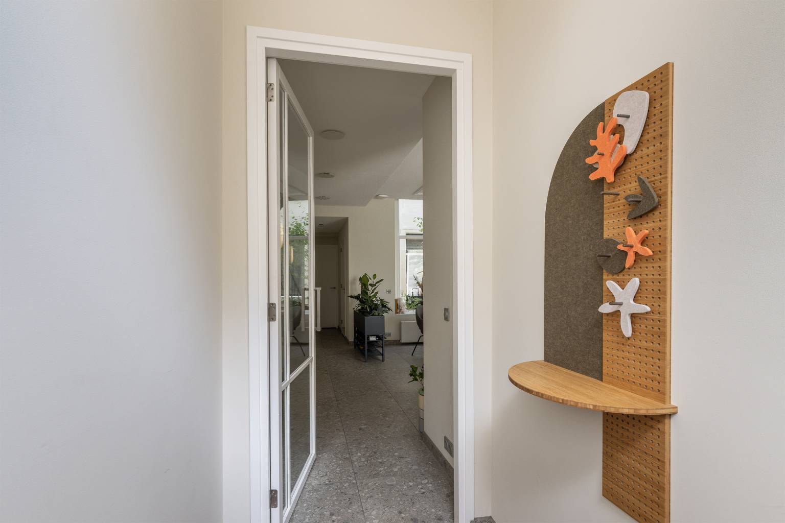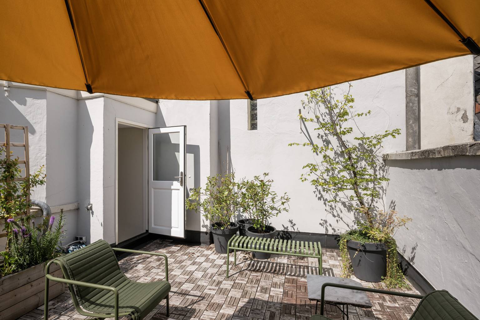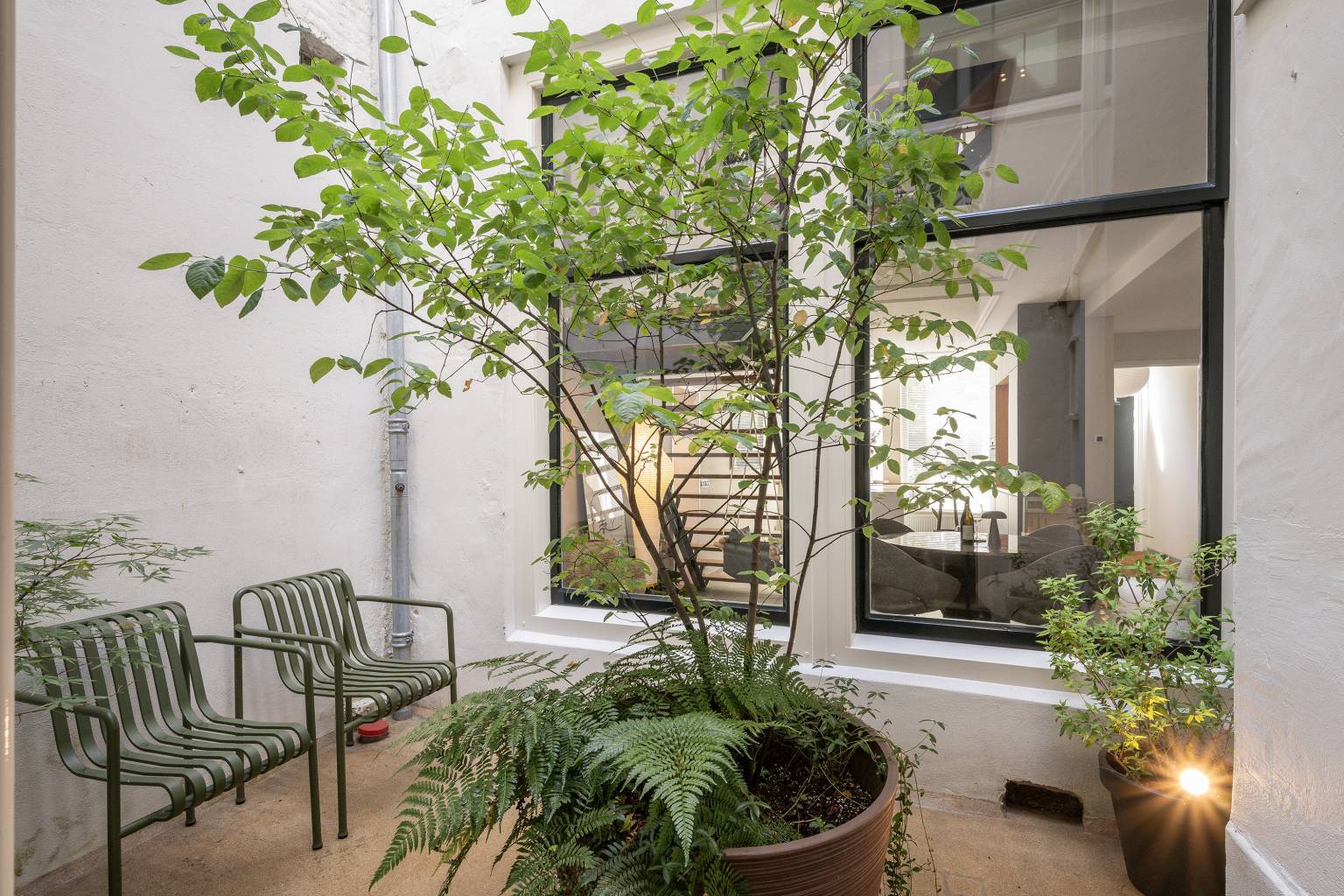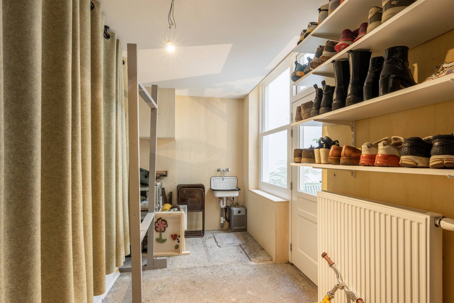Aangrenzend zijn het toilet en een multifunctionele berging bereikbaar, met stortbak, warm water en radiator. Deze ruimte is fijn als opslag, maar ook uitstekend te gebruiken als atelier of werkkamer. Hier stap je de binnenplaats in, waar je beschut van de buitenlucht geniet.