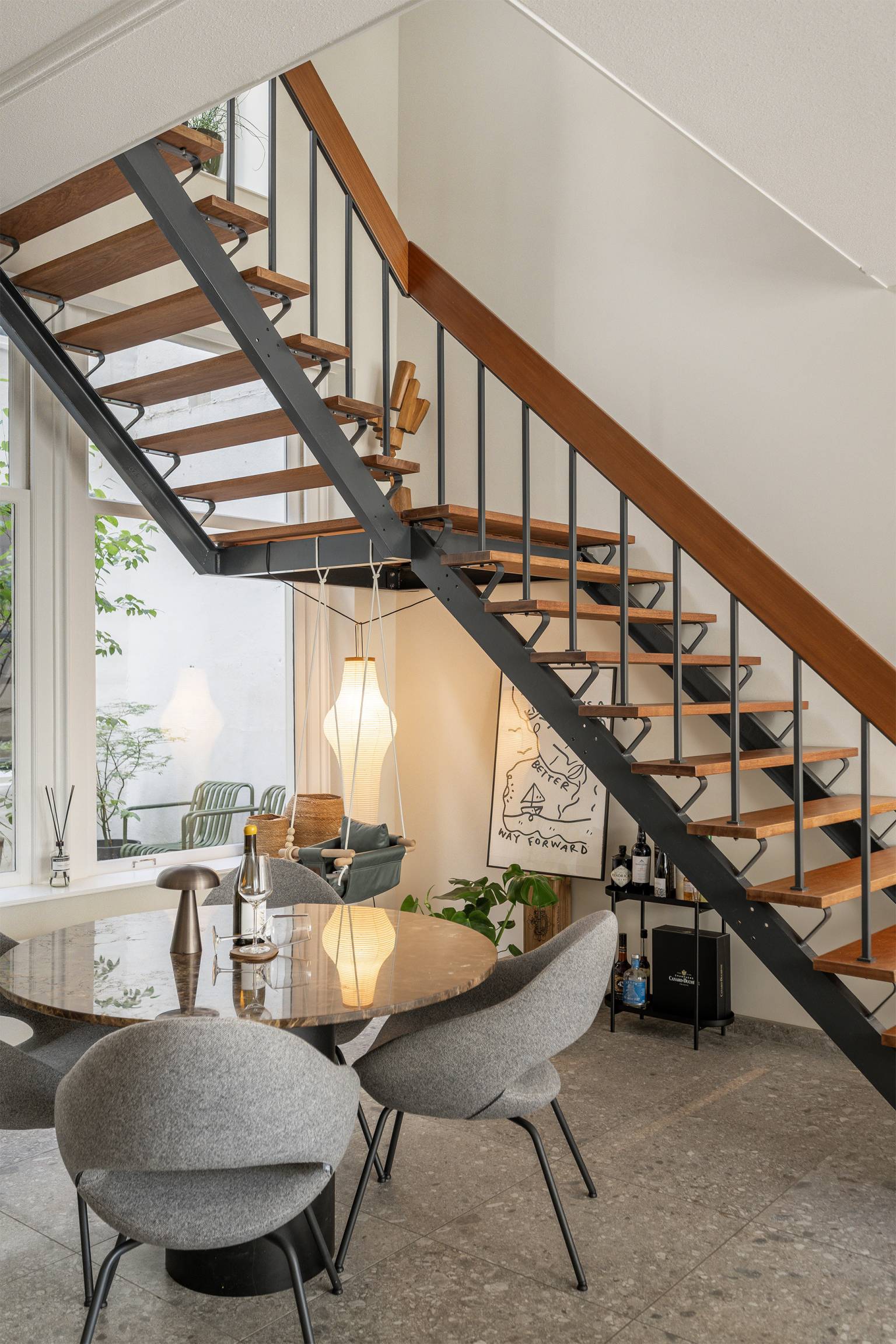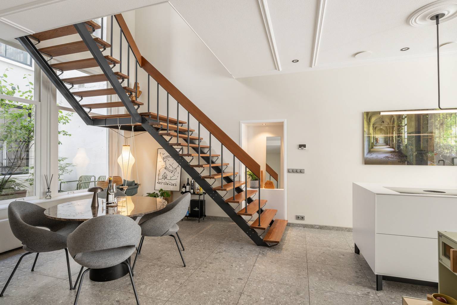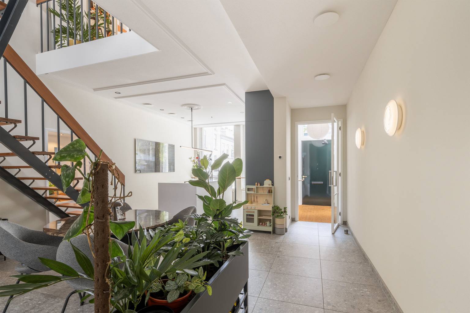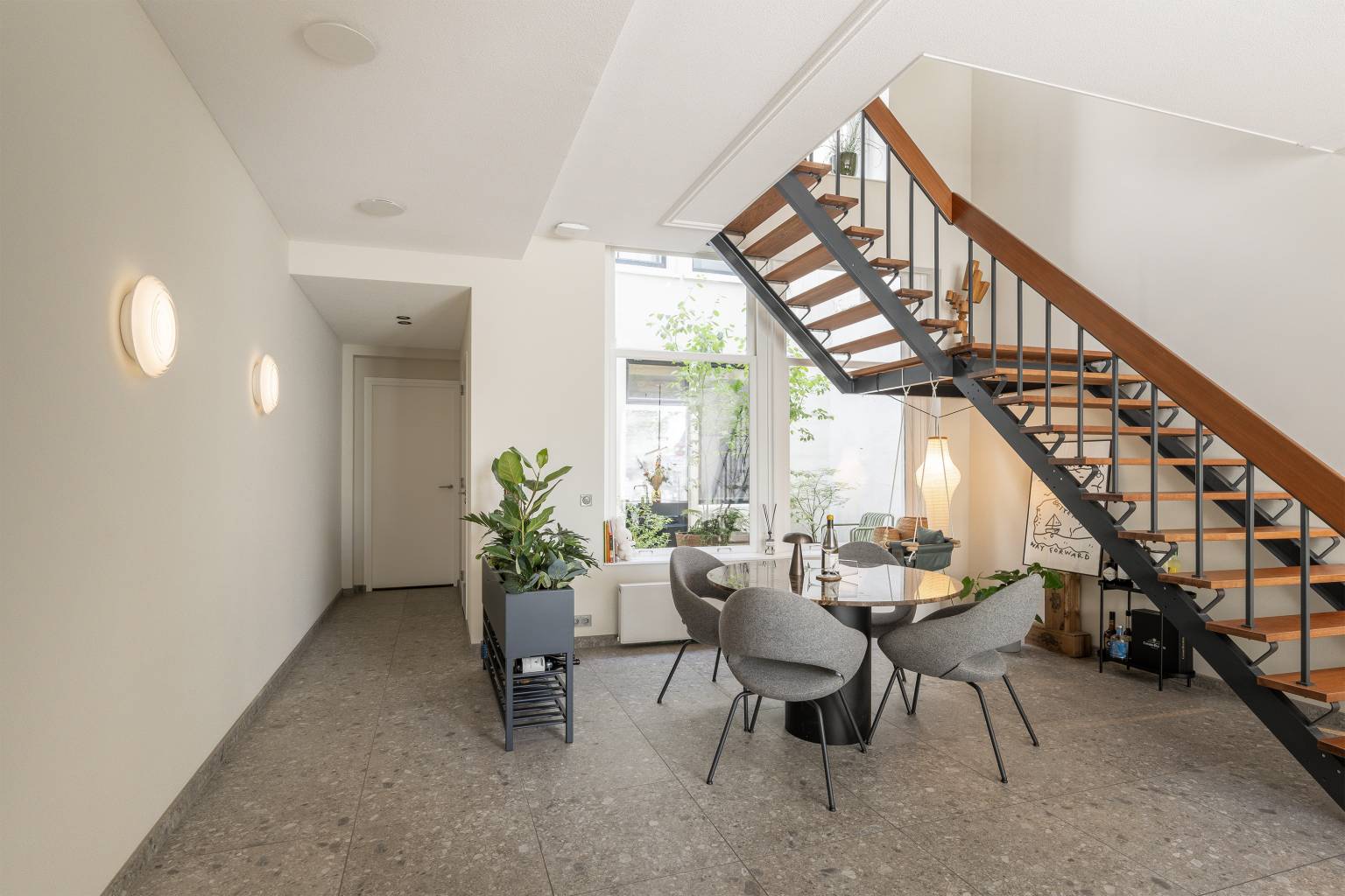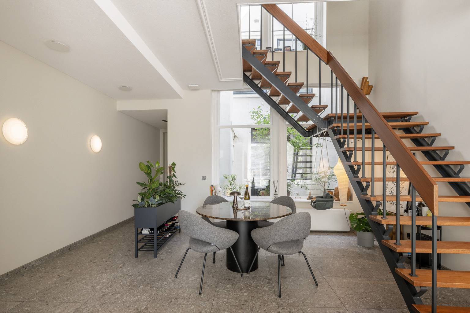 Via een lichte hal kom je in de woonkeuken; een plek die ruimtelijk voelt door het hoge plafond, de vide en open mahoniehouten trap. Een plek om heerlijk te eten met vrienden en familie. De luxe NEXT125 keuken bestaat uit een kookeiland, een hoge kastenwand met geïntegreerde koffiecorner en mooie bamboehouten bar met zicht op de Hoogstraat. De keuken is voorzien van een inductiekookplaat met een geïntegreerde afzuiging (Bora), een Quooker kraan, een koelkast, een vriezer, een combi stoomoven en vaatwasser (Siemens Studioline).