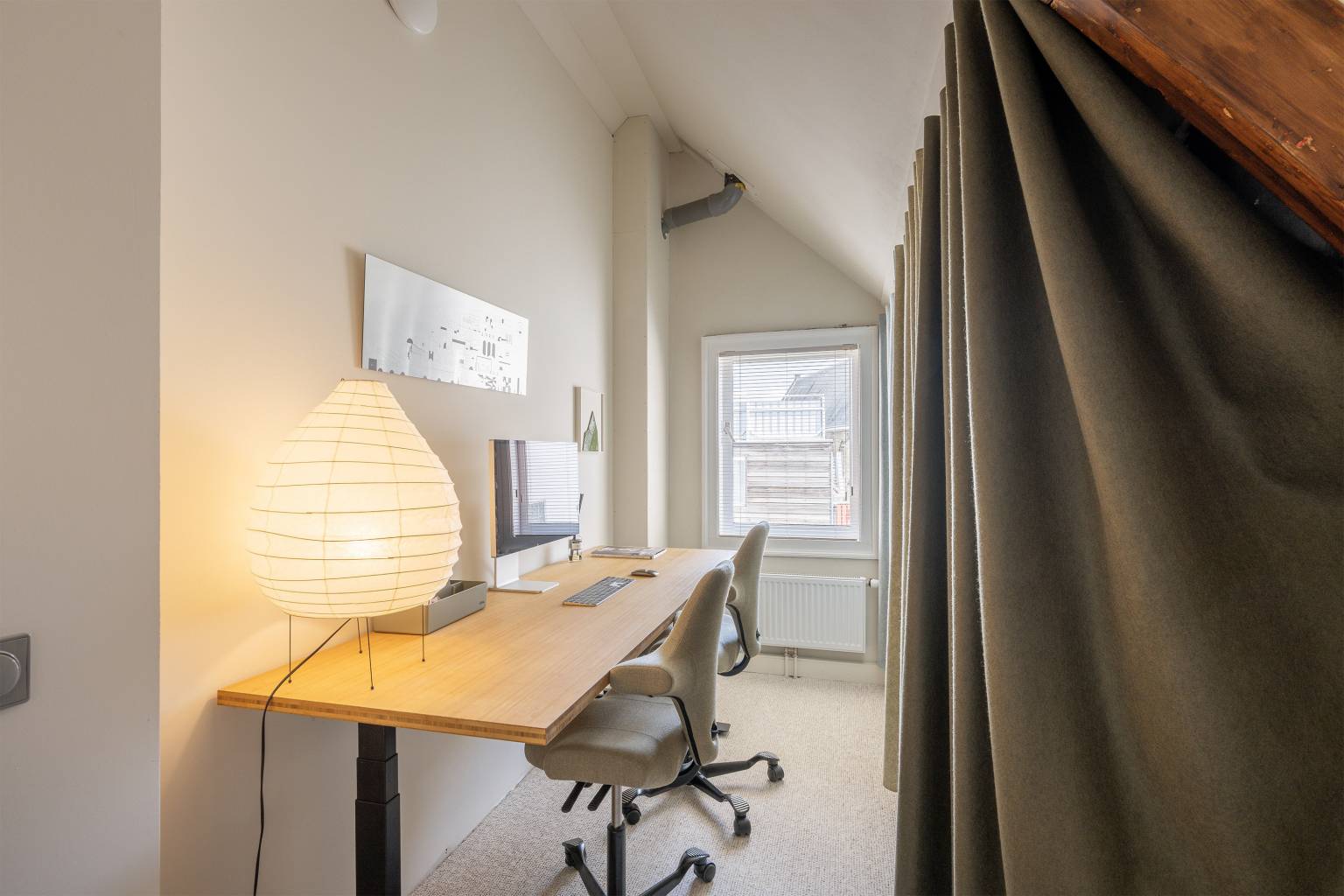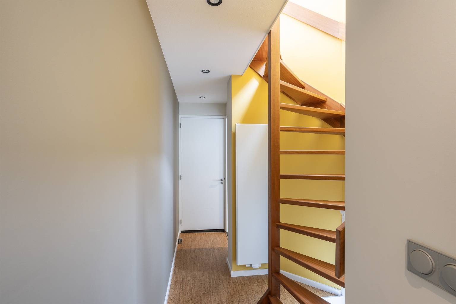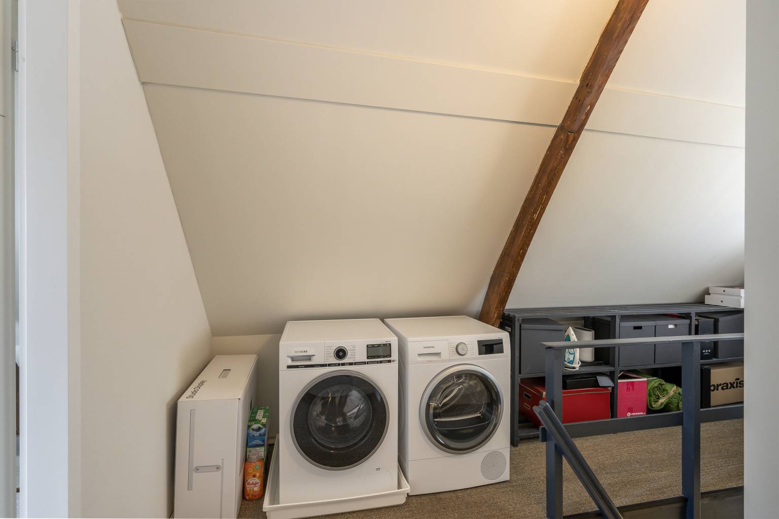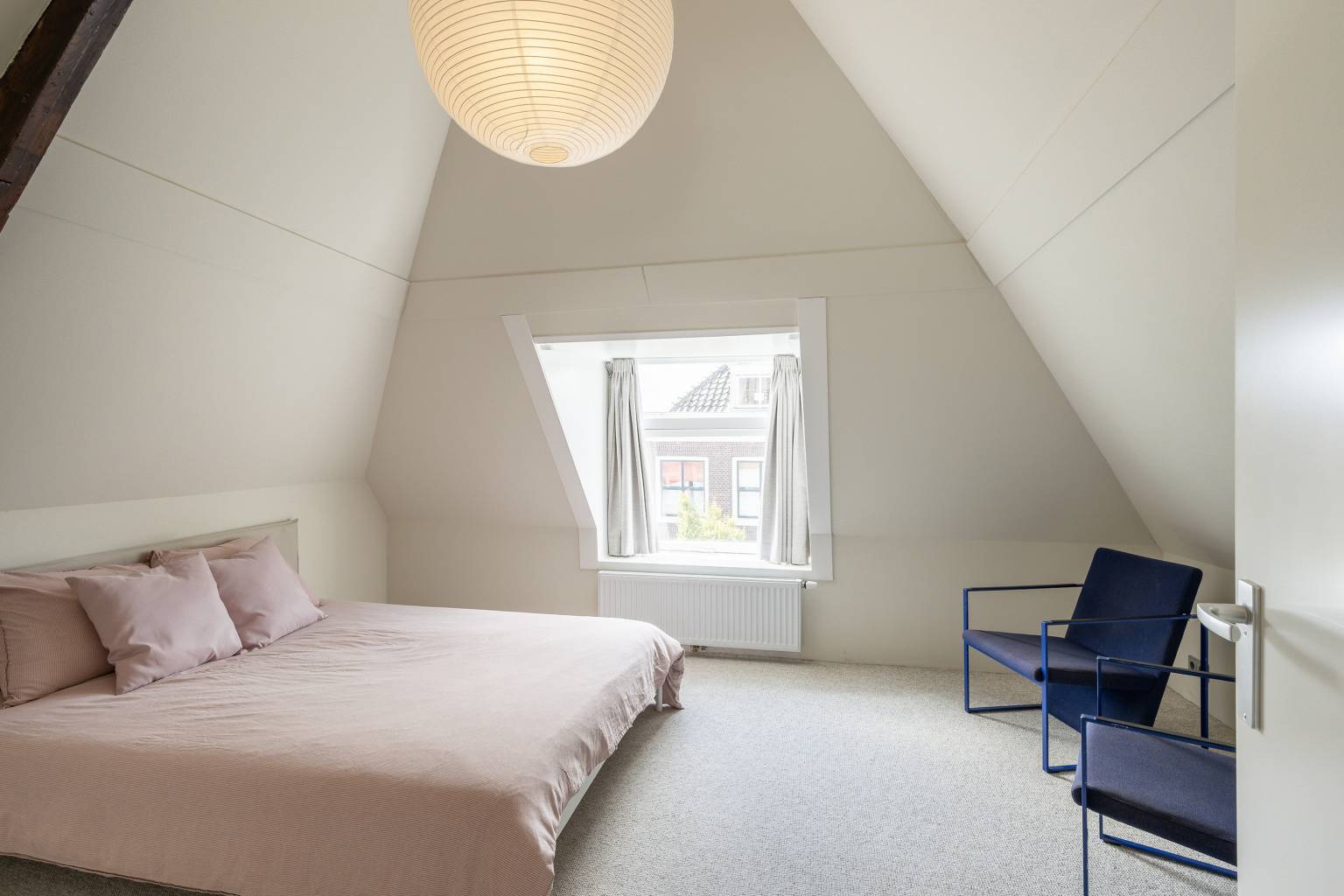 Deze verdieping onder de (recent geïsoleerde) kap heeft twee slaapkamers en een wasruimte met cv-opstelling. De originele balken zijn zichtbaar gebleven, en de kamers zijn flexibel te gebruiken als logeerkamer, werkruimte of speelkamer. Ook hier is plek voor een compacte 2e badkamer.