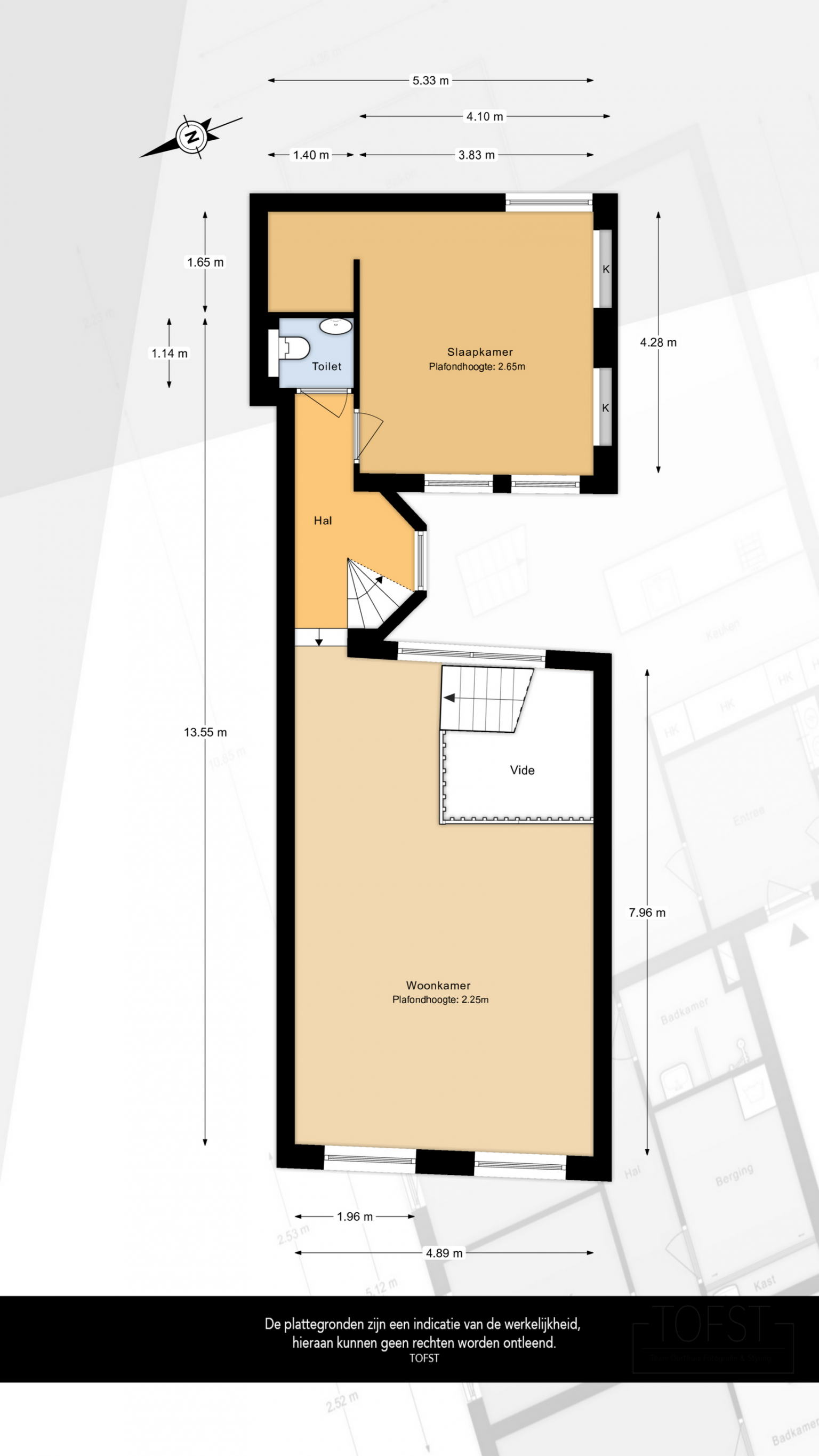 De Meetinstructie is gebaseerd op de NEN2580. De Meetinstructie is bedoeld om een meer eenduidige manier van meten toe te passen voor het geven van een indicatie van de gebruiksoppervlakte. De Meetinstructie sluit verschillen in meetuitkomsten niet volledig uit, door bijvoorbeeld interpretatieverschillen, afrondingen of beperkingen bij het uitvoeren van de meting. Indien de exacte maten voor een koper van cruciaal belang zijn, adviseren wij deze zelf na te meten. De (kandidaat)koper(s) zullen, indien gewenst, daartoe in de gelegenheid gesteld worden op een passend moment teneinde teleurstellingen en schade te voorkomen.