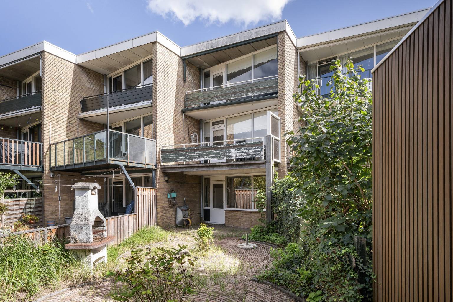 De diepe achtertuin is fraai bestraat met waaltjes en daarlangs voorzien van beplanting. De houten schuttingen zorgen voor een afscheiding naar de buren en achterin de tuin staat een groene haag. Het gedeelte bij de tuin is deels overdekt door het bovengelegen terras en er hangt een buitenlamp.