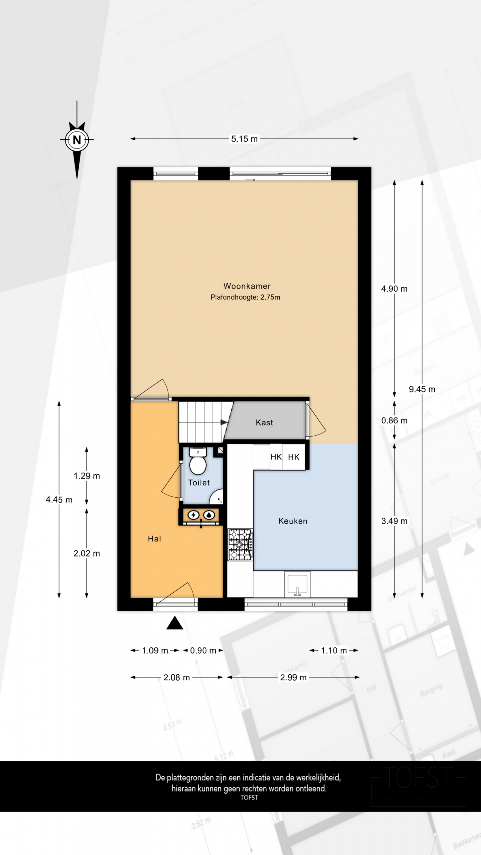 De Meetinstructie is gebaseerd op de NEN2580. De Meetinstructie is bedoeld om een meer eenduidige manier van meten toe te passen voor het geven van een indicatie van de gebruiksoppervlakte. De Meetinstructie sluit verschillen in meetuitkomsten niet volledig uit, door bijvoorbeeld interpretatieverschillen, afrondingen of beperkingen bij het uitvoeren van de meting. Indien de exacte maten voor een koper van cruciaal belang zijn, adviseren wij deze zelf na te meten. De (kandidaat)koper(s) zullen, indien gewenst, daartoe in de gelegenheid gesteld worden op een passend moment teneinde teleurstellingen en schade te voorkomen.