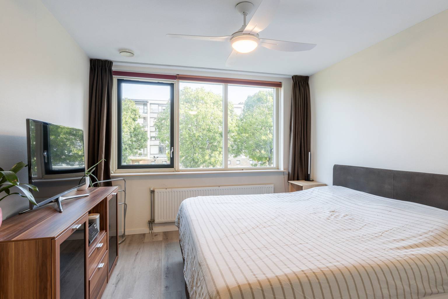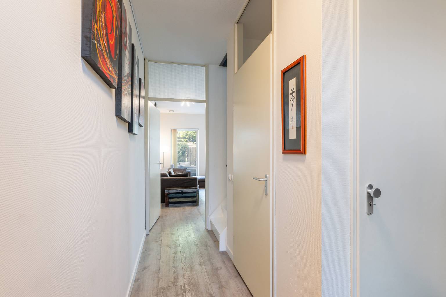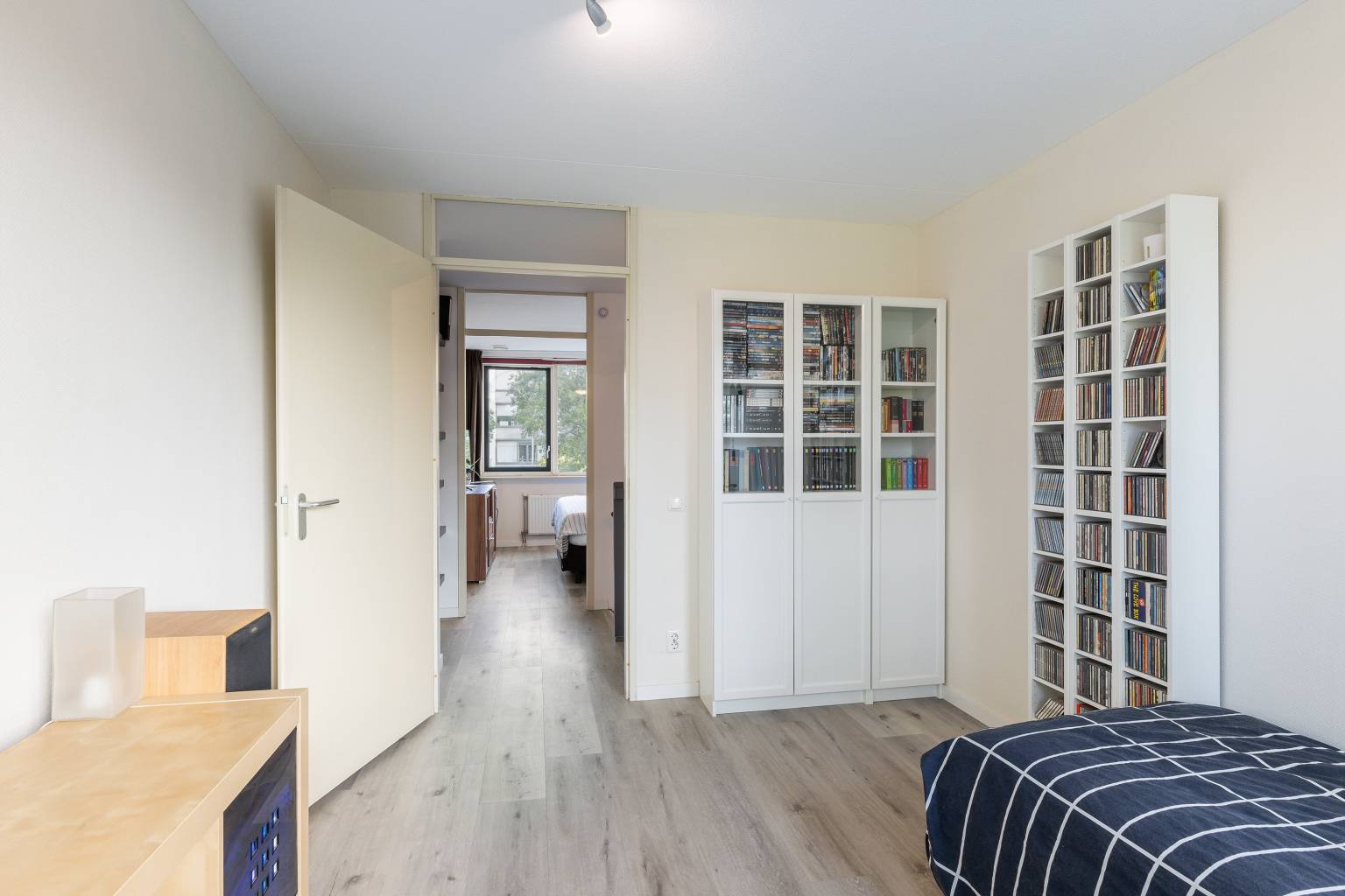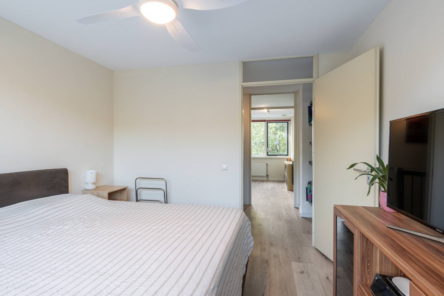 Beide slaapkamers zijn voorzien van overschilderd glasweefsel behang en zijn verdeeld gelegen aan de voor- en achterzijde. De slaapkamer aan de achterzijde is eventueel naar wens op te delen in twee kamers, aangezien deze kamer over twee toegangsdeuren beschikt.