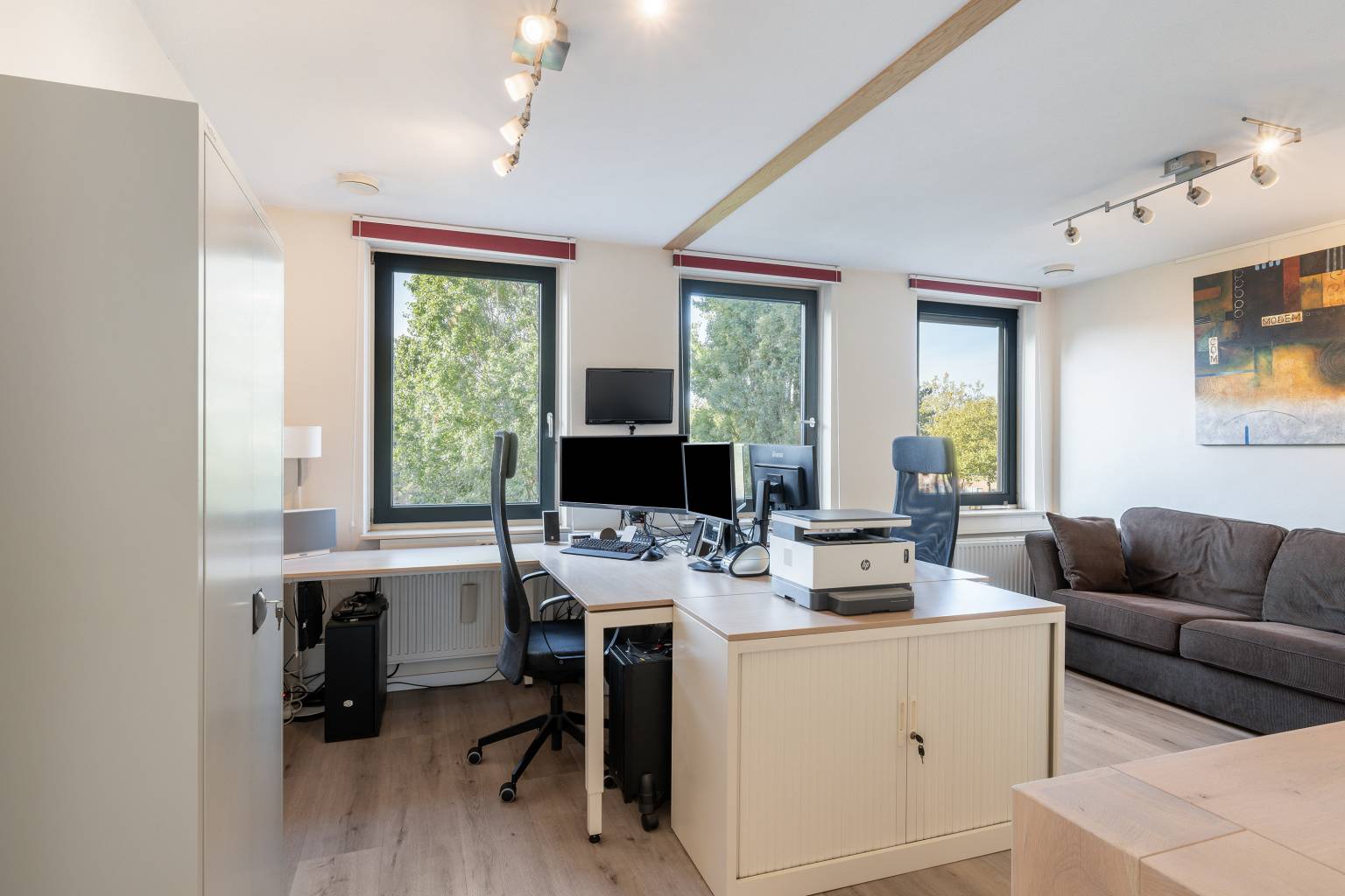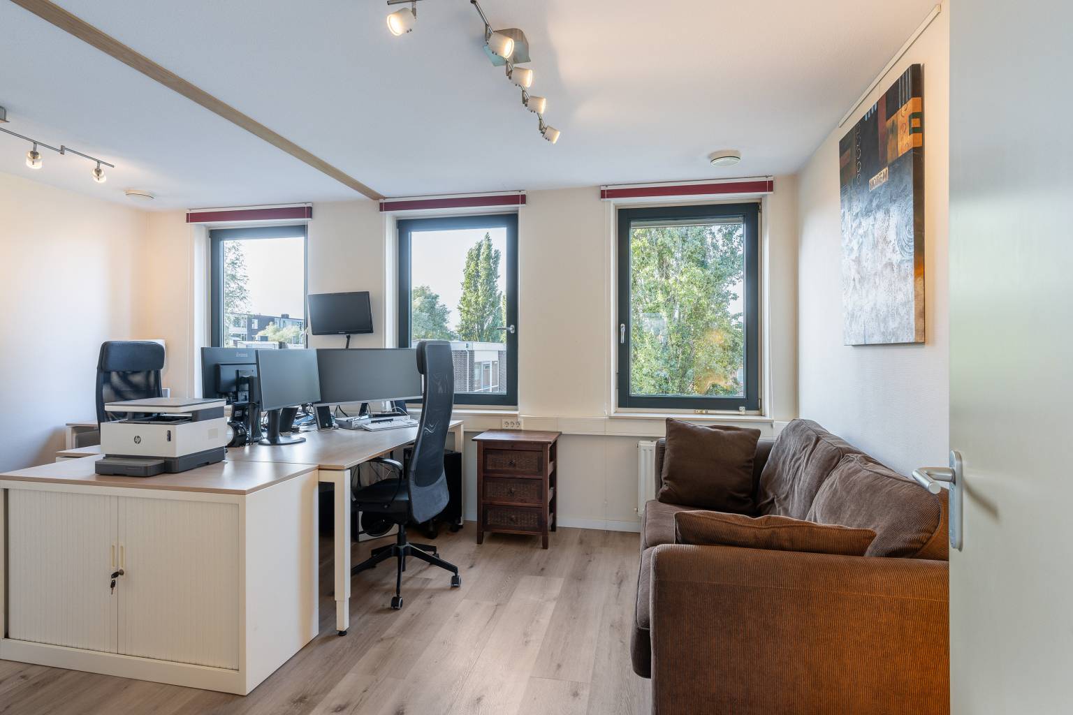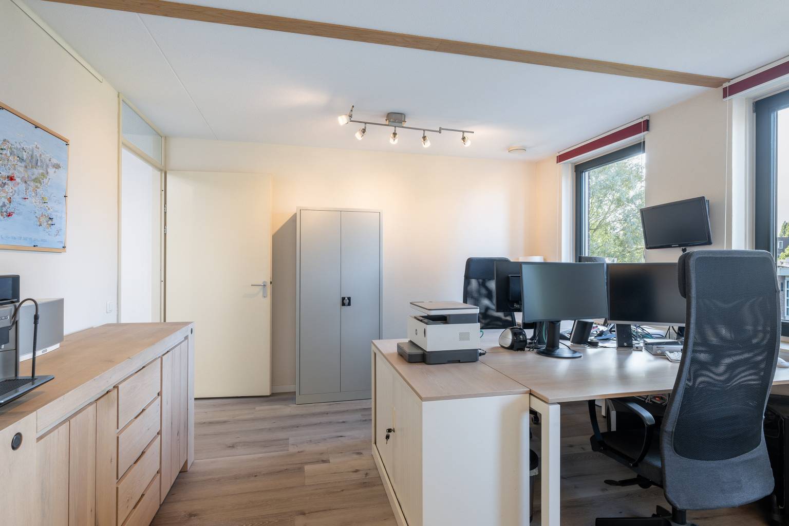 - Elektrisch bedienbaar uitvalscherm op de begane grond en de eerste verdieping