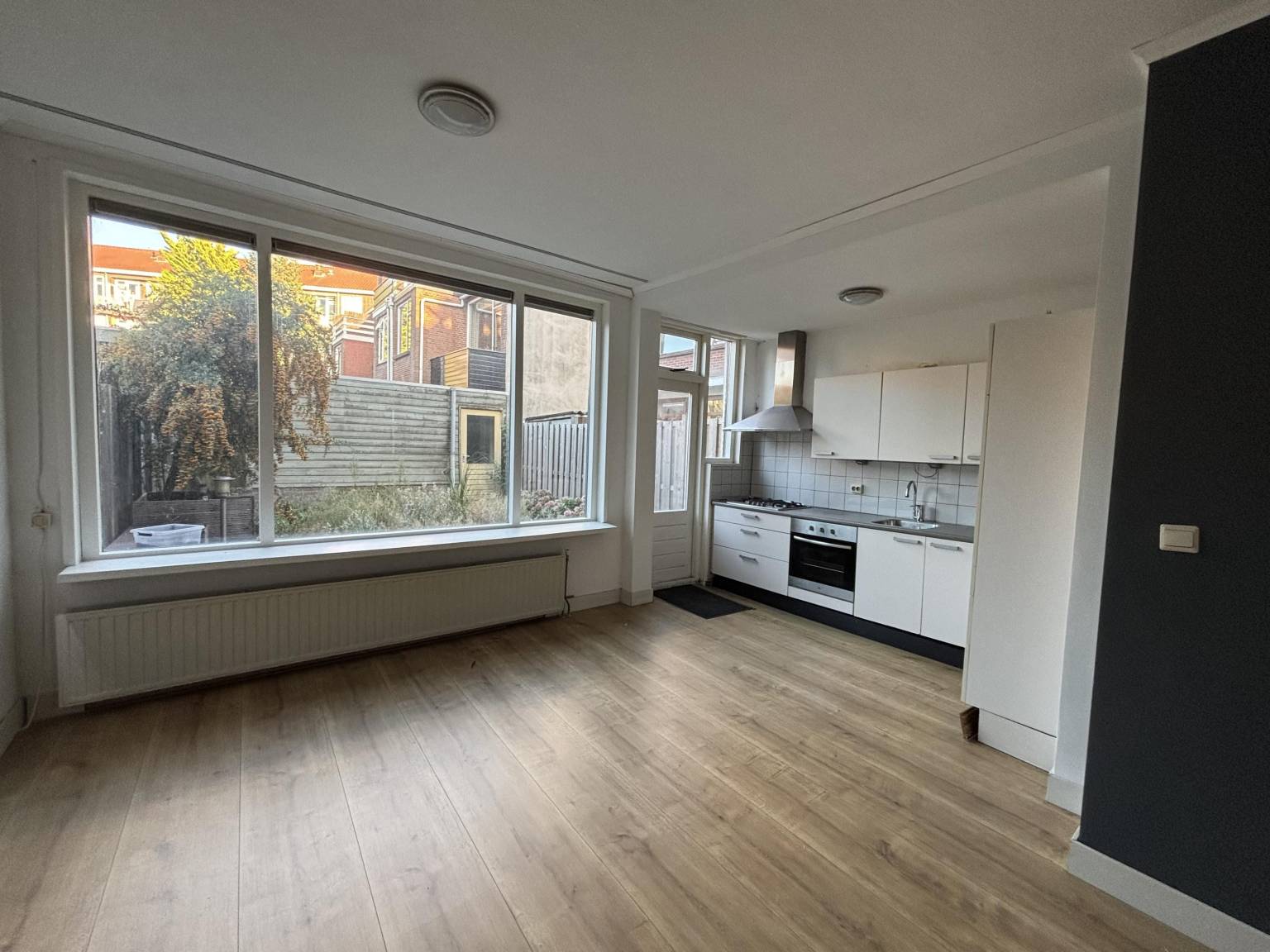 - de sfeervolle woonkamer met open keuken en deur naar de zonnige achtertuin & berging
