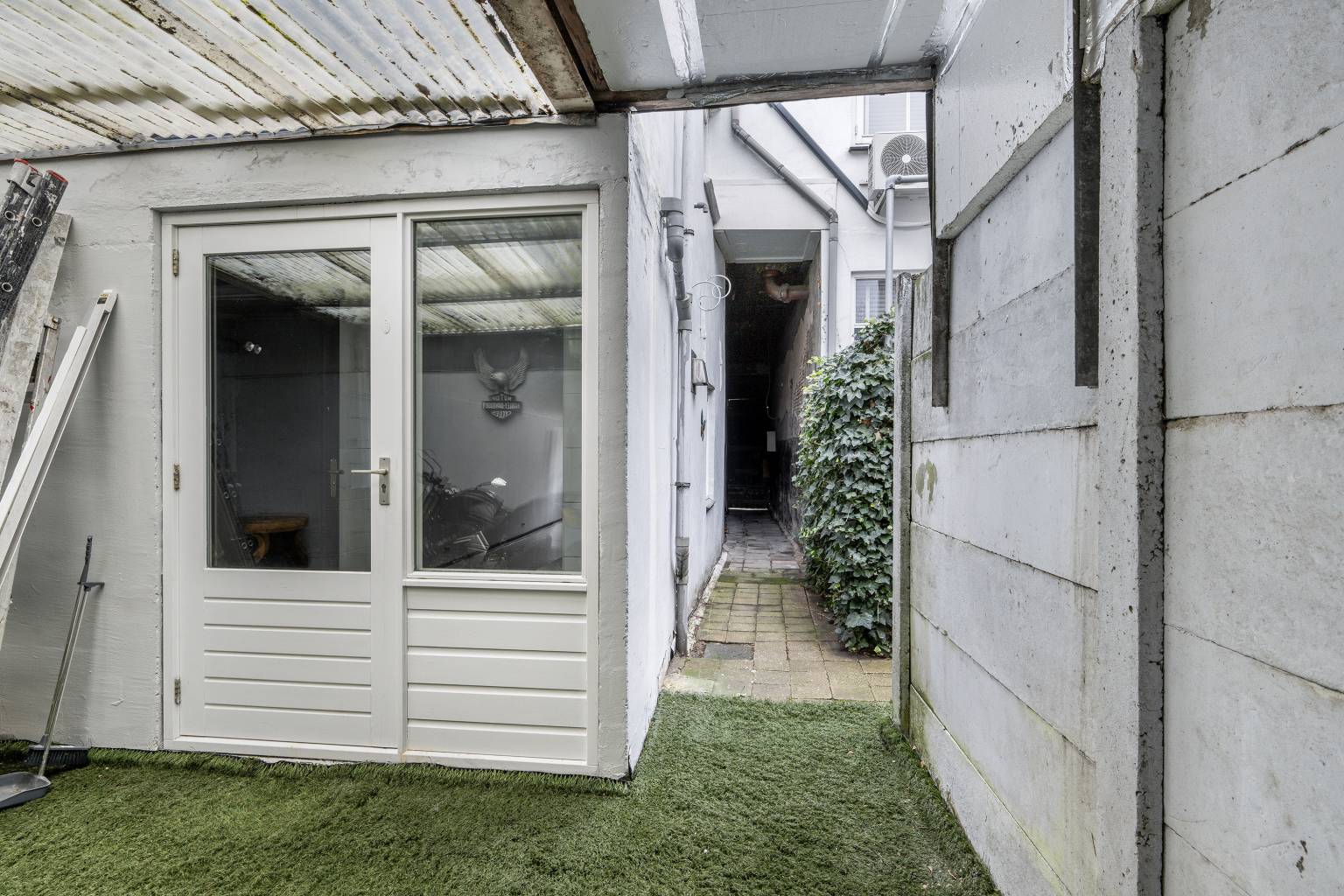 De overkapping heeft een open toegang vanaf het achterpad en biedt ruimte voor opslag en geeft toegang tot de grote berging. Deze biedt voldoende opbergmogelijkheden en is prima te gebruiken als werkplaats of hobbyruimte. De berging is voorzien van elektra, verlichting en beschikt over een aansluiting voor de wasmachine en de droger.