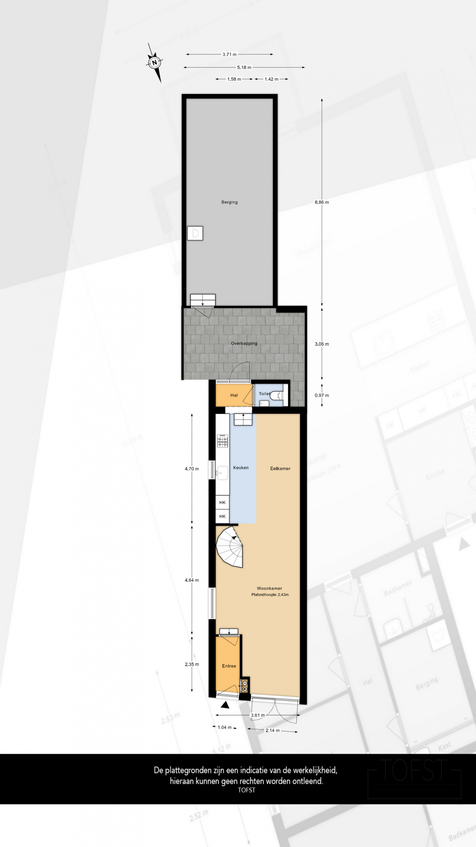 De Meetinstructie is gebaseerd op de NEN2580. De Meetinstructie is bedoeld om een meer eenduidige manier van meten toe te passen voor het geven van een indicatie van de gebruiksoppervlakte. De Meetinstructie sluit verschillen in meetuitkomsten niet volledig uit, door bijvoorbeeld interpretatieverschillen, afrondingen of beperkingen bij het uitvoeren van de meting. Indien de exacte maten voor een koper van cruciaal belang zijn, adviseren wij deze zelf na te meten. De (kandidaat)koper(s) zullen, indien gewenst, daartoe in de gelegenheid gesteld worden op een passend moment teneinde teleurstellingen en schade te voorkomen.