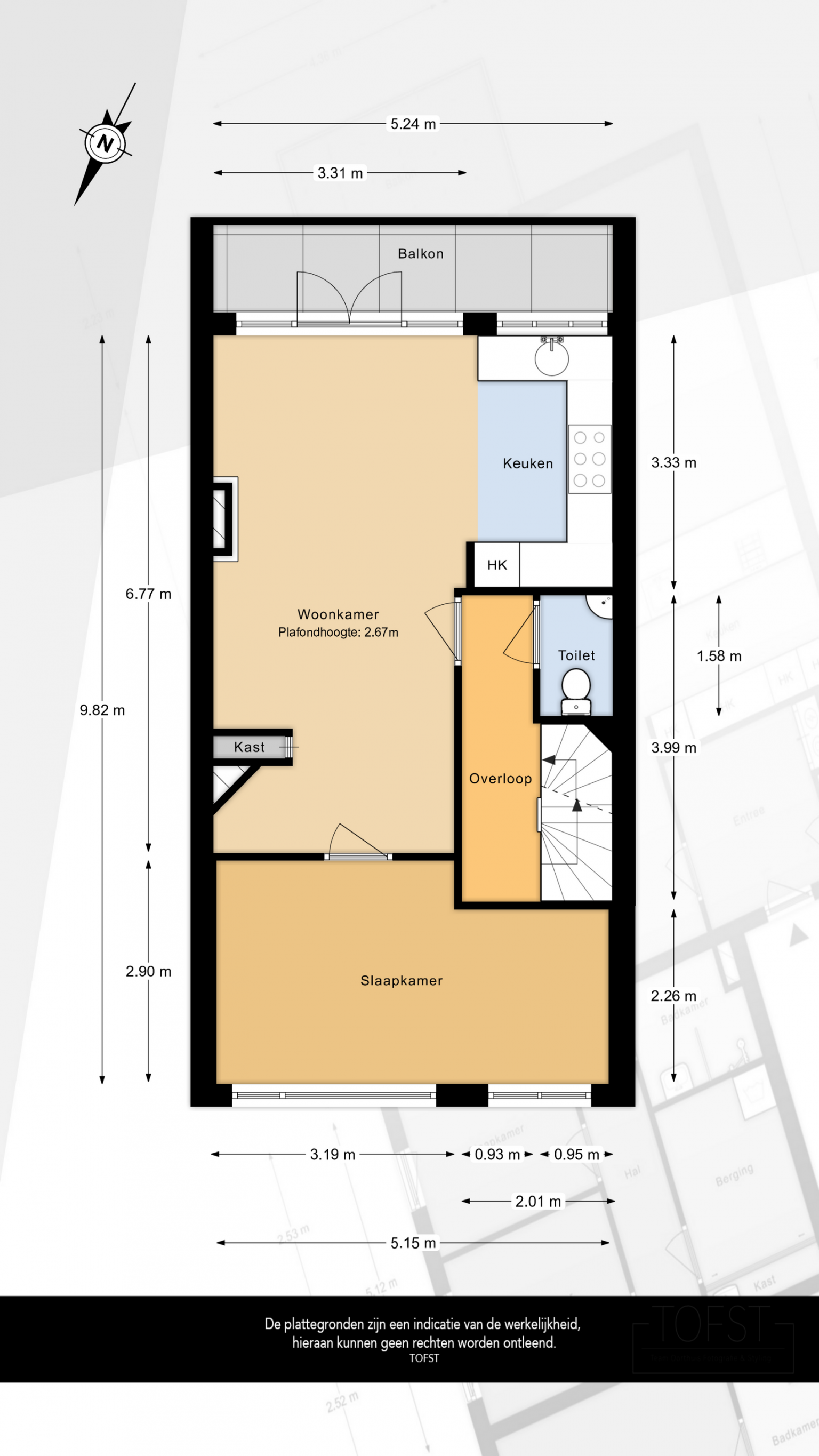 De Meetinstructie is gebaseerd op de NEN2580. De Meetinstructie is bedoeld om een meer eenduidige manier van meten toe te passen voor het geven van een indicatie van de gebruiksoppervlakte. De Meetinstructie sluit verschillen in meetuitkomsten niet volledig uit, door bijvoorbeeld interpretatieverschillen, afrondingen of beperkingen bij het uitvoeren van de meting. Indien de exacte maten voor een koper van cruciaal belang zijn, adviseren wij deze zelf na te meten. De (kandidaat)koper(s) zullen, indien gewenst, daartoe in de gelegenheid gesteld worden op een passend moment teneinde teleurstellingen en schade te voorkomen.