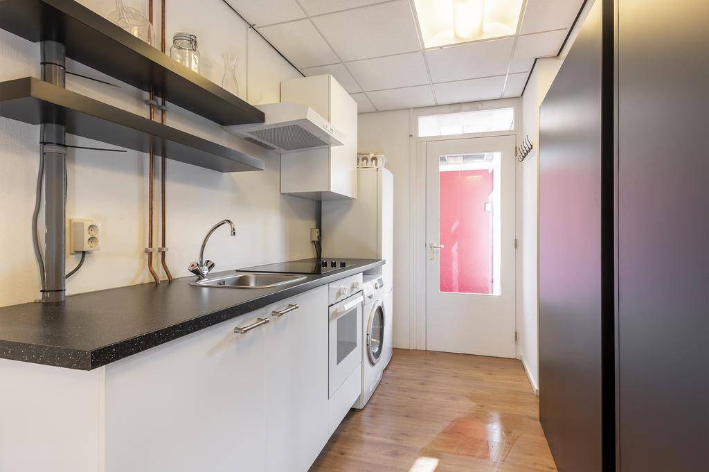 De overloop geeft toegang tot twee woonruimtes met eigen keuken, de badkamer en een vaste kast met daarin de wasmachine-aansluiting. De eerste woonruimte is gelegen aan de achterzijde van de woning en geeft toegang tot het dakterras en de keuken. Deze ruimte is in gebruik als slaapkamer/woonkamer en is voorzien van een laminaatvloer, een grote schuifpui en airconditioning. De keuken heeft een keukenblok met een elektrische kookplaat, een afzuigkap en een deur naar de bijkeuken. De tweede woonruimte is gelegen aan de voorzijde van de woning en is voorzien van een laminaatvloer, veel lichtinval en airconditioning. De keuken is ingericht met een elektrische kookplaat, afzuigkap, een oven en bovenkastjes. De geheel betegelde badkamer is centraal gelegen op deze verdieping en is ingericht met een wastafel, inloopdouche en een tweede toilet.