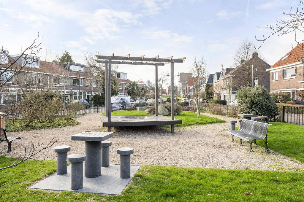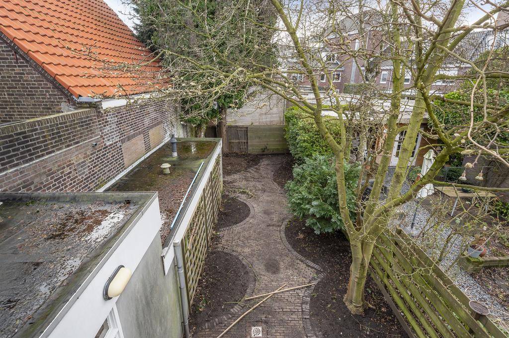 De diepe zonnige achtertuin is gelegen op het zuidoosten en is ingericht met sierbestrating en vaste groenborders. De achtertuin geeft toegang tot de tweede berging. Deze berging biedt voldoende ruimte aan meerdere fietsen en is voorzien van de cv-ketel. Het zonnige dakterras op de eerste verdieping is tevens gelegen op het zuidoosten.