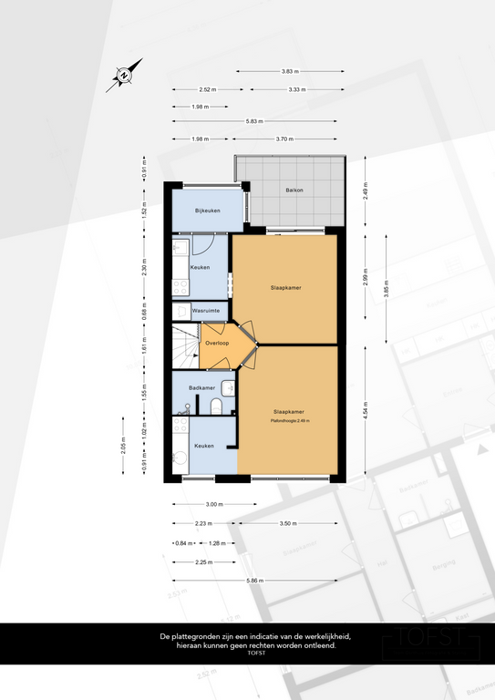 De Meetinstructie is gebaseerd op de NEN2580. De Meetinstructie is bedoeld om een meer eenduidige manier van meten toe te passen voor het geven van een indicatie van de gebruiksoppervlakte. De Meetinstructie sluit verschillen in meetuitkomsten niet volledig uit, door bijvoorbeeld interpretatieverschillen, afrondingen of beperkingen bij het uitvoeren van de meting. Indien de exacte maten voor een koper van cruciaal belang zijn, adviseren wij deze zelf na te meten. De (kandidaat)koper(s) zullen, indien gewenst, daartoe in de gelegenheid gesteld worden op een passend moment teneinde teleurstellingen en schade te voorkomen.