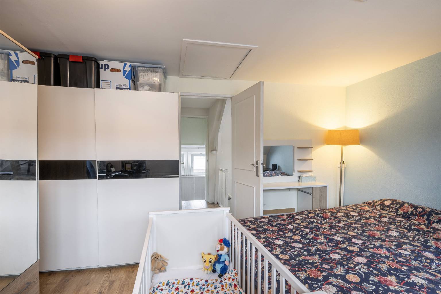 De hoofdslaapkamer is gelegen aan de voorzijde en beschikt over een dakkapel met kunststof kozijnen en dubbel glas. De balken zijn hier in het zicht gebleven en er is een luik naar de bergzolder. De tweede slaapkamer ligt aan de achterzijde en is bereikbaar via een klein trappetje. Er is een grote dakkapel aanwezig over de volledige breedte en deze is uitgevoerd in kunststof met dubbel glas. In beide slaapkamers zijn de wanden afgewerkt met granol.