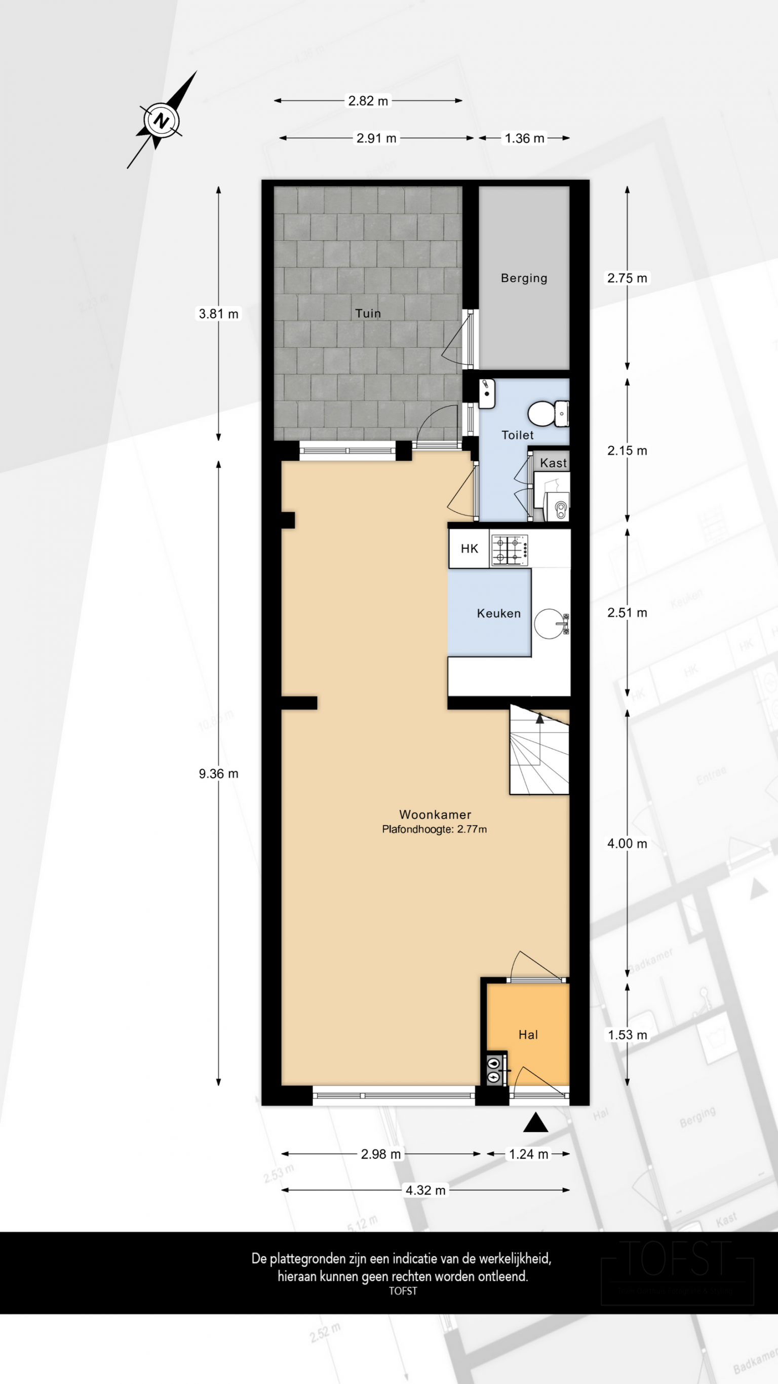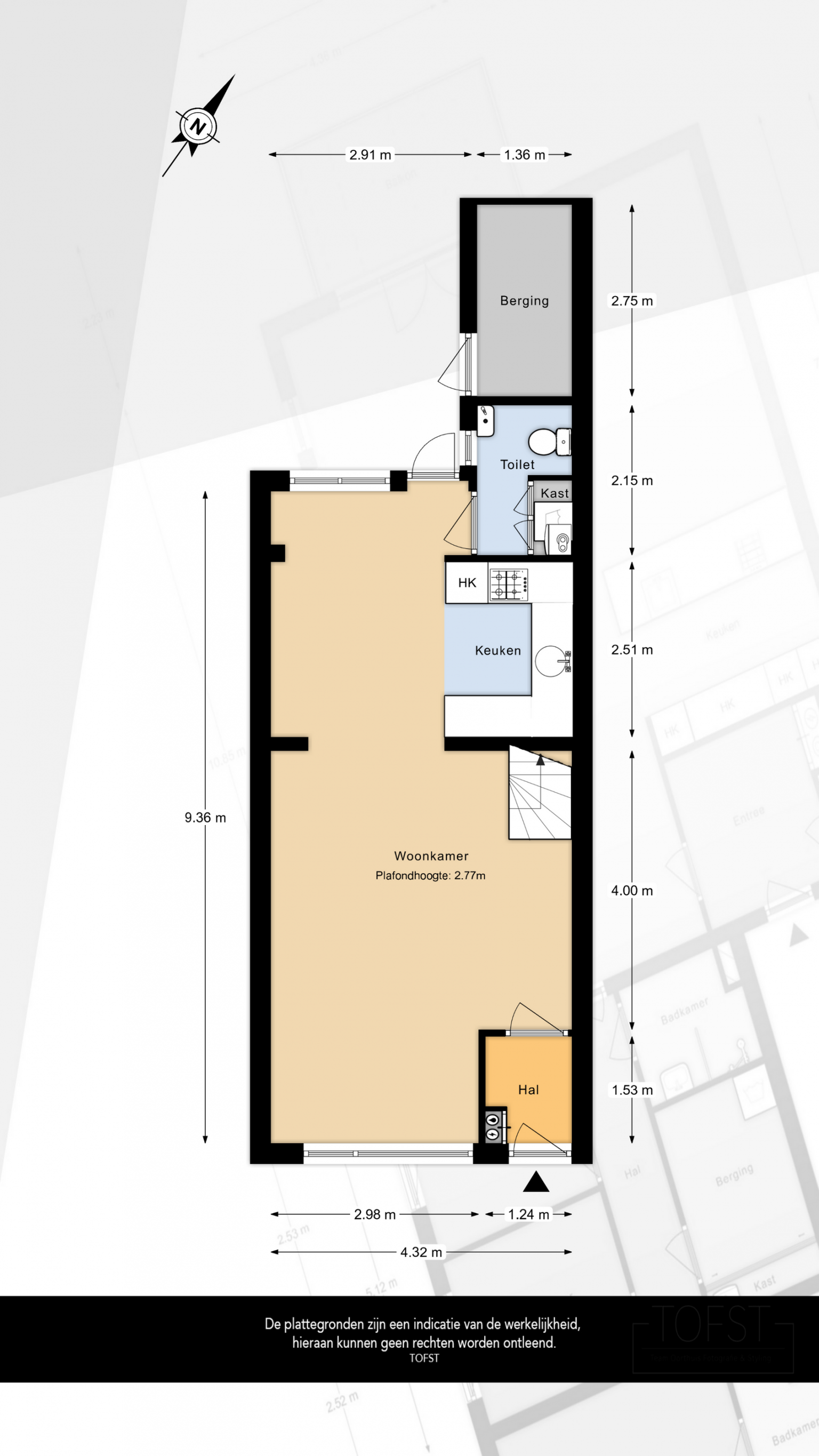 De Meetinstructie is gebaseerd op de NEN2580. De Meetinstructie is bedoeld om een meer eenduidige manier van meten toe te passen voor het geven van een indicatie van de gebruiksoppervlakte. De Meetinstructie sluit verschillen in meetuitkomsten niet volledig uit, door bijvoorbeeld interpretatieverschillen, afrondingen of beperkingen bij het uitvoeren van de meting. Indien de exacte maten voor een koper van cruciaal belang zijn, adviseren wij deze zelf na te meten. De (kandidaat)koper(s) zullen, indien gewenst, daartoe in de gelegenheid gesteld worden op een passend moment teneinde teleurstellingen en schade te voorkomen.