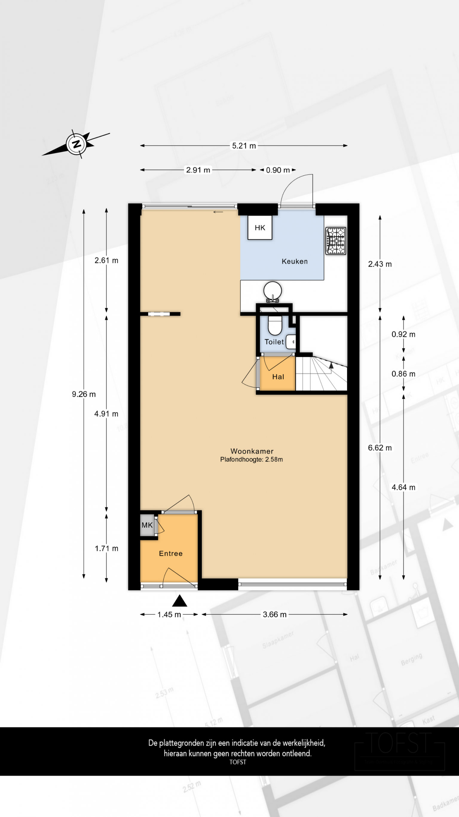 De Meetinstructie is gebaseerd op de NEN2580. De Meetinstructie is bedoeld om een meer eenduidige manier van meten toe te passen voor het geven van een indicatie van de gebruiksoppervlakte. De Meetinstructie sluit verschillen in meetuitkomsten niet volledig uit, door bijvoorbeeld interpretatieverschillen, afrondingen of beperkingen bij het uitvoeren van de meting. Indien de exacte maten voor een koper van cruciaal belang zijn, adviseren wij deze zelf na te meten. De (kandidaat)koper(s) zullen, indien gewenst, daartoe in de gelegenheid gesteld worden op een passend moment teneinde teleurstellingen en schade te voorkomen.