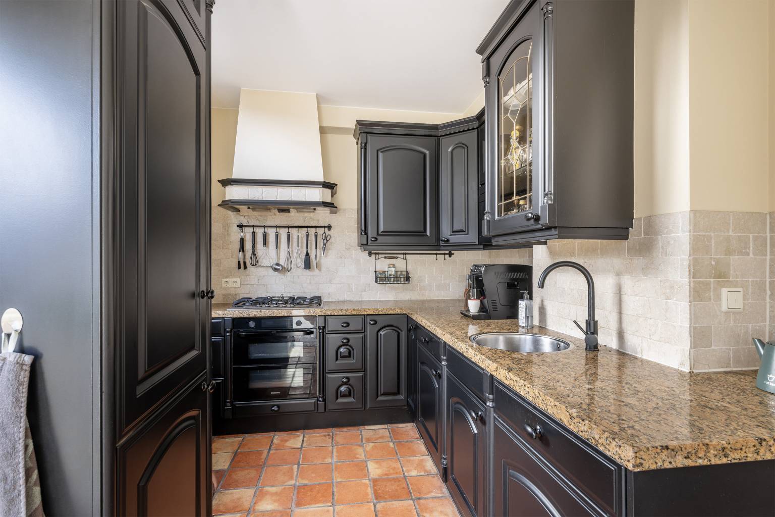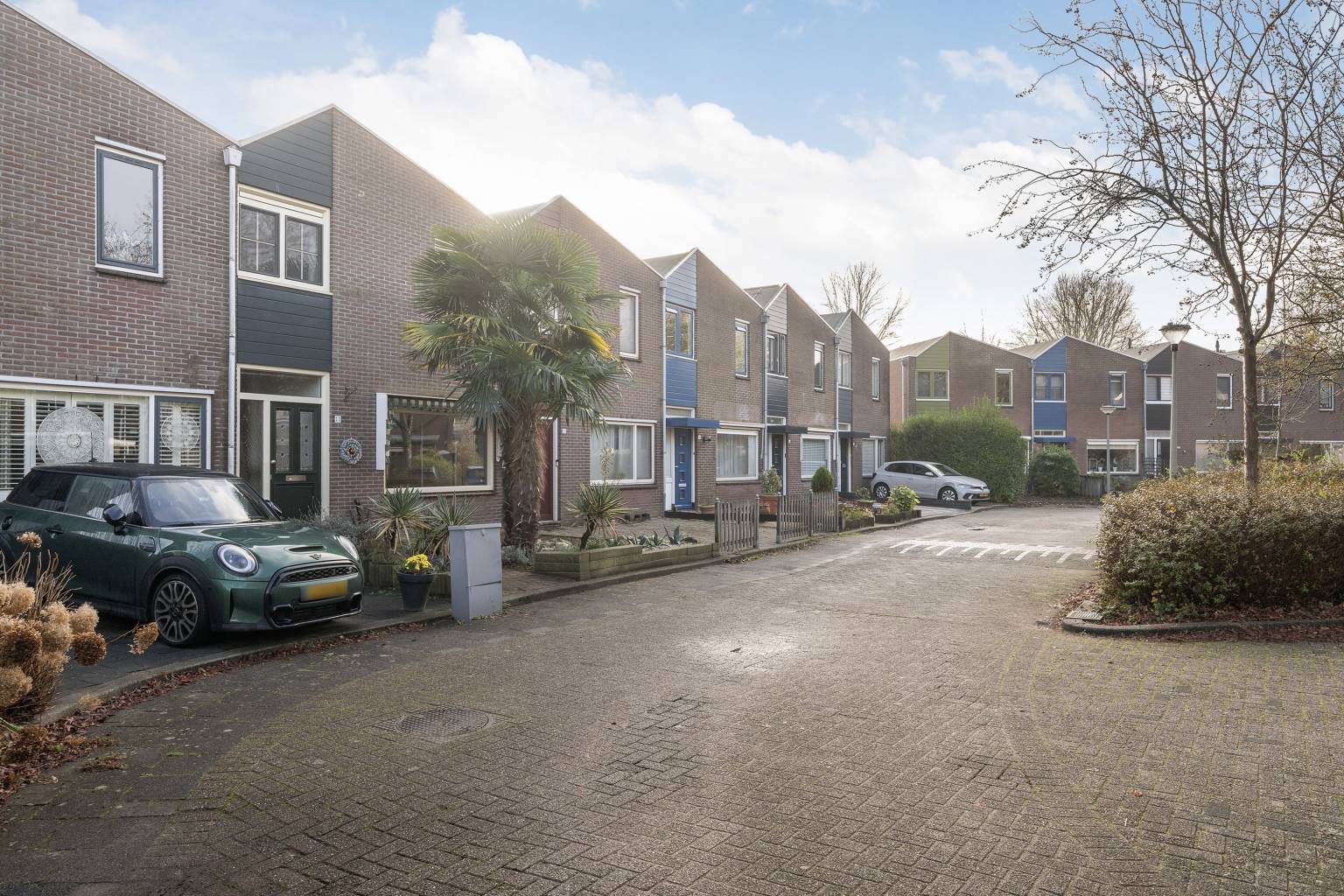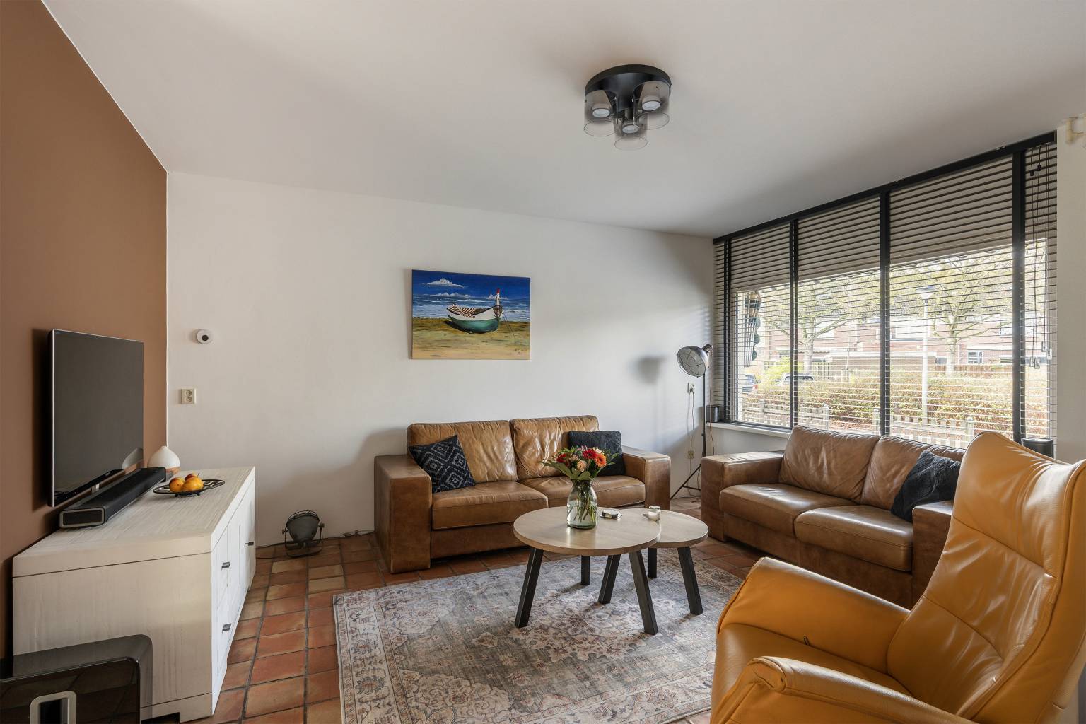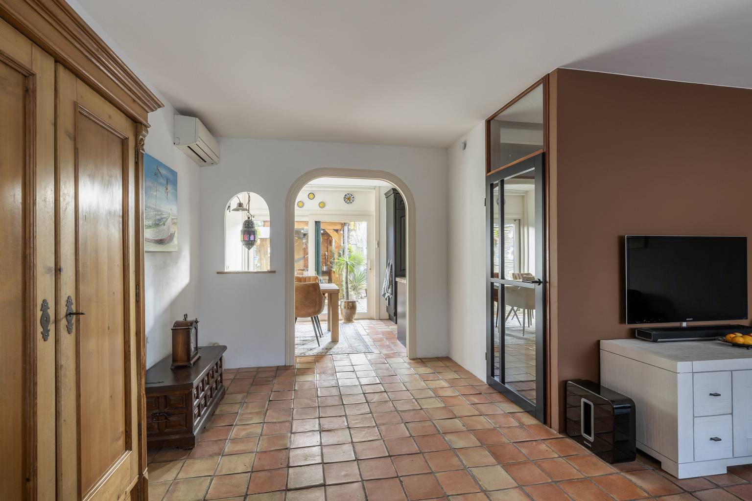Tussen het vele groen van de wijk Holy, in een rustige straat staat deze fijne eengezinswoning die meteen een warm vakantiegevoel oproept. Nog voordat je binnen bent, maakt de zonnige voortuin met mediterrane planten en een palmboom al duidelijk dat dit een plek is waar je elke dag een beetje kunt genieten alsof je op vakantie bent. De omgeving is net zo prettig. Scholen, winkels, sportvoorzieningen en recreatiegebieden liggen allemaal op korte afstand en dankzij de vele wandel- en fietsroutes voelt het buitenleven hier altijd dichtbij. Binnen word je verwelkomd in een sfeervolle woning. De terracotta handgebakken vloertegels lopen door over de gehele begane grond en geven de woning direct karakter. De woonkamer met vloerverwarming en airconditioning vormt een heerlijke plek om te ontspannen, terwijl de open verbinding met de eetkamer zorgt voor een fijne, lichte leefruimte. De keuken sluit daar perfect op aan. Een praktische L-opstelling met veel kastruimte, een betegelde achterwand en complete uitrusting met onder andere een oven, magnetron, vaatwasser, koelkast, vriezer, gaskookplaat en afzuigkap. Dankzij de brede schuifpui én de extra deur vanuit de keuken staat de leefruimte mooi in verbinding met de achtertuin.