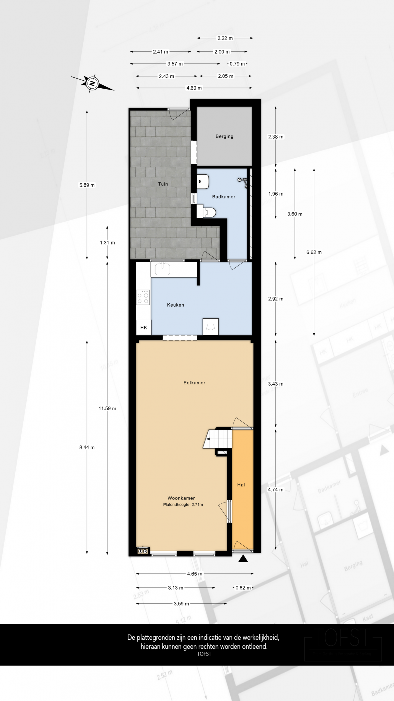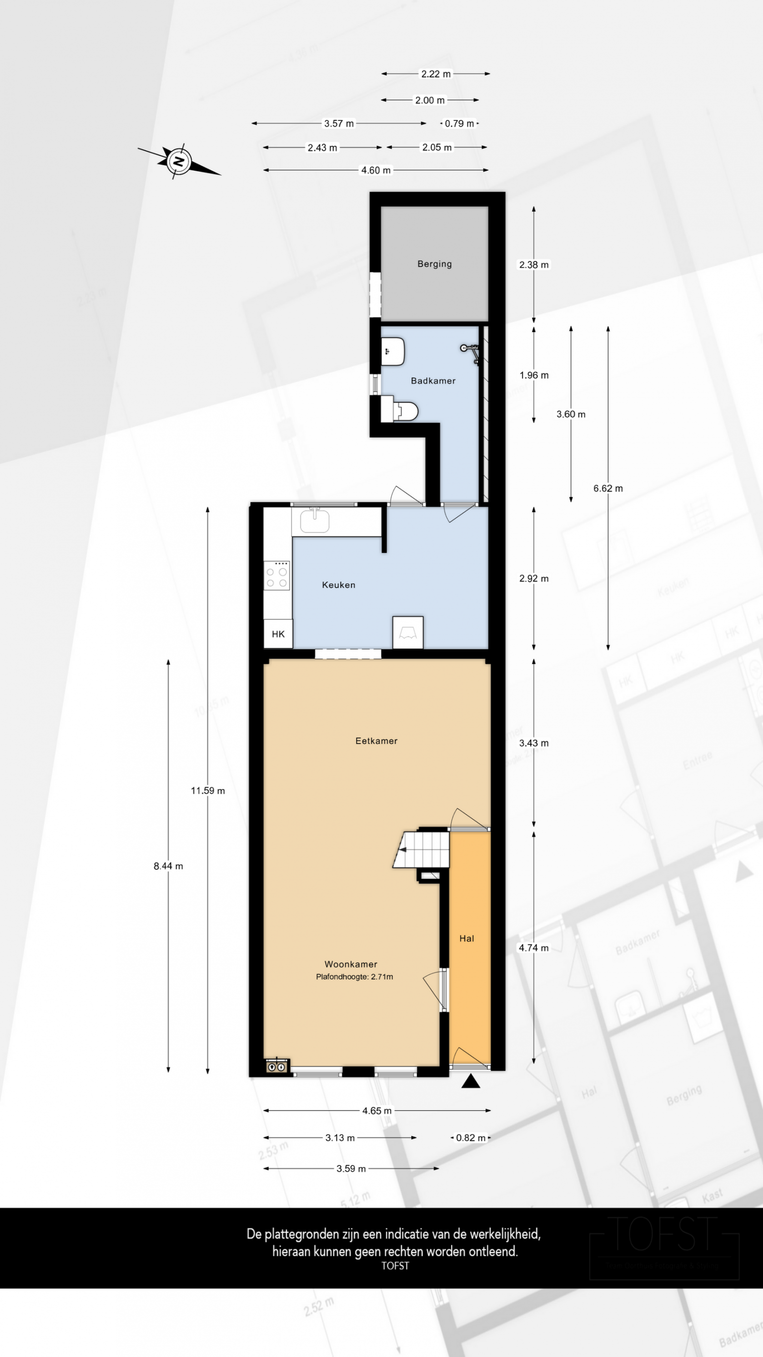 De Meetinstructie is gebaseerd op de NEN2580. De Meetinstructie is bedoeld om een meer eenduidige manier van meten toe te passen voor het geven van een indicatie van de gebruiksoppervlakte. De Meetinstructie sluit verschillen in meetuitkomsten niet volledig uit, door bijvoorbeeld interpretatieverschillen, afrondingen of beperkingen bij het uitvoeren van de meting. Indien de exacte maten voor een koper van cruciaal belang zijn, adviseren wij deze zelf na te meten. De (kandidaat)koper(s) zullen, indien gewenst, daartoe in de gelegenheid gesteld worden op een passend moment teneinde teleurstellingen en schade te voorkomen.