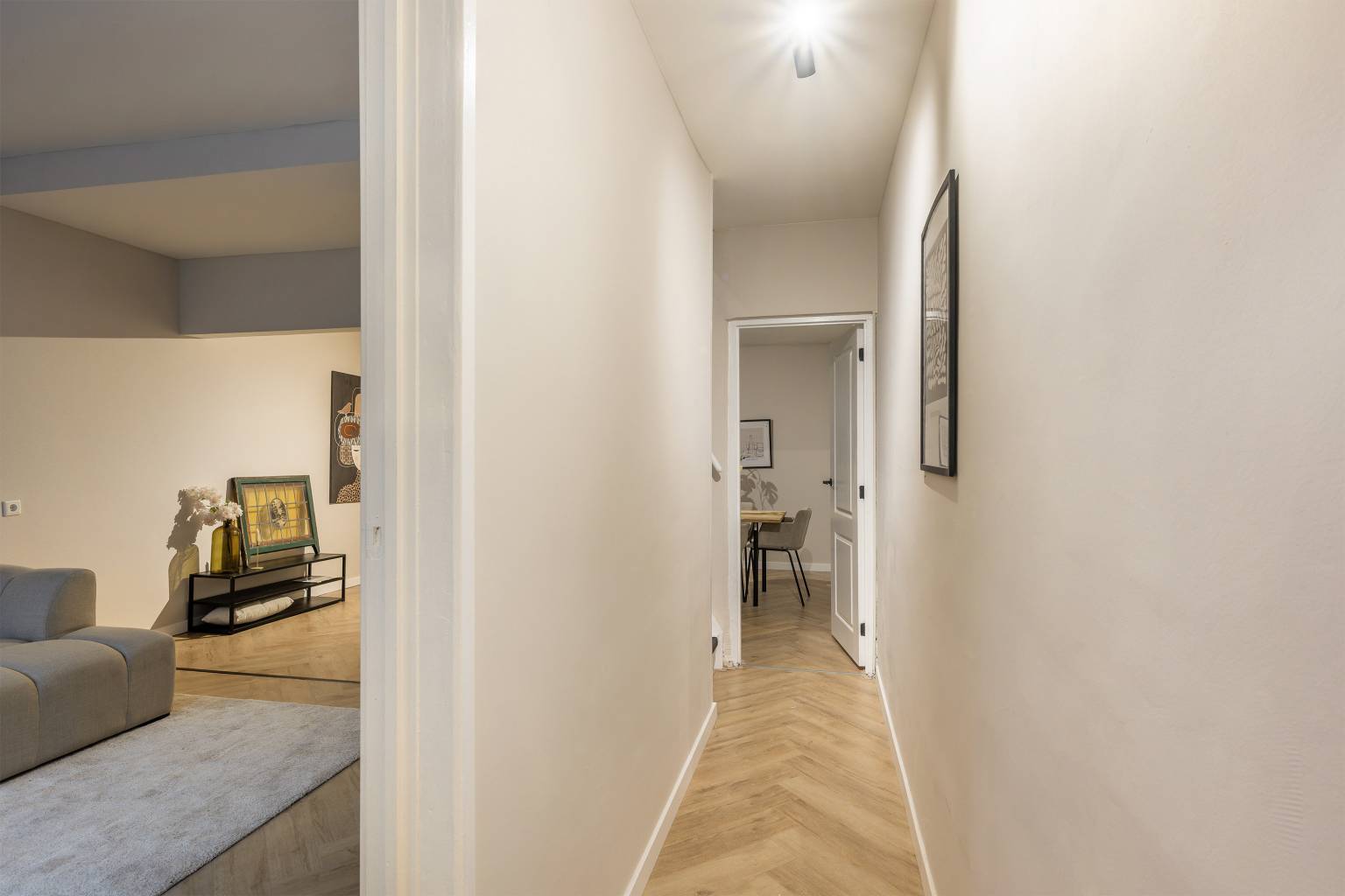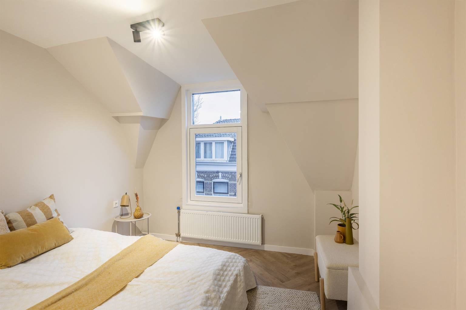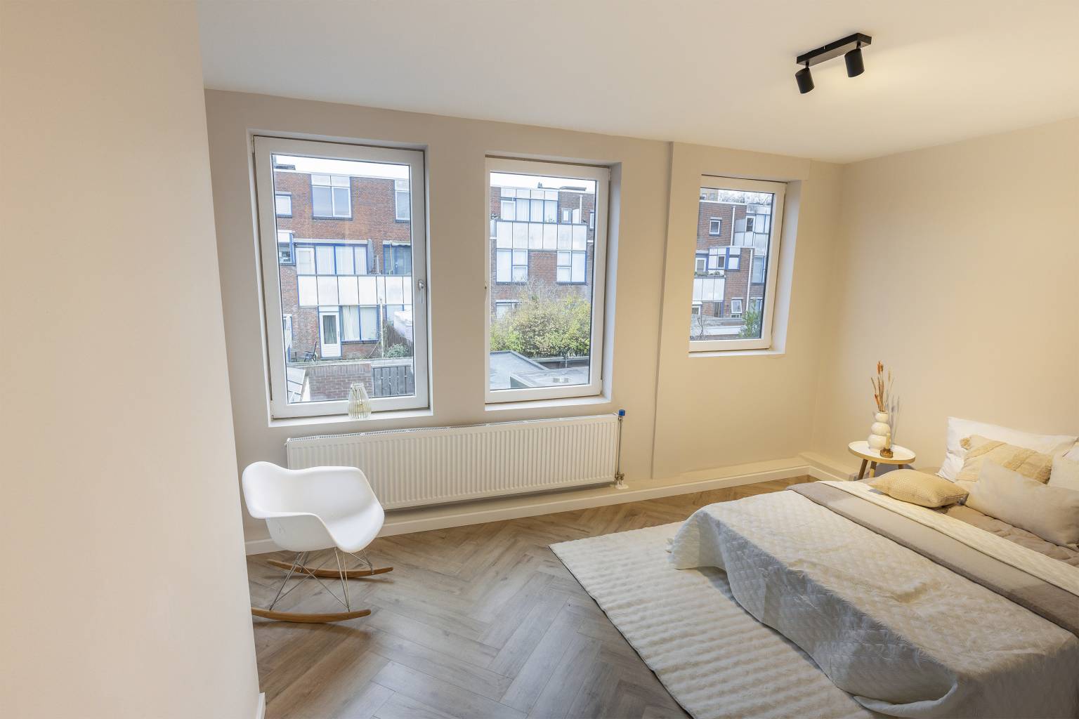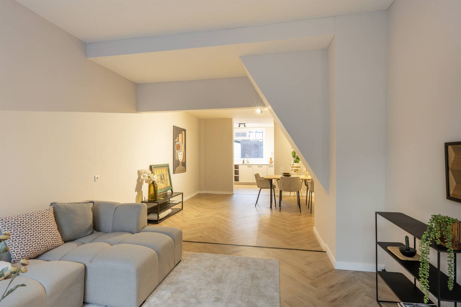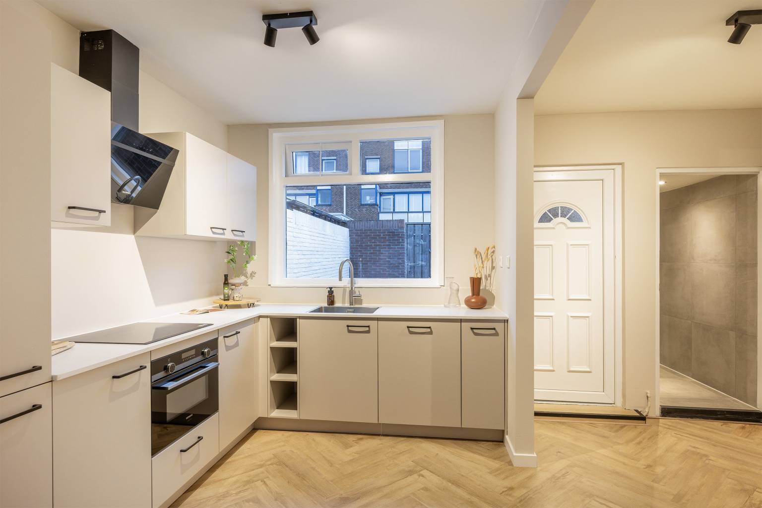 Wat een fijne plek om thuis te komen. In een levendige en karaktervolle straat, op loopafstand van winkels, gezellige horeca, scholen en openbaar vervoer, staat deze volledig gerenoveerde tussenwoning te stralen. Hier woon je met het stadsleven binnen handbereik, terwijl je binnenshuis juist rust, comfort en sfeer ervaart. De fraaie gevel verraadt al dat dit geen doorsnee woning is. Authentieke details zoals glas-in-lood bovenlichten en paneeldeuren geven het huis een warme, eigen uitstraling, gecombineerd met het gemak en de luxe van nu. Binnen is werkelijk alles vernieuwd en tot in de puntjes afgewerkt. Strak gestuukte wanden en plafonds, een mooie visgraat laminaatvloer en nieuwe radiatoren vormen de rustige basis. Aan de voorzijde ligt de sfeervolle woonkamer met hoge ramen en glas-in-lood details, die naadloos overloopt in de eetkamer en de deels open keuken. De moderne hoekkeuken is recent geplaatst en uitgerust met hoogwaardige Siemens inbouwapparatuur en een Quooker, met uitzicht op de onderhoudsvrije achtertuin die veel privacy biedt en beschikt over een stenen berging en een achterom. Ook de stijlvolle badkamer op de begane grond is volledig nieuw en praktisch ingedeeld. Op de verdieping bevinden zich drie slaapkamers, waaronder een speels ingedeelde hoofdslaapkamer en een kamer met nieuwe dakramen die zorgen voor prettig daglicht. Dankzij de vernieuwde daken, de recente cv-ketel en het feit dat alles binnen nieuw is, kun je hier zonder klussen direct genieten. Een karakteristiek huis met het comfort van een nieuwbouwwoning, gelegen op eigen grond en klaar voor een snelle oplevering. Een heerlijke plek om een nieuw hoofdstuk te beginnen.