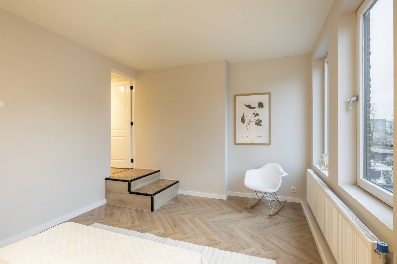 De hoofdslaapkamer is lager gelegen en is toegankelijk via twee treden. De tweede slaapkamer is gelegen aan de voorzijde, naast de derde slaapkamer, die is voorzien van twee dakramen en een vaste kast, met daarin de opstelling van de Cv-ketel.